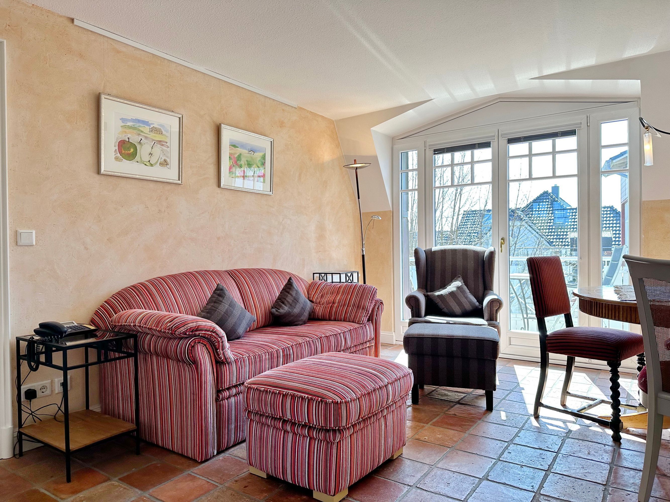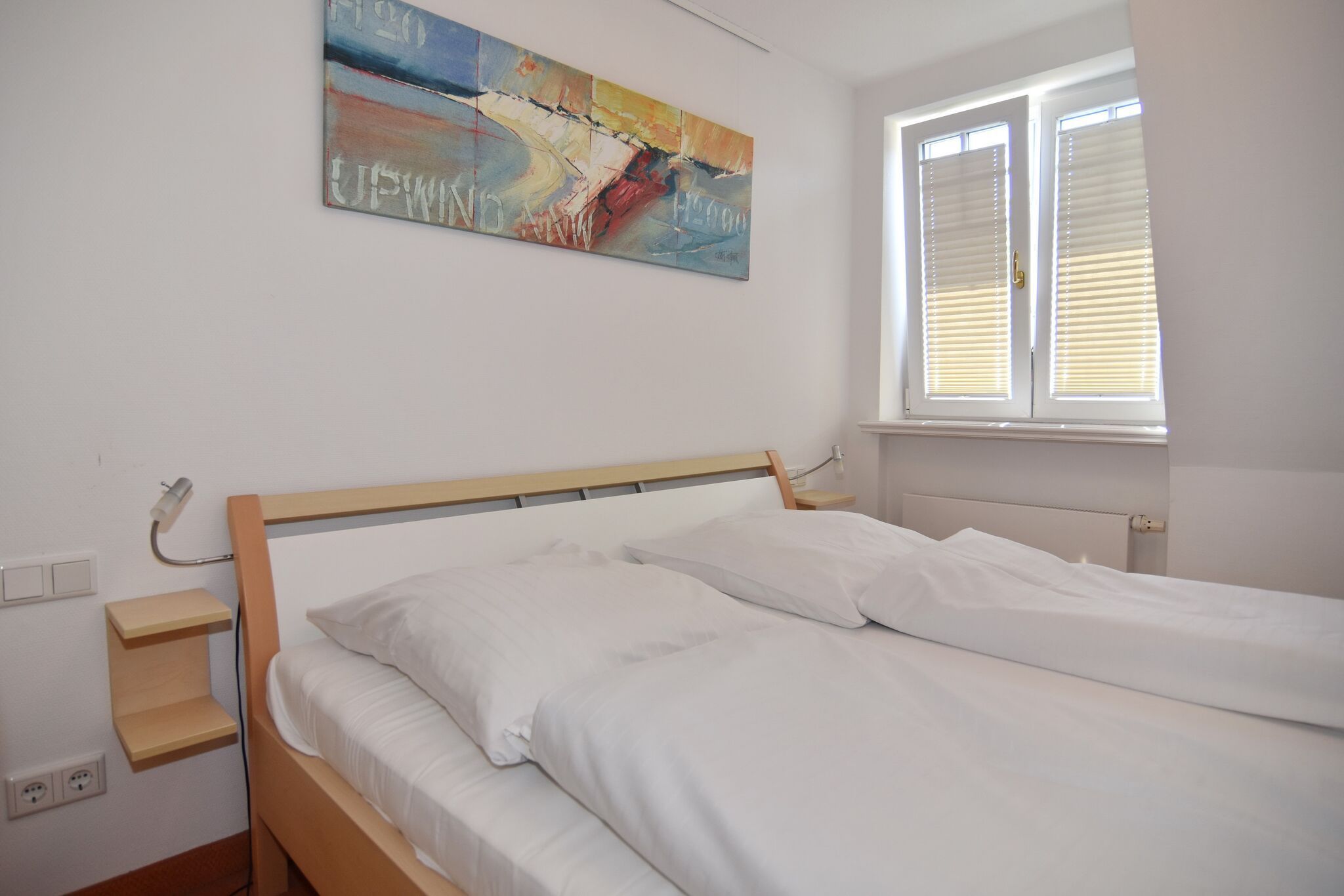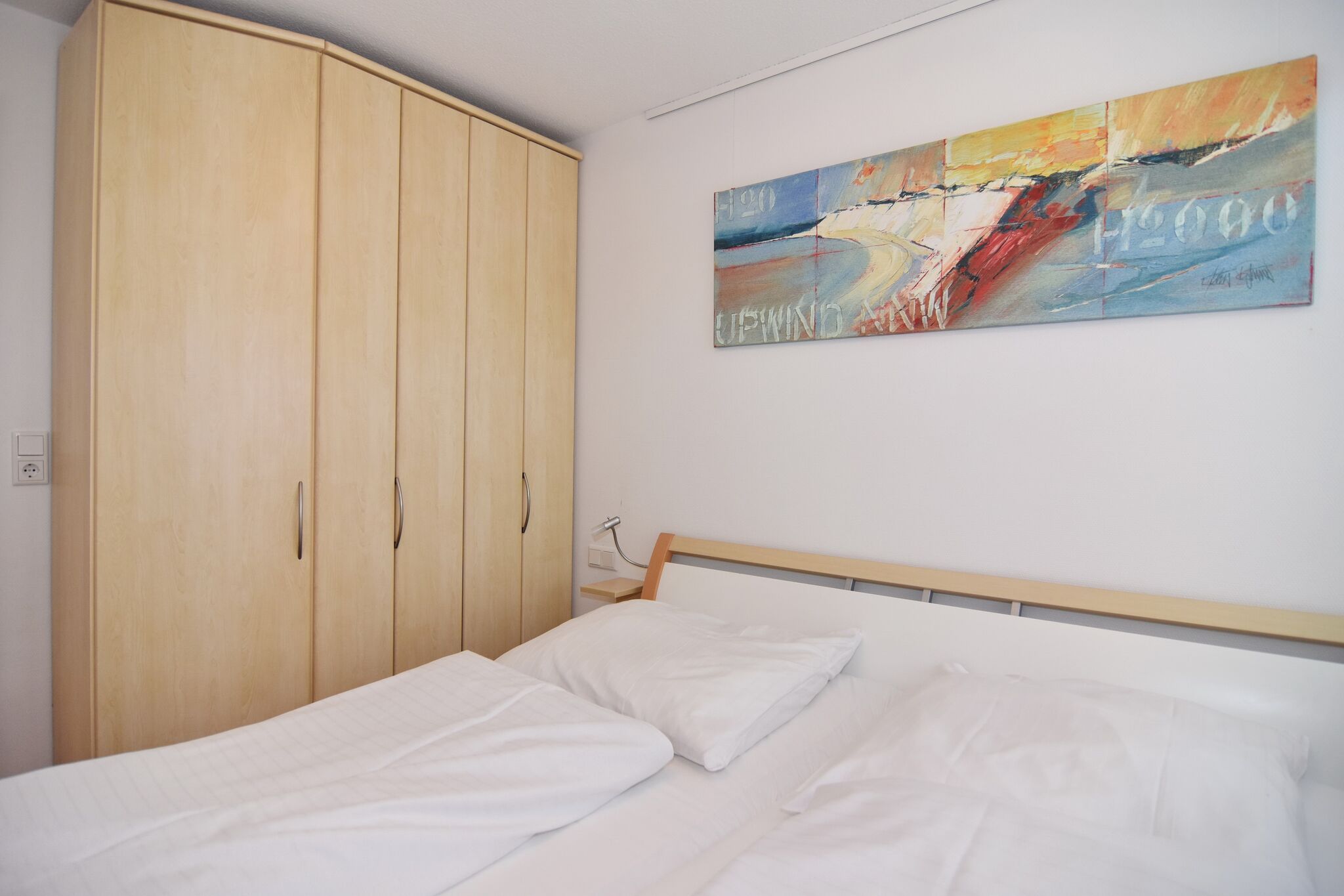 Helle 2 Zimmer-Ferienwohnung mit Südbalkon. Nichtraucher. Ca. 50m², 2. OG. Wohnraum mit Couch und Essplatz, Flat-TV ( Hotelmodus und internetfähig, Programmübersicht liegt im App., Programme sind nicht verstellbar ), Südbalkon mit Balkonmöbeln (Tischplatte liegt nur auf, Tisch darf nicht verrückt werden), offene Küche mit Backofen und Geschirrspüler, Duschbad/WC, Schlafzimmer mit Doppelbett (2 Matratzen) und Schrank. PKW-Stellplatz Nr. 9. Tierhaltung verboten. Im Haus: Sauna und Ruheraum (gegen Gebühr). Bettwäsche und Handtücher sind zur Anreise aufgezogen.
