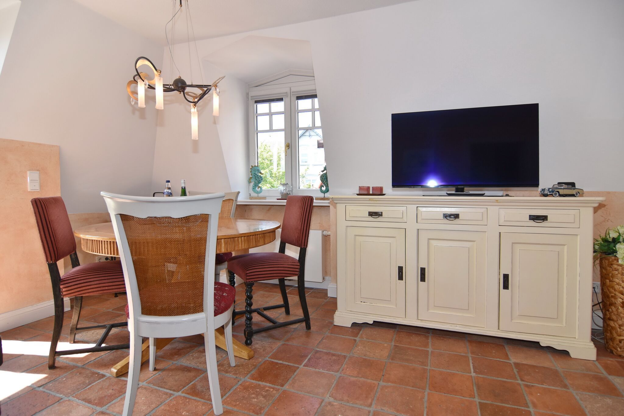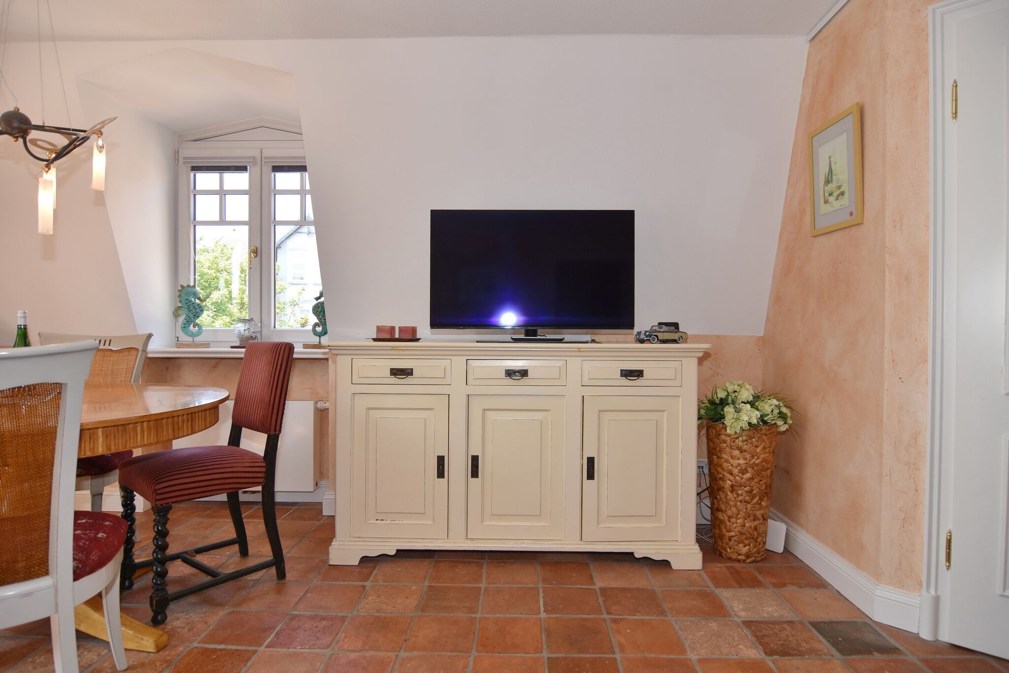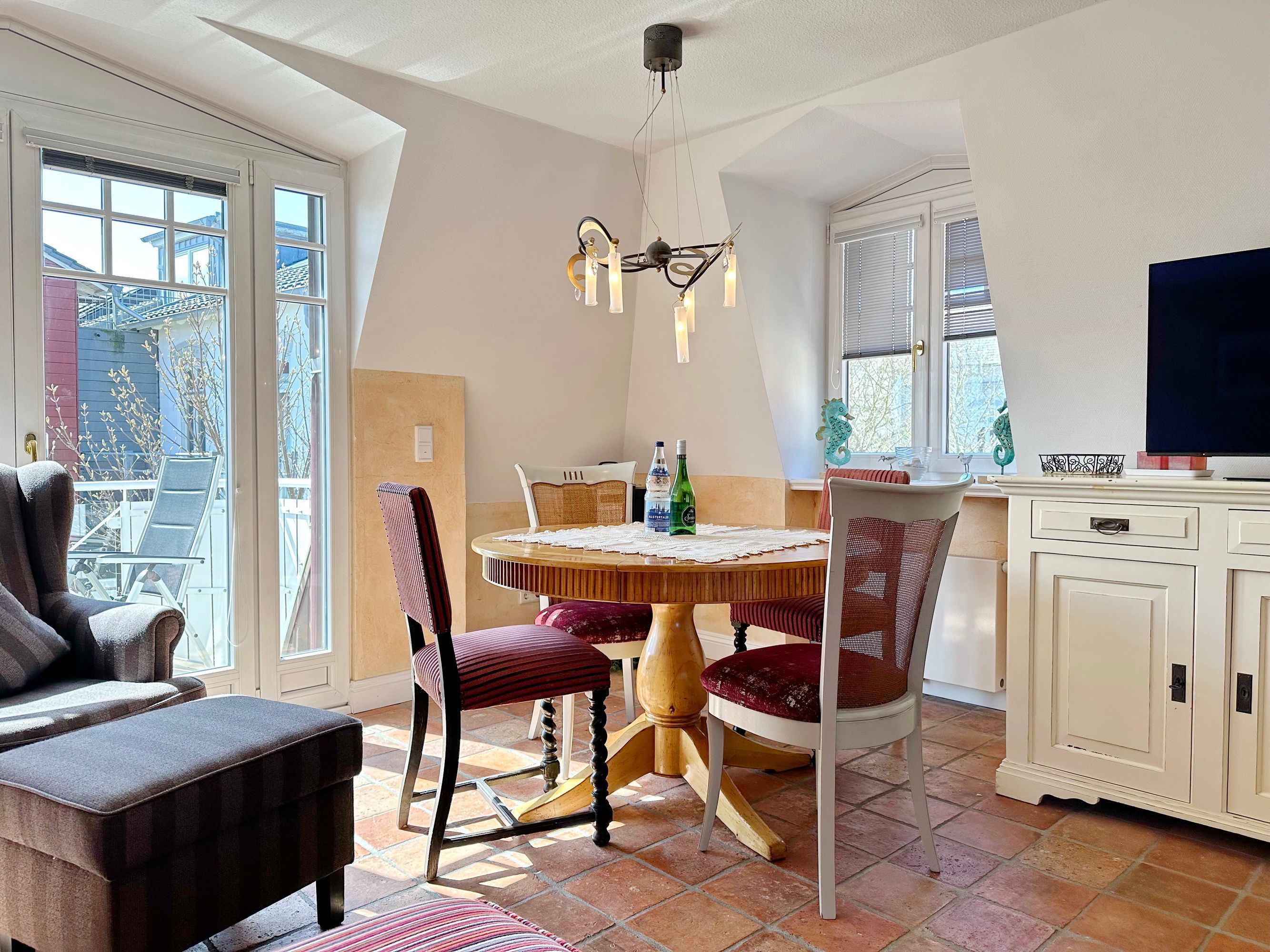 Helle 2 Zimmer-Ferienwohnung mit Südbalkon. Nichtraucher. Ca. 50m², 2. OG. Wohnraum mit Couch und Essplatz, Flat-TV ( Hotelmodus und internetfähig, Programmübersicht liegt im App., Programme sind nicht verstellbar ), Südbalkon mit Balkonmöbeln (Tischplatte liegt nur auf, Tisch darf nicht verrückt werden), offene Küche mit Backofen und Geschirrspüler, Duschbad/WC, Schlafzimmer mit Doppelbett (2 Matratzen) und Schrank. PKW-Stellplatz Nr. 9. Tierhaltung verboten. Im Haus: Sauna und Ruheraum (gegen Gebühr). Bettwäsche und Handtücher sind zur Anreise aufgezogen.