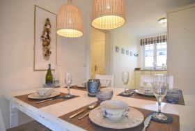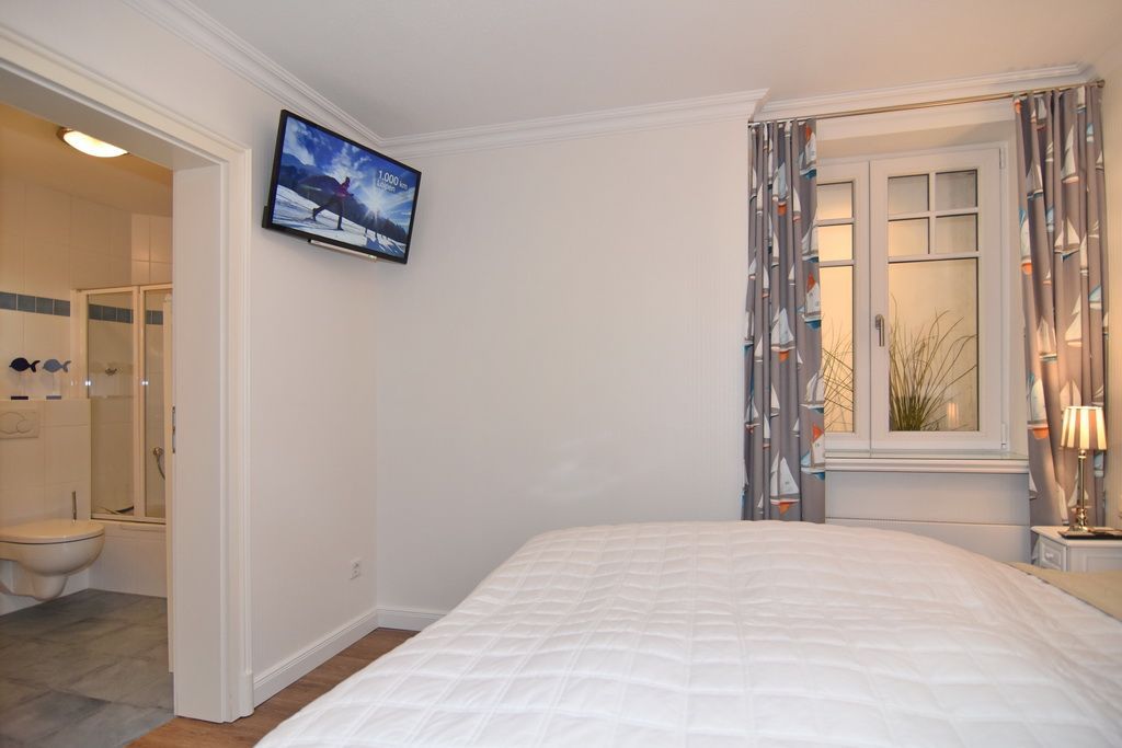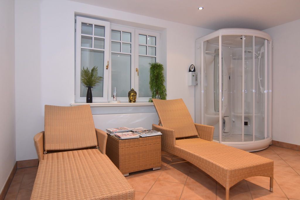 Exklusive 3-Zimmer-Ferienwohnung mit Südterrasse. Nichtraucher. Ca. 70m². EG: Wohnzimmer mit Sitz- und Essecke, TV, Stereoanlage und W-Lan (ohne Gewähr), offene Küche mit Geschirrspüler und Mikrowelle und Backofen, Schlafzimmer mit Doppelbett, Einbauschrank und TV, Duschbad/WC. UG: Schlafzimmer mit Doppelbett, Einbauschrank und TV, Vollbad/WC. Abstellraum mit Waschmasch. / Trockner. Tierhaltung verboten. Pkw-Stellplatz 10. Kinderhochstuhl vorhanden. Im Haus: Sauna und Ruheraum. Bettwäsche und Handtücher sind zur Anreise aufgezogen. Achtung für Familien mit Kleinkindern: es gibt keine Tür zwischen Wohnraum und Treppe ins UG.