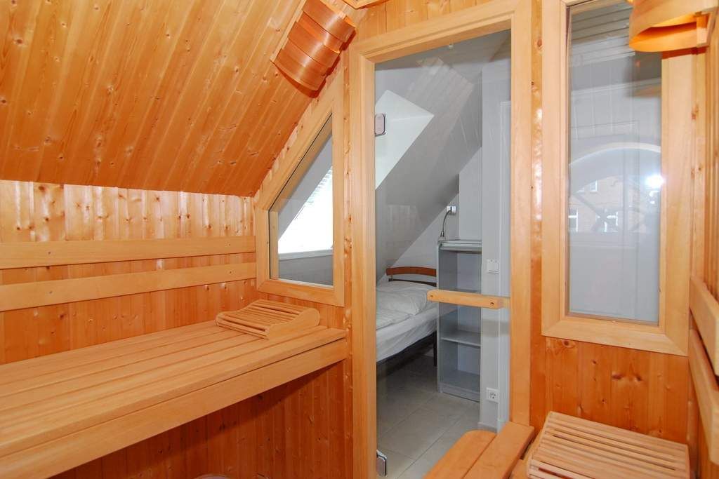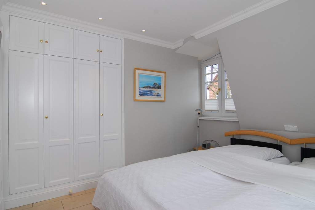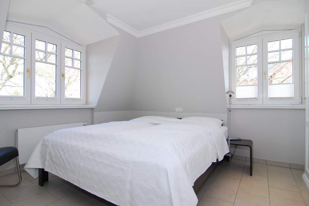 Exklusiver Endhausteil mit Südostterrasse und Strandkorb. Ca. 95m². Nichtraucher. EG: Wohnzimmer mit 2 Couchen und Essplatz, TV, Stereoanlage, Internet, Flat-Rate ins dt. Festnetz. Separate Küche mit Geschirrspüler, Backofen, Mikrowelle und Gefrierfach. Gäste-WC mit Waschmaschine und Trockner ( Münzautomat). OG: 2 Schlafzimmer mit Doppelbetten (200x220) und TV. Bad mit Wanne/ Dusche und Bidet. DG: Sauna (Münzautomat) und Duschbad/ WC. Stellplatz am Haus. Tierhaltung ist nicht gestattet. Allergiker freundlich! Alle Räume gefliest. Schallschutzfenster zur Maybachstraße. Gartenhaus. Kostenpflichtige Wallbox/E-Ladestation) für Autos vorhanden (€ 5,-/Tag). Bettwäsche und Handtücher sind zur Anreise aufgezogen.