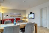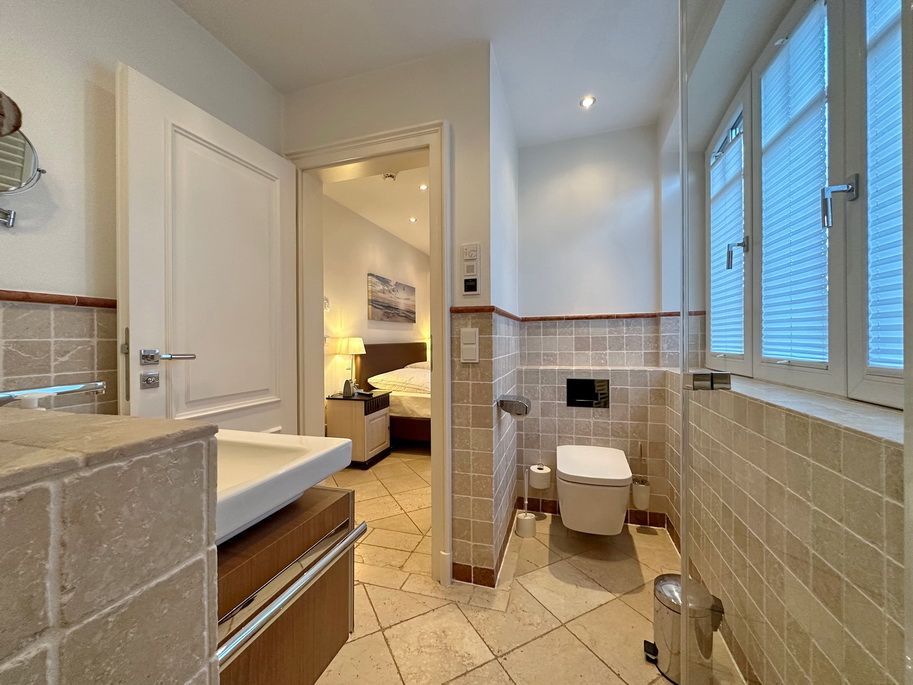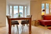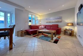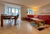 Exklusive 3-Zimmer-Ferienwohnung unweit des Badestrands. Ca. 82m², Nichtraucher! EG: großzügiges Wohnzimmer mit Eckcouch, Flat-TV, Stereoanlage, Internet/Telefonflatrate (Festnetz), Südterrasse mit Strandkorb und Garten, Essplatz m. 4 Stühlen, offene Küche mit Geschirrspüler, Mikrowelle und Backofen, 1 Schlafzimmer mit Doppelbett (2x90x200) und Flat-TV, Duschbad/WC und sep. Gäste-WC. UG: 1 Schlafzimmer mit Doppelbett (2x90x200) und Flat-TV, Bad mit Wanne, Dusche und WC, separater Raum mit finnischer Sauna und Wasch-Trockner. Pkw-Stellplatz. Tierhaltung ist nicht gestattet. Bettwäsche und Handtücher sind zur Anreise aufgezogen.