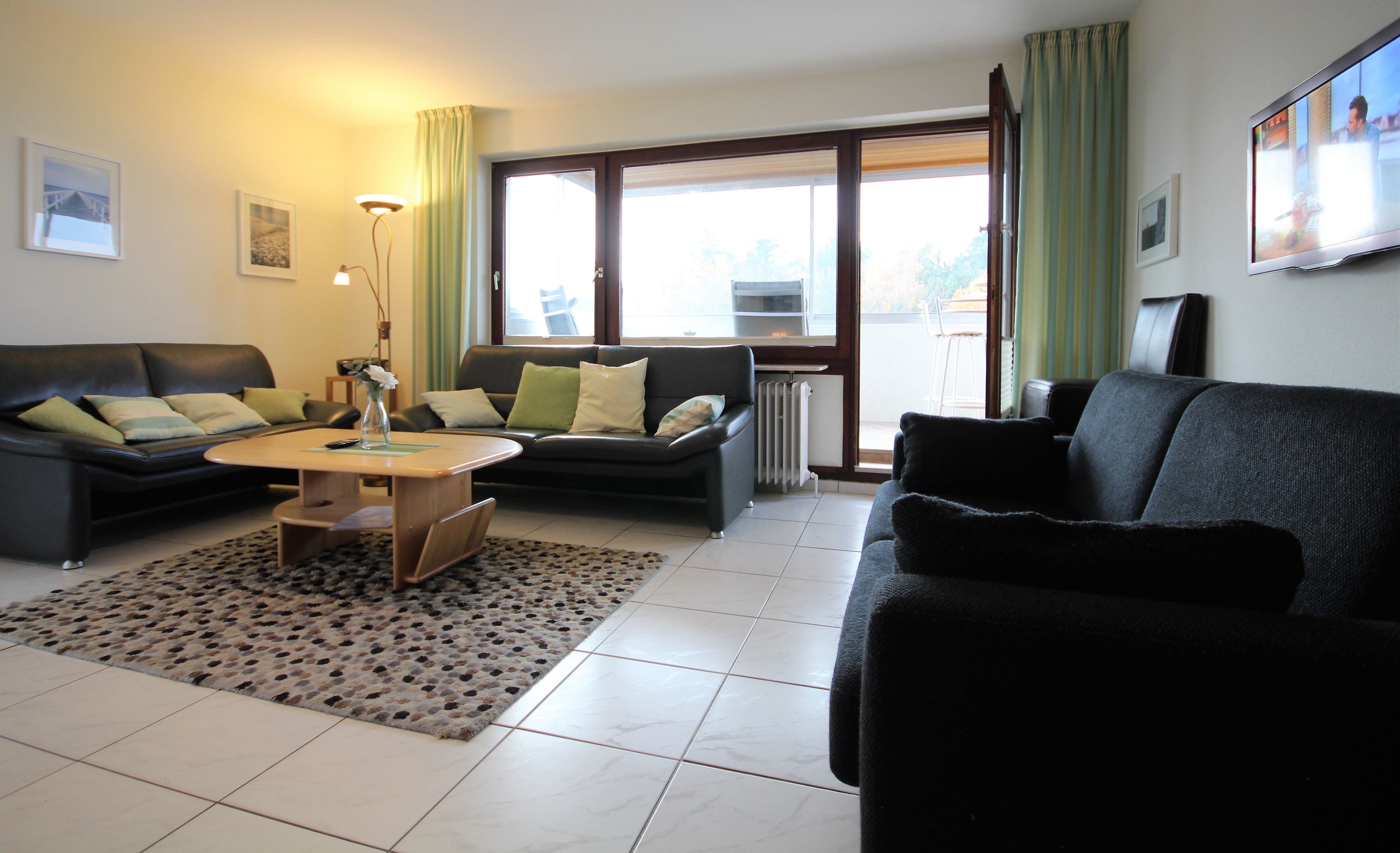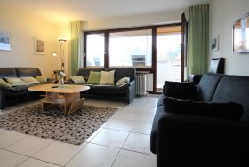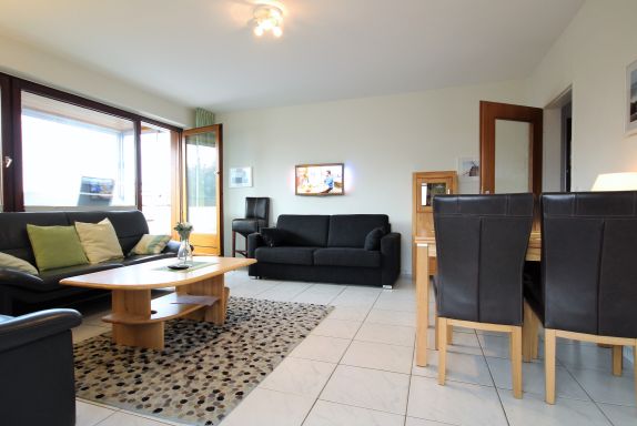 Schöne 3 Zimmer Wohnung im 3. Obergeschoss, direkt am Strand, für bis zu 4 Personen, 1 Schlafzimmer mit Doppelbett, 1 Schlafzimmer mit Etagenbett, Wohnzimmer mit Küchenzeile (Cerankochfeld, Mikrowelle, Kaffeemaschine, Wasserkocher, Toaster), gemütlicher Sitzecke, Essplatz, TV, Tageslichtbad mit Dusche und WC, verglaster Balkon mit Sicht auf die Nordsee (einige Fenster Elemente können geöffnet werden), Schwimmbad im Haus, reservierter PKW Stellplatz am Haus.