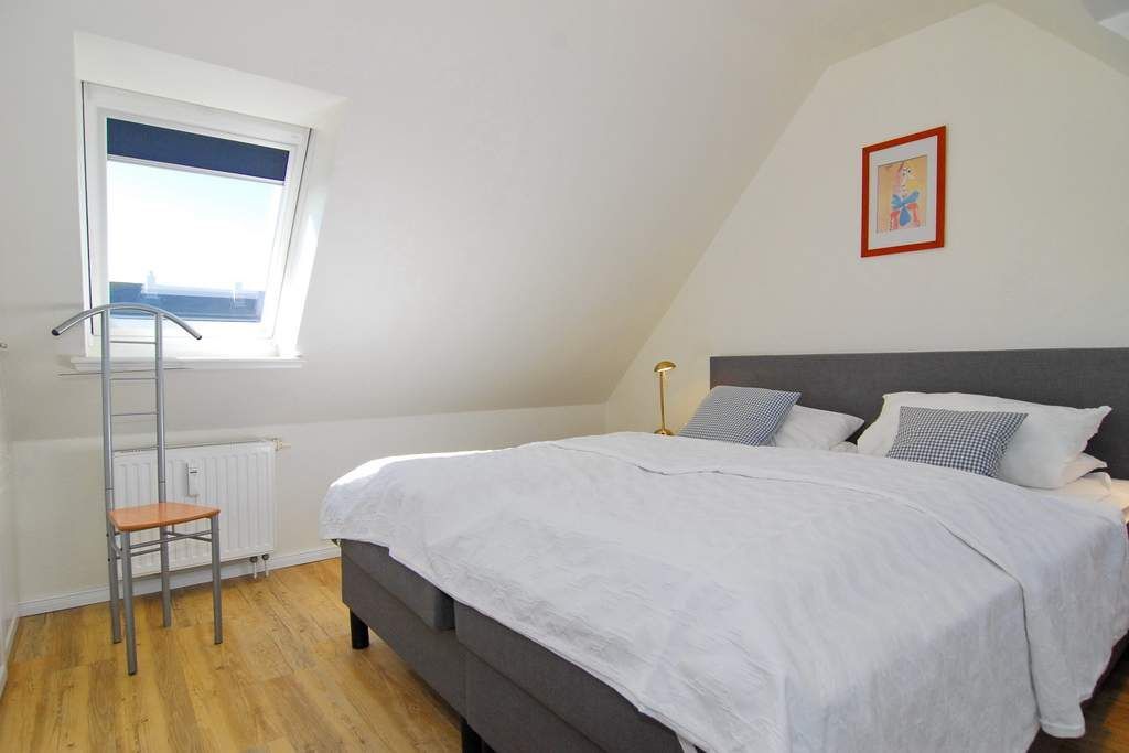 Exklusive 2-Zi.-Ferienwohnung im Haus Syltrose, OG/DG, ca. 50m². Wohn-/Schlafraum mit Sitz- und Eßecke, offene Küche mit Geschirrspüler, Senseo-Kaffeemaschine, Mikrowelle und Backofen, Kabel-TV, Radio, WLAN (ohne Gewähr), Telefon, Wanne und Dusche/WC, Trockner und Waschmaschine vorhanden, Südbalkon. DG: Schlafzimmer mit Boxspringbett (180x200). Im Haus befinden sich Schwimmbad und Sauna (kein direkter Zugang). Sauna über Münzautomat. Pkw-Stellplatz Nr. 6 am Haus. Bettwäsche und Handtücher sind zur Anreise aufgezogen. Rauchen und Tierhaltung in der Wohnung sind nicht gestattet.