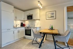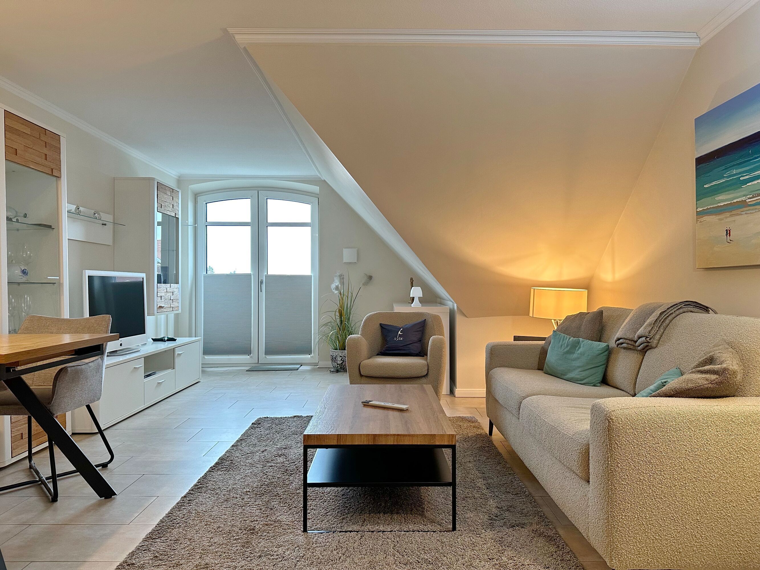 Exklusive 2-Zimmer-Ferienwohnung in der Residenz Alva mit Wellnessbereich (Pool, Sauna, Dampfsauna) unweit des Badestrands und der Fußgängerzone. Ca. 50m², 2. OG/DG, Nichtraucher. Wohnzimmer mit Sitzecke, Flat-TV, DVD, Stereoanlage, W-LAN (ohne Gewähr), offene Wohnküche mit Mikrowelle, Geschirrspüler u. Backofen, Essplatz, Südbalkon mit Bestuhlung, Duschbad/WC. DG: Schlafzimmer m. Doppelbett. Pkw-Stellplatz Nr 12. Waschküche (gegen Gebühr). Bettwäsche und Handtücher sind zur Anreise aufgezogen. Tierhaltung ist nicht gestattet! Auf dem östlich angrenzenden Nachbargrundstück entsteht ab März 2024 ein Neubauvorhaben, hier kann es zu Lärmbelästigungen kommen.