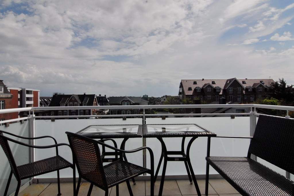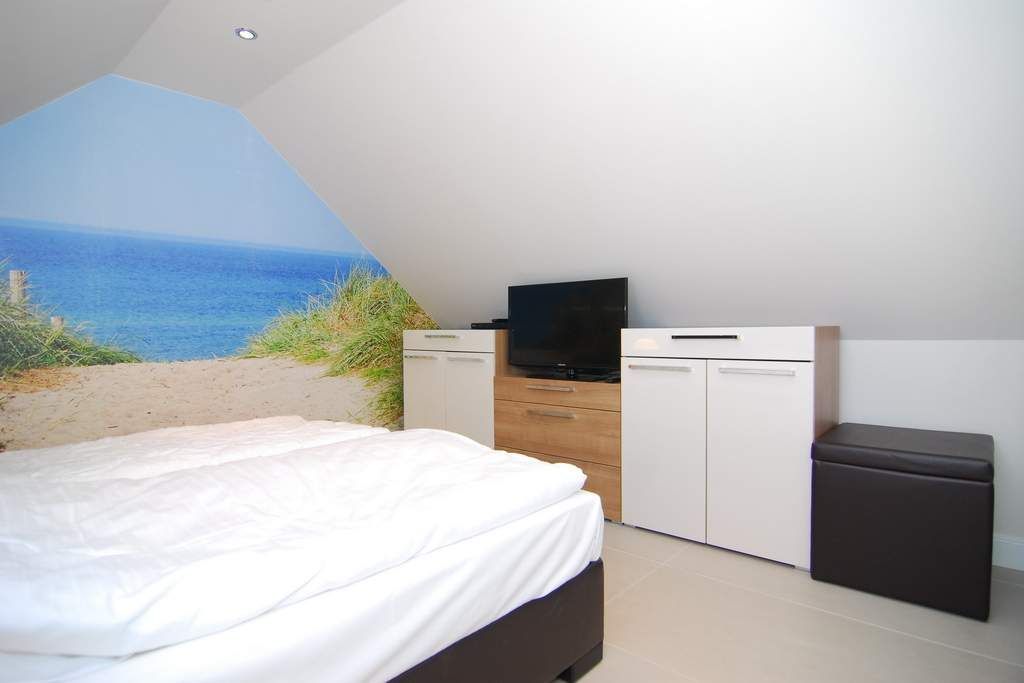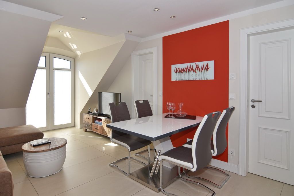 Exklusive 3-Zimmer-Ferienwohnung in der Residenz Alva mit Wellnessbereich (Pool, Sauna, Dampfsauna) unweit des Badestrands und der Fußgängerzone. Ca. 56 m². Nichtraucher. OG.: Wohnraum mit Couch und Sesseln, Essplatz, WLAN u. Telefonflatrate ins dt. Festnetz, Flat-TV mit BluRay-Player, Stereo-Anlage mit CD und iPhone-Adapter, Südbalkon mit Balkonmöbeln, offene Küche mit Mikrow., Backofen und Geschirrspüler, Duschbad/WC, Schlafzimmer mit Doppelbett, Flur. DG: 1 Schlafzimmer mit Doppelbett, Flat-TV m. BluRay-Player, Gäste / WC. Alle Steckdosen sind kindergesichert! PKW-Stellplatz Nr. 13. Waschküche im Haus! Bettwäsche und Handtücher sind zur Anreise aufgezogen. Tierhaltung ist nicht gestattet! Auf dem östlich angrenzenden Nachbargrundstück entsteht ab März 2024 ein Neubauvorhaben, hier kann es zu Lärmbelästigungen kommen.