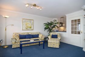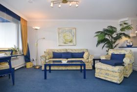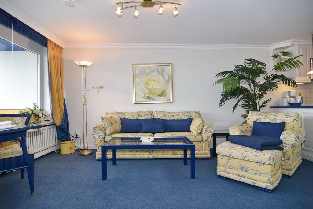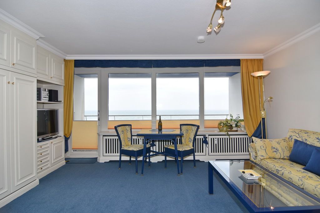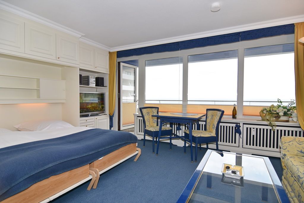 Excl. 1-Zimmer-Ferienwohnung, 42 m²; 5.OG, B-Block, NEUES KURZENTRUM WESTERLAND, Wohn-/Schlafraum m. Einzelschrankbett, Sitzgelegenheit, Essplatz am Fenster mit herrlichem Meeresblick, Flat-TV, Radio m.CD, Telefon Flatrate, W-LAN ( ohne Gewähr ), Westbalkon; offene Küchenzeile mit GS u.Microw., neues Duschbad/WC, Nichtraucher-Appartement! Tierhaltung ist nicht gestattet! Bettwäsche und Handtücher sind zur Anreise aufgezogen. Ein PKW-Stellplatz kann kostenpflichtig zugebucht werden. Beginnend vom 15.10.2025 bis 5.4.2026 (Ostern) findet die Fassandensanierung der Landseite (Osten) sowie des Südgiebels statt. Mit Baulärm ist in dieser Zeit zu rechnen.