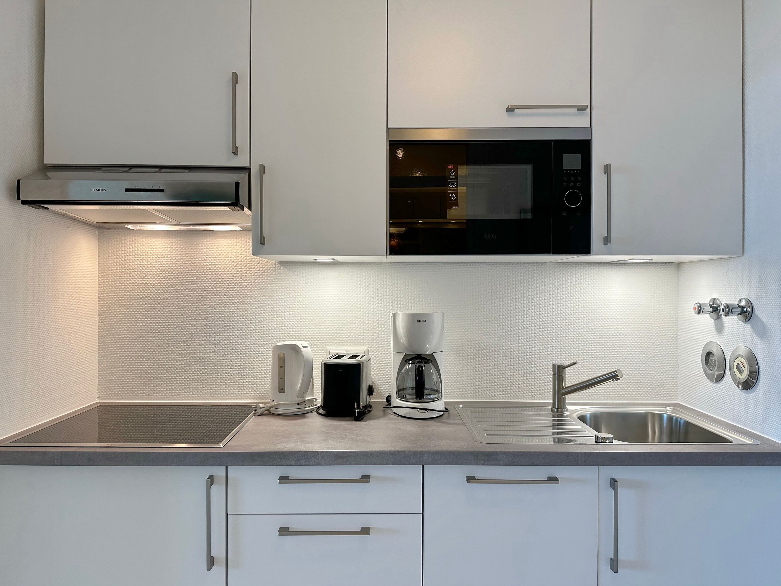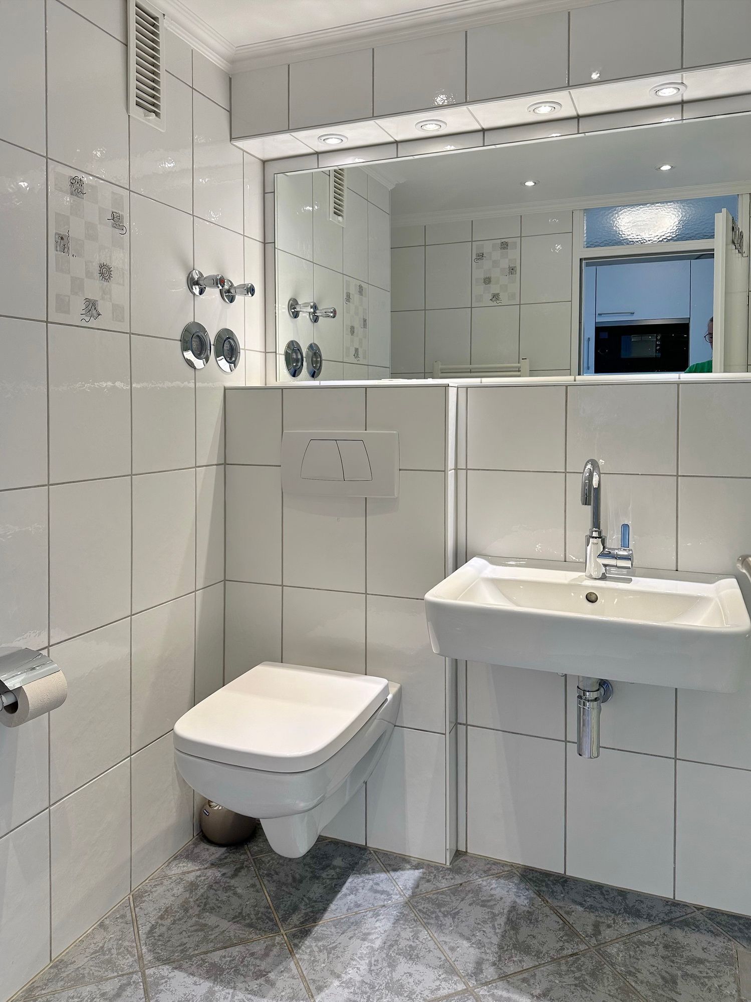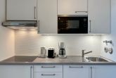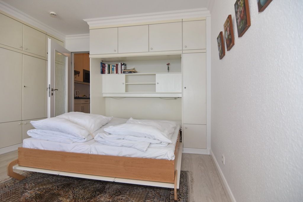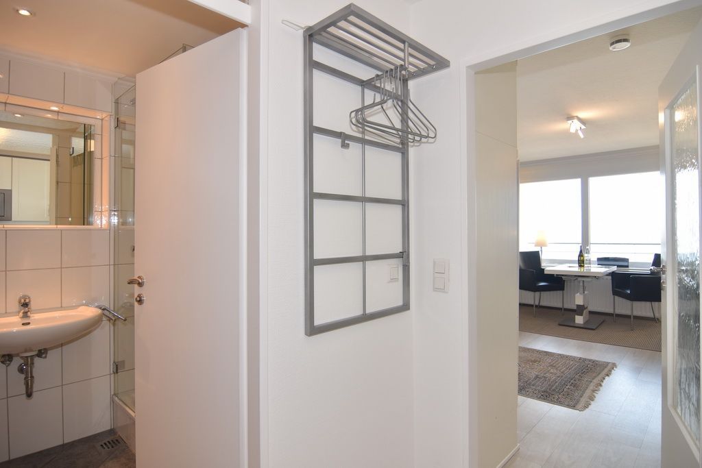1-Zimmer-Ferienwohnung. ca. 34 m², 6.OG, Haus am Meer. Nichtraucher-Whg.! Wohn-/ Schlafraum mit Doppelschrankbett (2 Matratzen), Eßtisch am Fenster mit Blick auf das Meer, Zweisitzercouch, Flat-TV, Radio, Telefon, W-LAN (ohne Gewähr), Westbalkon mit Meeresblick und Balkonmöbeln, Küchenzeile im Flur m.Geschirrspüler u. Mikrowelle, Duschbad/WC. Tierhaltung ist nicht gestattet. Das App. ist mit Design-Fußboden ausgelegt. Bettwäsche und Handtücher sind zur Anreise aufgezogen. Ein PKW-Stellplatz kann kostenpflichtig zugebucht werden.Beginnend vom 15.10.2025 bis 5.4.2026 (Ostern) findet die Fassandensanierung der Landseite (Osten) sowie des Südgiebels statt. Mit Baulärm ist in dieser Zeit zu rechnen.