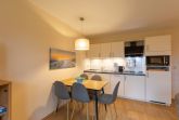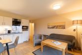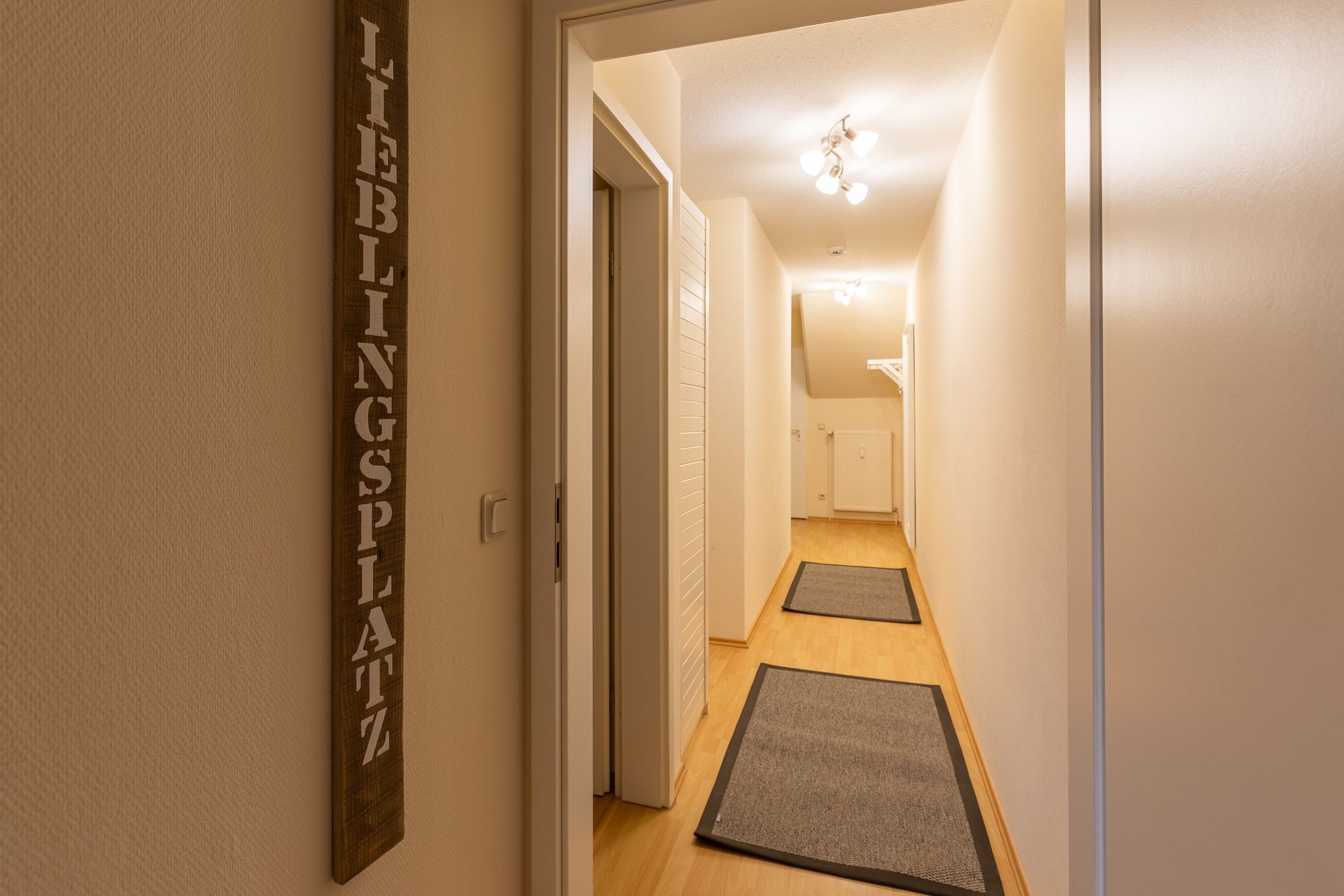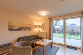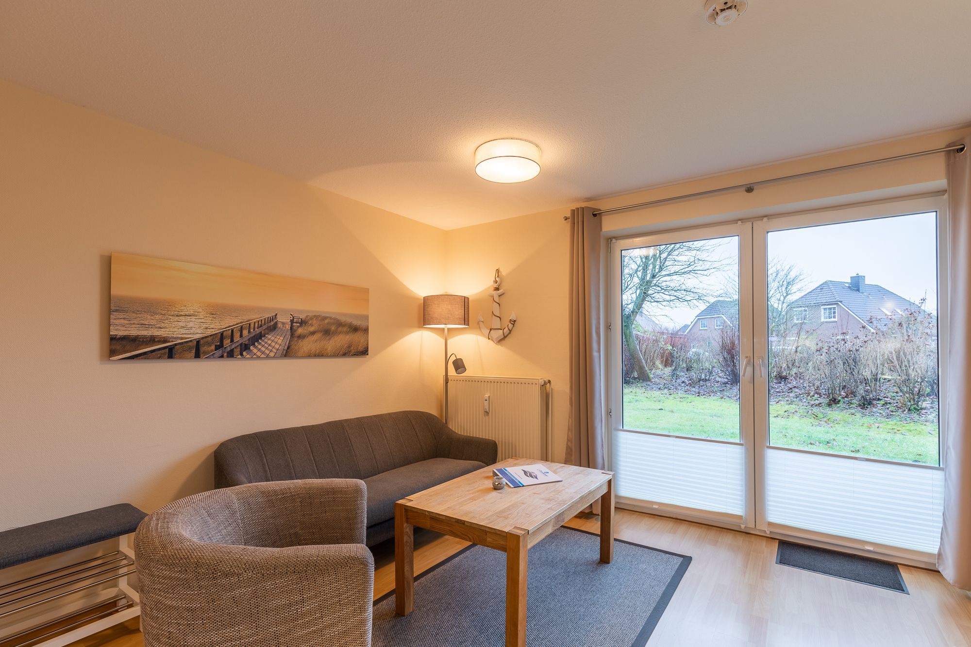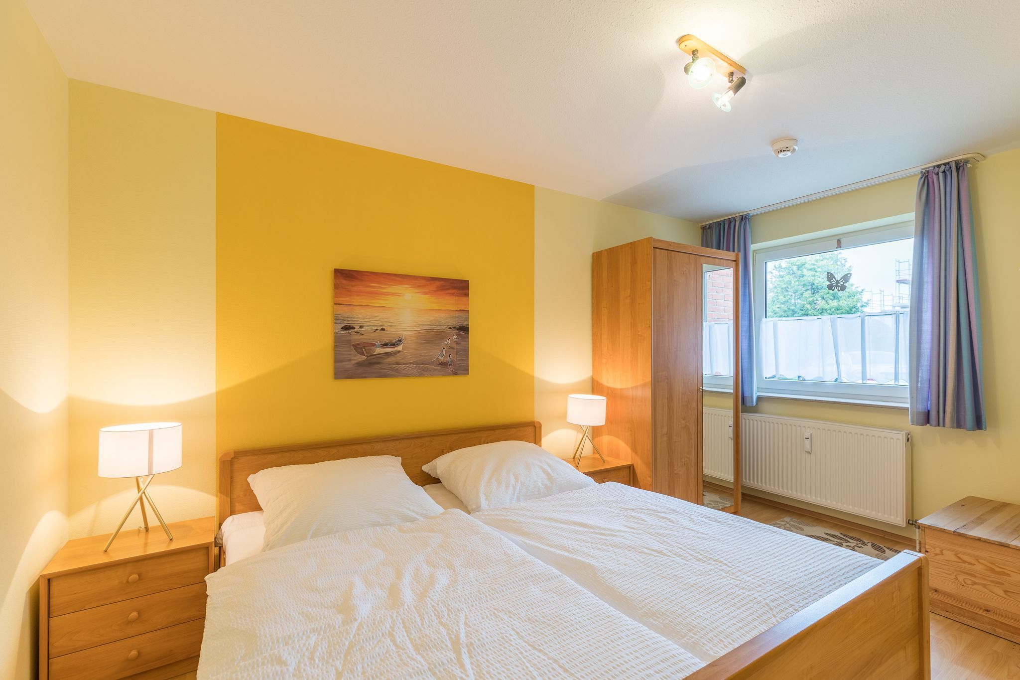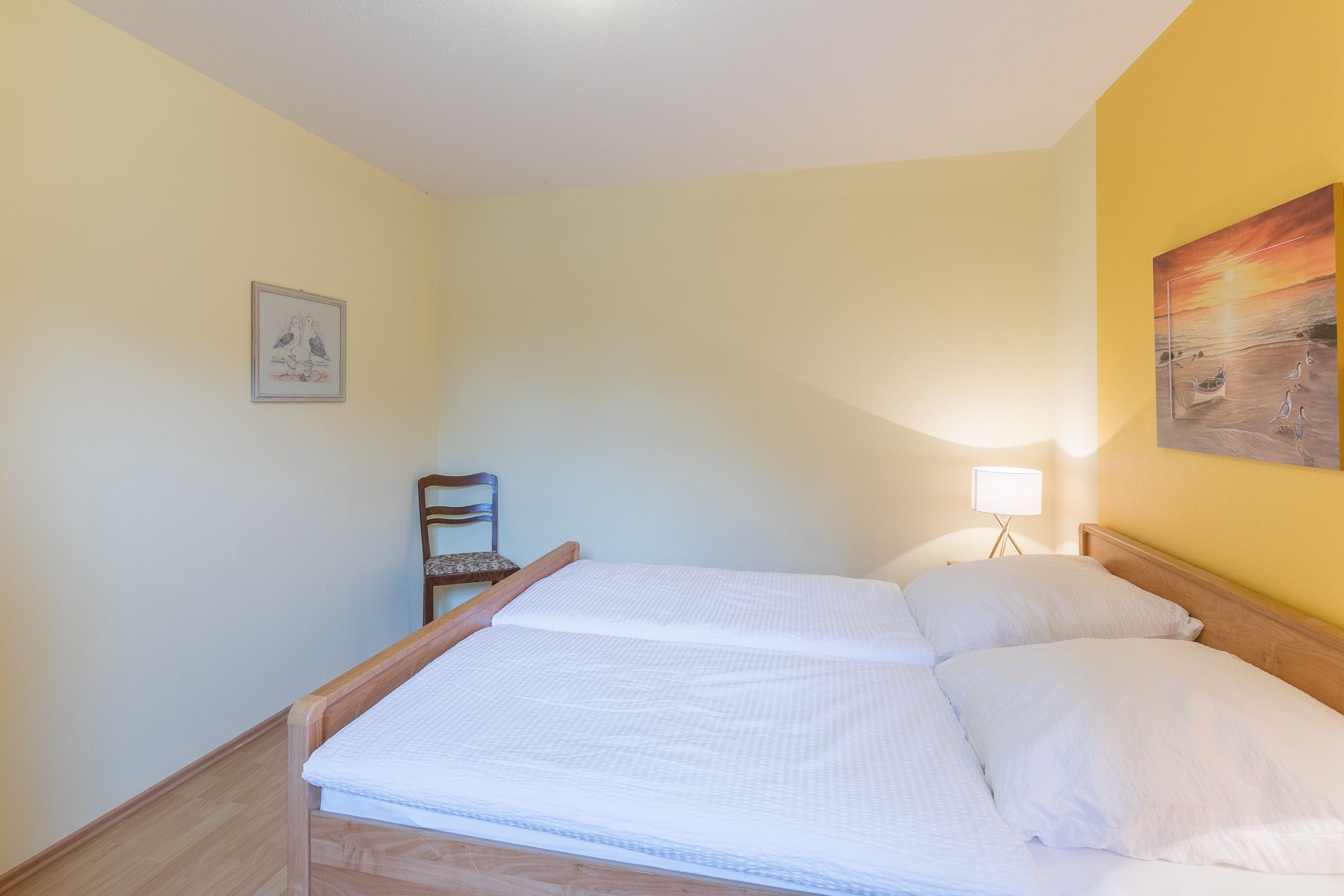 Die 3 Zimmer Wohnung (Erdgeschoss) ca. 52m² ist für bis zu 4 Personen ausgestattet, helles großes Wohnzimmer mit gemütlichem Sofa, Flatscreen TV, Essplatz für 4 Personen und Zugang zur Terrasse (mit Gartenmöbel), moderne Küchenzeile (Cerankochfeld mit 4 Platten, moderne Dunstabzugshaube, Kühlschrank mit Gefrierfach, Kaffeemaschine, Wasserkocher, Toaster, Geschirrspüler), 1 Bad mit Dusche und WC (das Bad wurde in 2022 erneuert), Flur, 1 Schlafzimmer mit Doppelbett, 2. Schlafzimmer innenliegend mit Etagenbett, PKW-Stellplatz am Haus, Nichtraucher, es sind keine Tiere erlaubt.