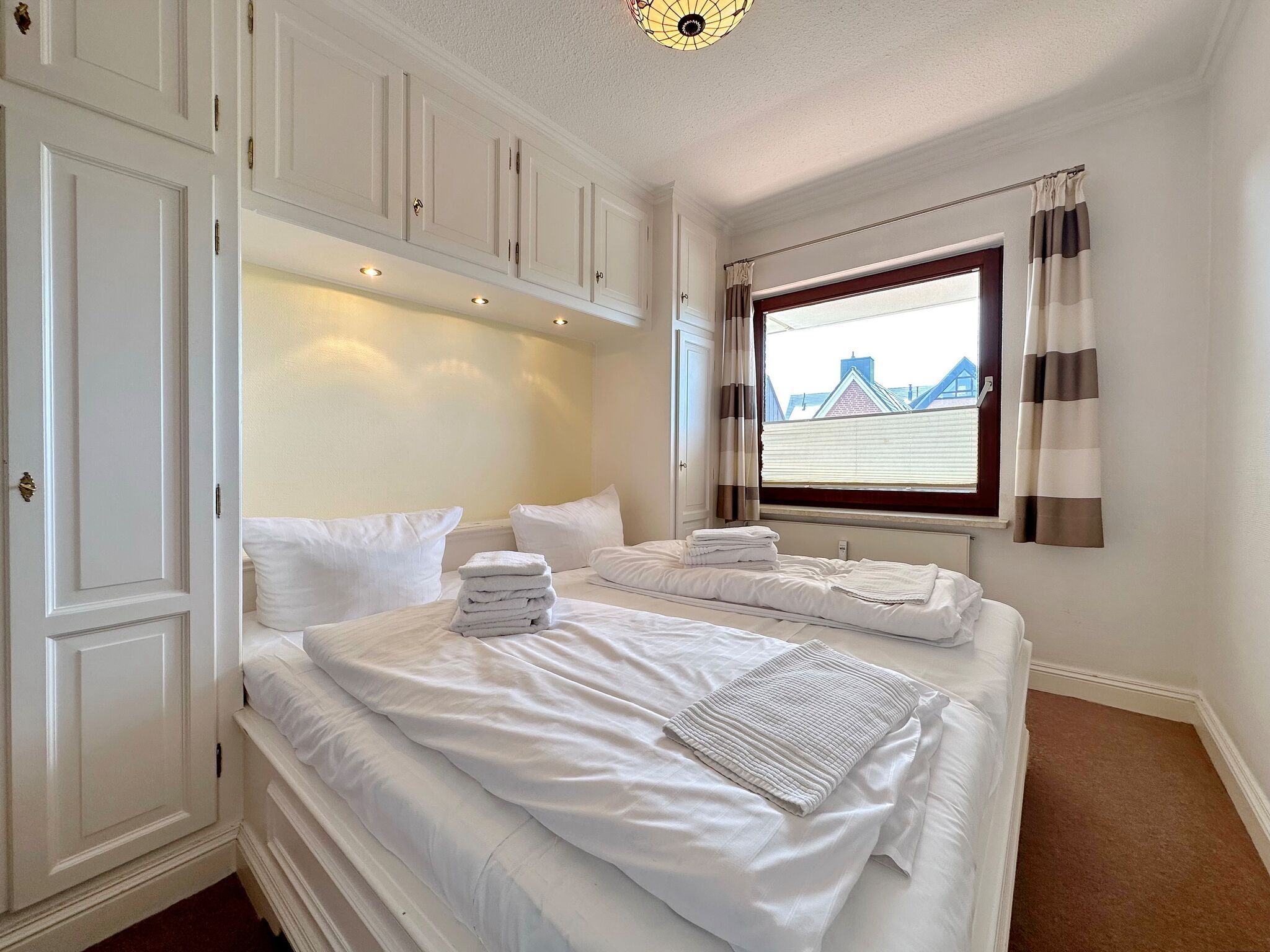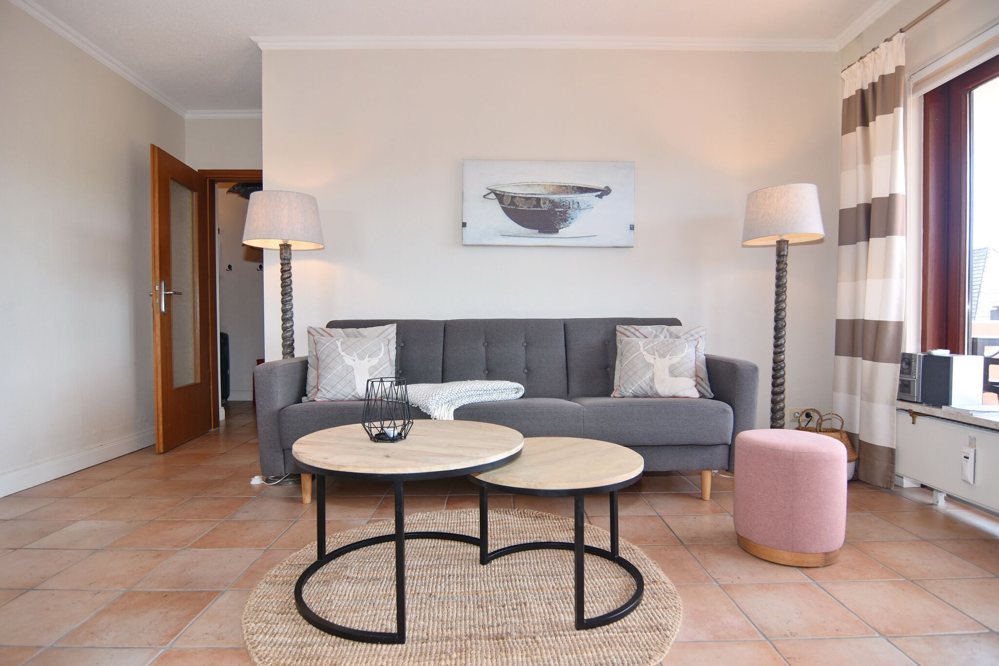Großzügige 2-Zimmer-Wohnung in TOP-Lage. Direkt hinter der Düne liegt das Apartmenthaus Belvedere. Von hier aus sind es nur noch wenige Schritte bis ans Meer und in die Innenstadt laufen Sie ca. 2 Minuten. Die Wohnung befindet sich im 1. OG des Hauses, hat ein großzügiges Wohnzimmer mit Zugang zum Südwestbalkon, offener Küche und Essplatz sowie einem Schlafzimmer mit Doppelbett und Einbauschränken und ein Duschbad/WC. Der Balkon ist möbliert. Die Sitzecke besteht aus einer 3-Sitzer-Couch und einem Sessel mit Fusshocker. Die offene Küche verfügt über Mikrowelle und Geschirrspüler. Zur Wohnung gehört der Tiefgaragenstellplatz Nr. 12. Tierhaltung und Rauchen sind in der Wohnung nicht gestattet. Bettwäsche und Handtücher sind zur Anreise aufgezogen!