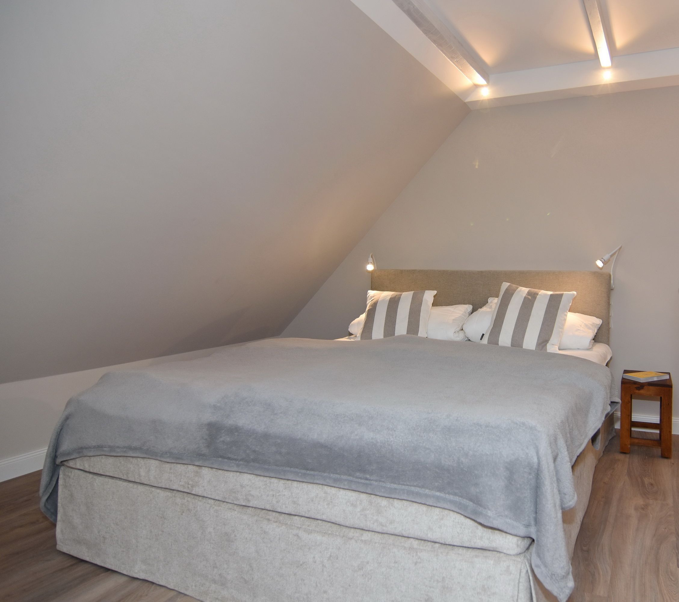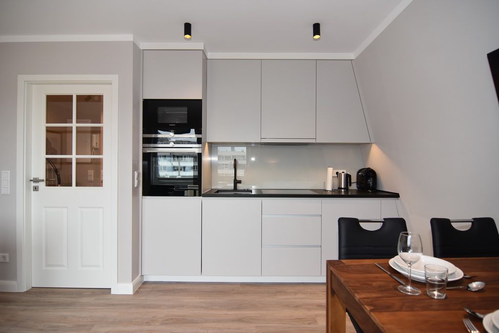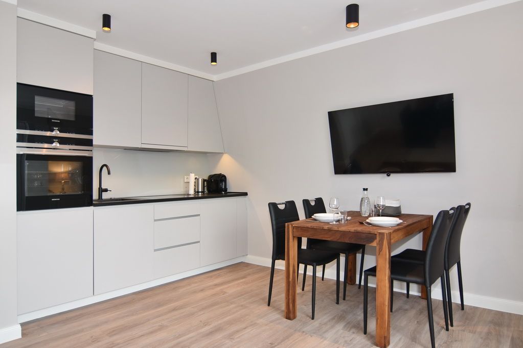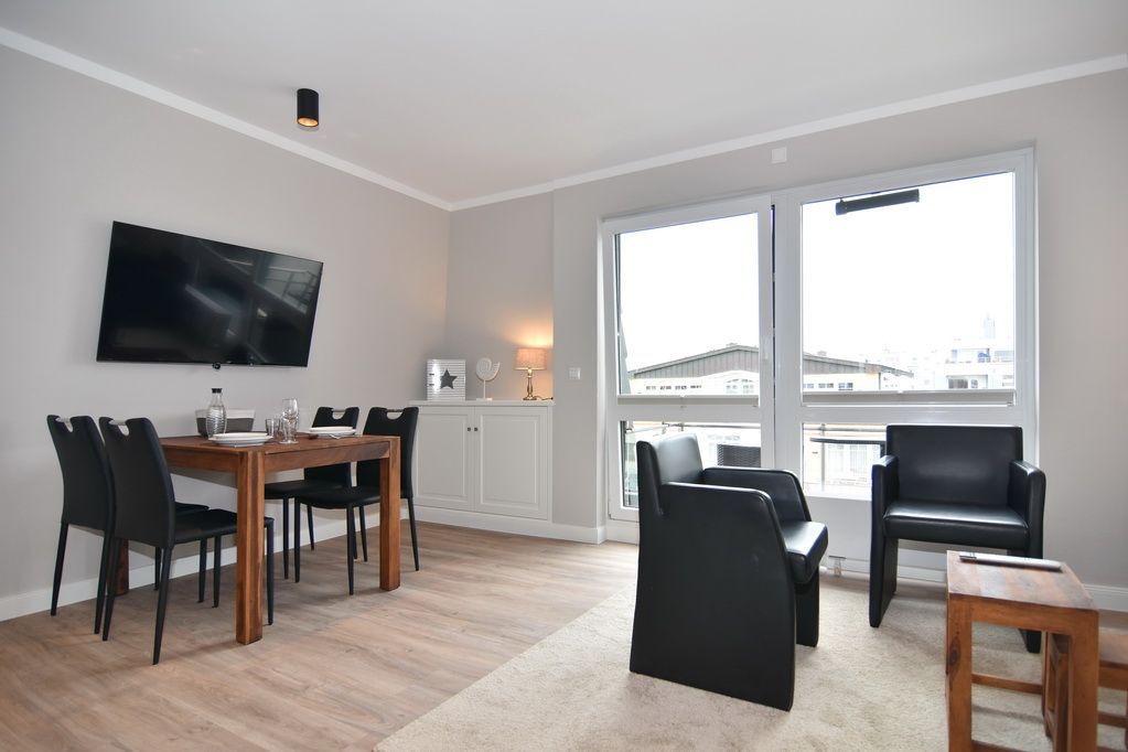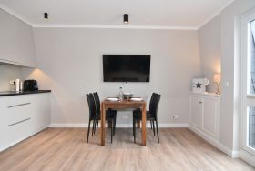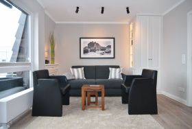 Schöne 2-Zimmer-Wohnung in Innenstadtlage auf 2 Etagen. Ca. 50qm, 3. Etage (Fahrstuhl vorhanden). Wohnzimmer mit Couch mit Schlaffunktion (140x200 cm), 2 Sessel, Essplatz, TV und Musikanlage, WLAN (ohne Gewähr), offene Küche mit Geschirrspüler, Backofen und Mikrowelle, Westbalkon mit Balkonmöbeln. Auf der Ebene befindet sich ein kleines Duschbad/WC. Im offenen Dachgeschoß befindet sich ein Schlafzimmer mit Box-Springbett (160x200 cm ), Kleiderschrank und Flat-TV sowie ein weiteres Duschbad/WC. Die Etage ist über eine Wendeltreppe erreichbar. Duplex-Garagenstellplatz (Bedienungsanleitung dringend beachten, Nutzung auf eigene Gefahr, nicht für SUV/Kombi geeignet, max. Maße/Gewichte: 500 cm Länge, 180 cm Breite, 150 cm Höhe, max. 2.000 kg Gewicht, max. 500 kg Radlast). Nichtraucher-Appartement. Tierhaltung ist nicht gestattet. Bettwäsche und Handtücher sind zur Anreise aufgezogen.