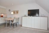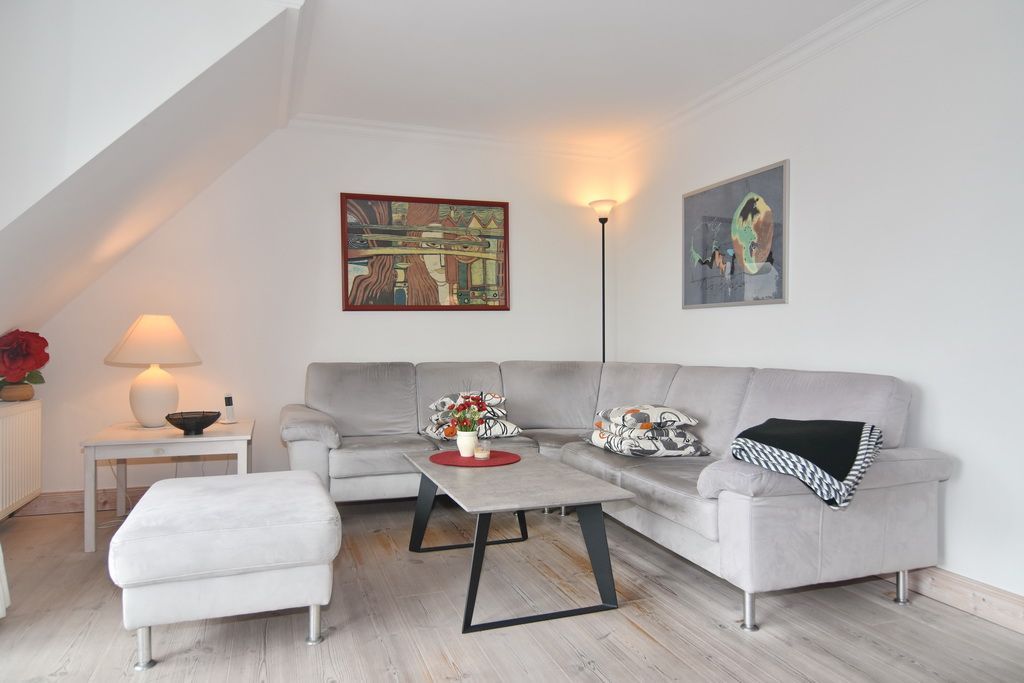 Hell, geräumig, ruhig - einfach eine tolle Wohnung. Im Obergeschoß des Einfamilienhauses Louise befindet sich die 2-Zimmer-Wohnung mit ca. 48qm. Das Wohnzimmer verfügt über eine gemütliche Sitzecke, eine voll ausgestattete Küchenzeile mit Geschirrspüler und Backofen, einem Essplatz, Flat-TV, einem Schrankbett (90x200) und einem herrlichen Südbalkon mit Balkonmöbeln und Markise. Über den Wohnungsflur mit Garderobe gelangen Sie in das Schlafzimmer mit Doppelbett (180x200) und Kleiderschrank sowie das Duschbad / WC. Ein kleiner Hund ist in dieser Wohnung gestattet - muss aber kostenpflichtig angemeldet werden. Ein Pkw-Stellplatz sowie Fahrradständer befinden sich vor dem Haus. WLAN (ohne Gewähr) ist im Haus vorhanden. Bettwäsche und Handtücher sind zur Anreise aufgezogen.