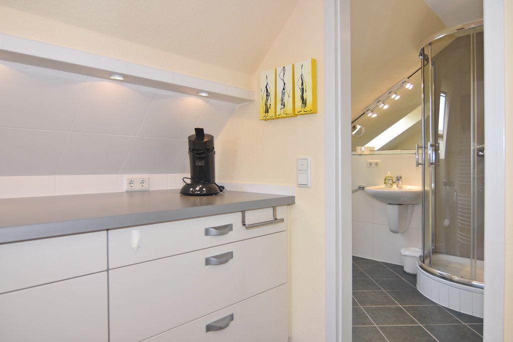 Diese Studiowohnung im Dachgeschoss des Einfamilienhauses Louise ist perfekt für Jung und Alt. Alle Räume befinden sich auf einer Ebene. Herzstück der Wohnung ist die lange Küchenzeile, voll ausgestattet mit Ceranherd, Geschirrspüler und Backofen. Direkt anschließend befindet sich ein schöner Essplatz und eine gemütliche Sitzecke. Das Schlafzimmer mit Doppelbett (180x200), TV und Kleiderschrank ist hell und freundlich und bietet ausreichend Platz für ein Kinderbett. Abgerundet wird das ganze durch ein modernes Duschbad / WC. Ins Dachgeschoß führt eine schmale Treppe. Pkw-Stellplatz befindet sich am Haus. Zur Wohnung gehört ein kleiner Sitzplatz im Garten. WLAN (ohne Gewähr) ist vorhanden.