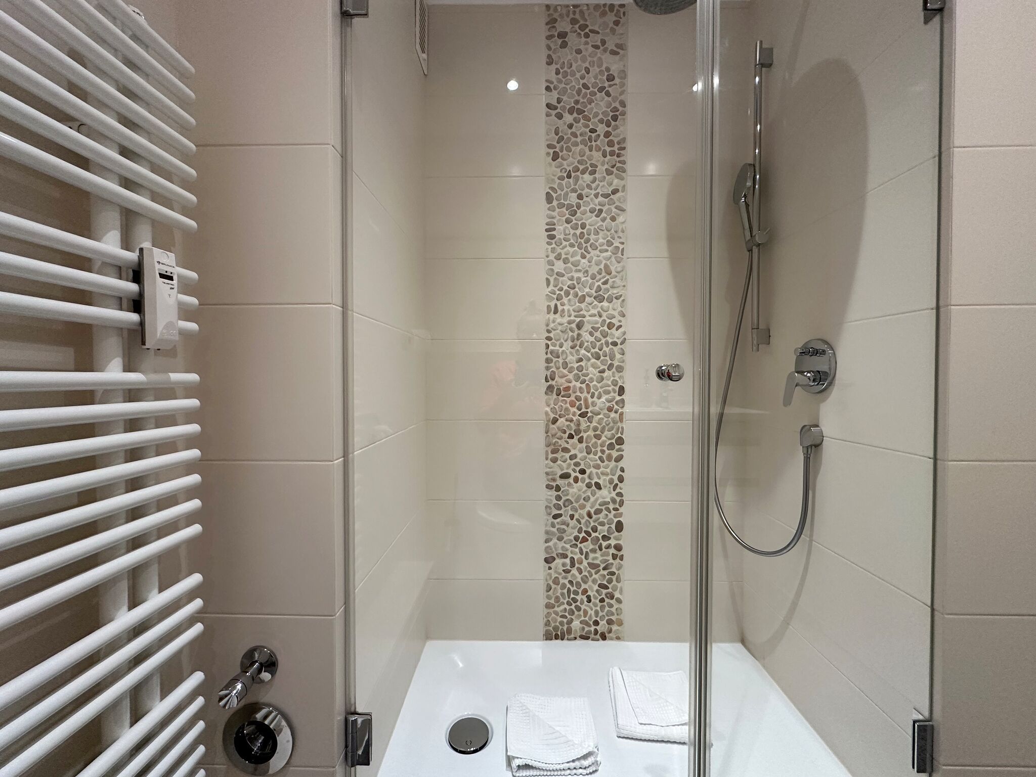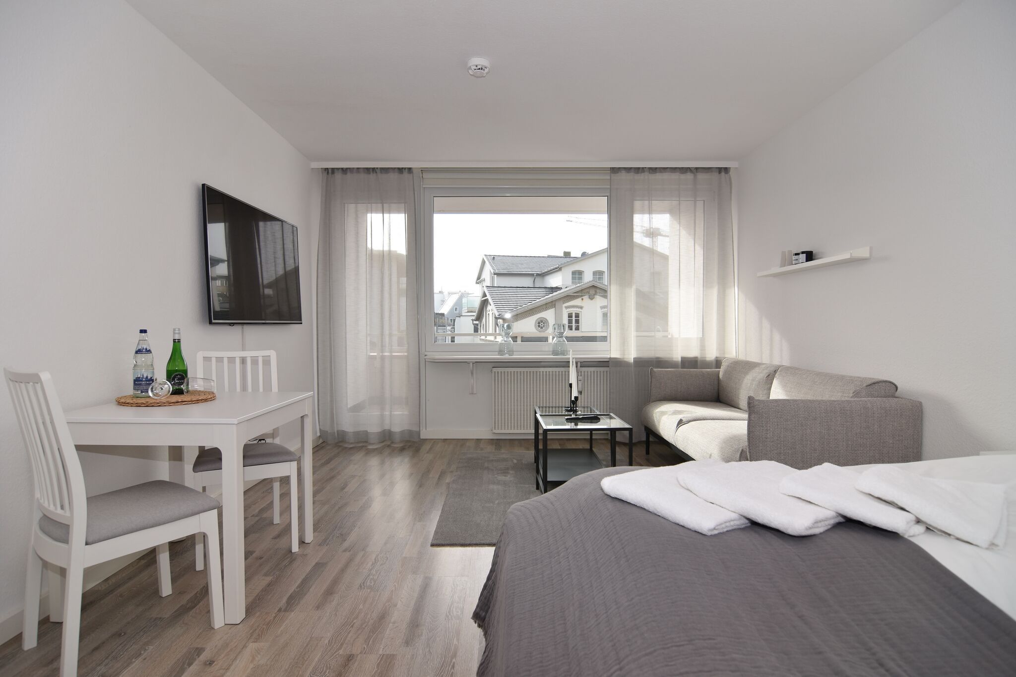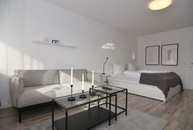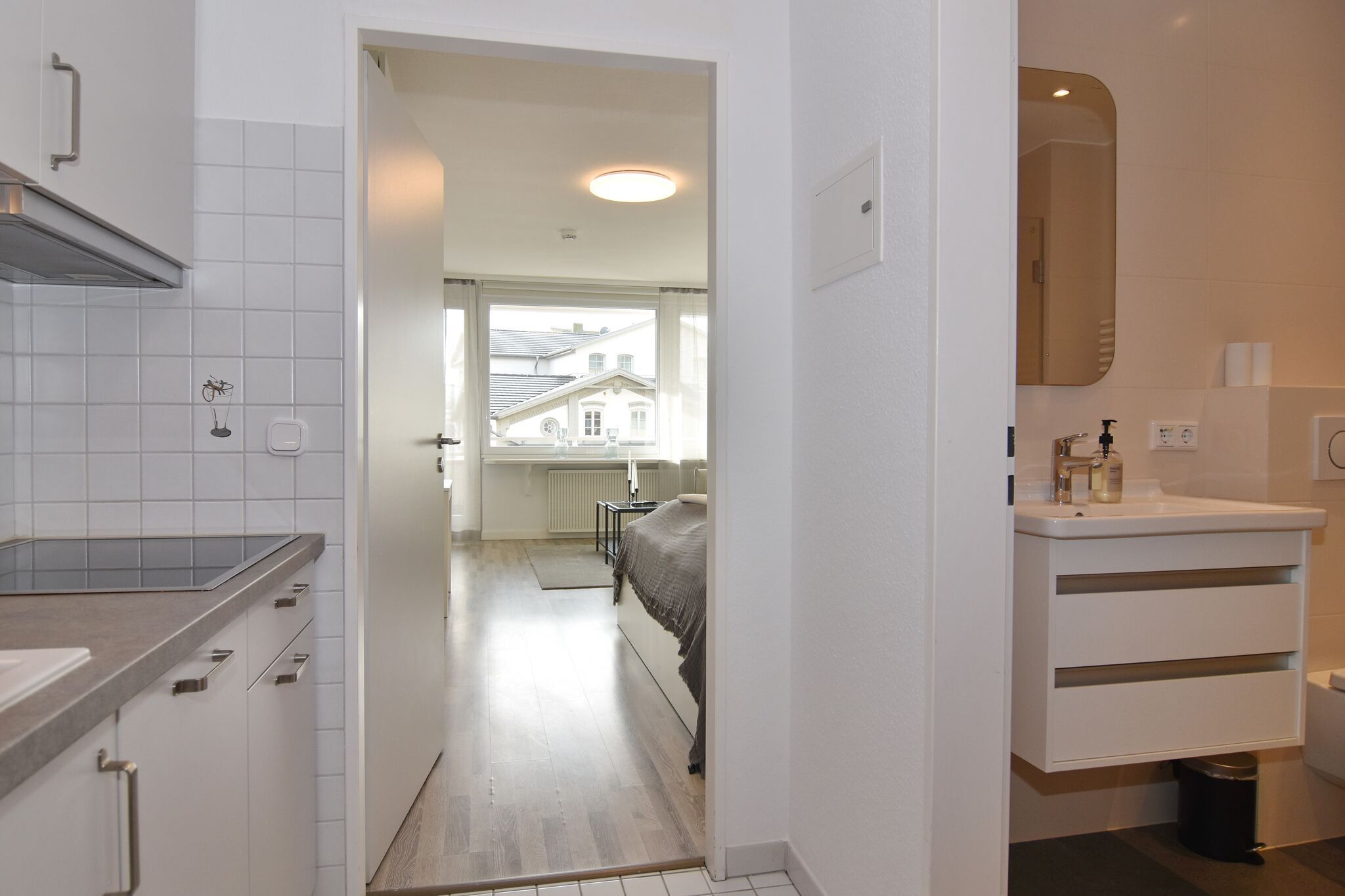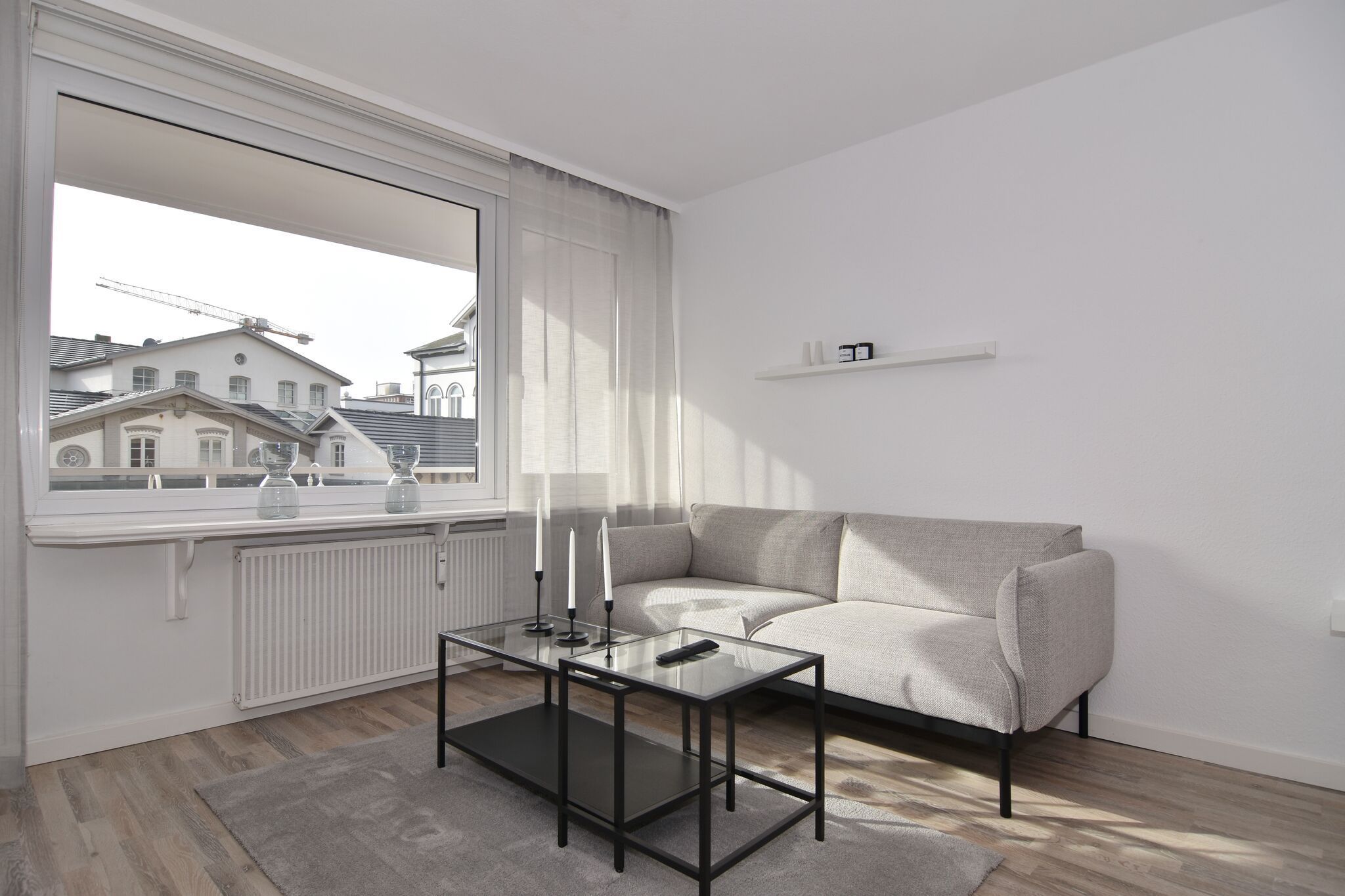 Nur wenige Schritte vom Strand entfernt befindet sich das Haus Strandstrasse 22. Genießen Sie die Vorzüge dieser zentralen Lage - Bäcker, Supermarkt und Strand sind nur einen Katzensprung entfernt. Die helle Wohnung verfügt über einen geräumigen Wohn-/ Schlafraum mit Doppelbett (180x200, 2 Matratzen), Sitz- und Essecke sowie einem großen Südbalkon. Im Flurbereich der Wohnung befindet sich die Küchenzeile mit Ceranherd, Kühlschrank und Geschirrspüler. Ein modernes und frisch saniertes Duschbad/WC überzeugt mit einer großen Dusche und hübschen Waschtisch - ein Föhn ist vorhanden. Die Wohnung ist durch Ihren Designboden auch für Allergiker geeignet, Tierhaltung und Rauchen sind in der Wohnung nicht gestattet. Im Haus befindet sich eine Waschküche mit Münz-Waschmaschine und -trockner. Bettwäsche und Handtücher sind zur Anreise aufgezogen. Ein Stellplatz kann nach je Verfügbarkeit kostenpflichtig im Kurzentrum (ca. 150m Entfernung) dazu gebucht werden.