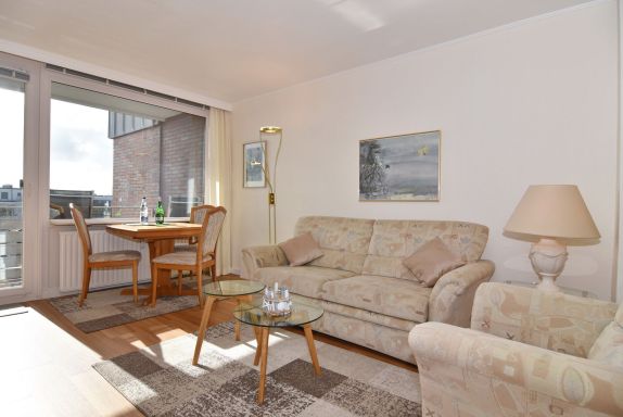 Die 2-Zimmer-Wohnung mit ca. 50m² befindet sich im 2.OG des Haus Eidum und ist durch die zentrale Lage ein optimaler Ausgangspunkt zur Erkundung der Insel. Am Eingangsbereich des Hauses befinden sich ca. 10-12 Stufen bevor Sie dann bequem mit dem Fahrstuhl in die 2. Etage fahren können. Die Wohnung verfügt über ein Wohnzimmer mit Sitz- und Essecke (Schlafcouch), TV, Stereoanlage und möblierten Südbalkon, einem separaten Schlafzimmer mit großzügigem Einbauschrank und Doppelbett (2x 90x200 cm), einer separaten Küche mit Geschirrspüler, Mikrowelle und Ceranherd, großem Flurbereich und ein Duschbad / WC. Sämtliche Räume verfügen über ein Fenster. Die Wohnung ist in einem sehr gepflegten Zustand und ist mit Designboden ausgelegt. Zu der Wohnung gehört ein großer Pkw-Aussenstellplatz, der sich an der Stirnseite des Hauses befindet. Im Keller stehen Ihnen über Münzzähler Waschmaschine und Trockner zur Verfügung. Tierhaltung und Rauchen in der Wohnung ist nicht gestattet. Bettwäsche und Handtücher sind zur Anreise aufgezogen.