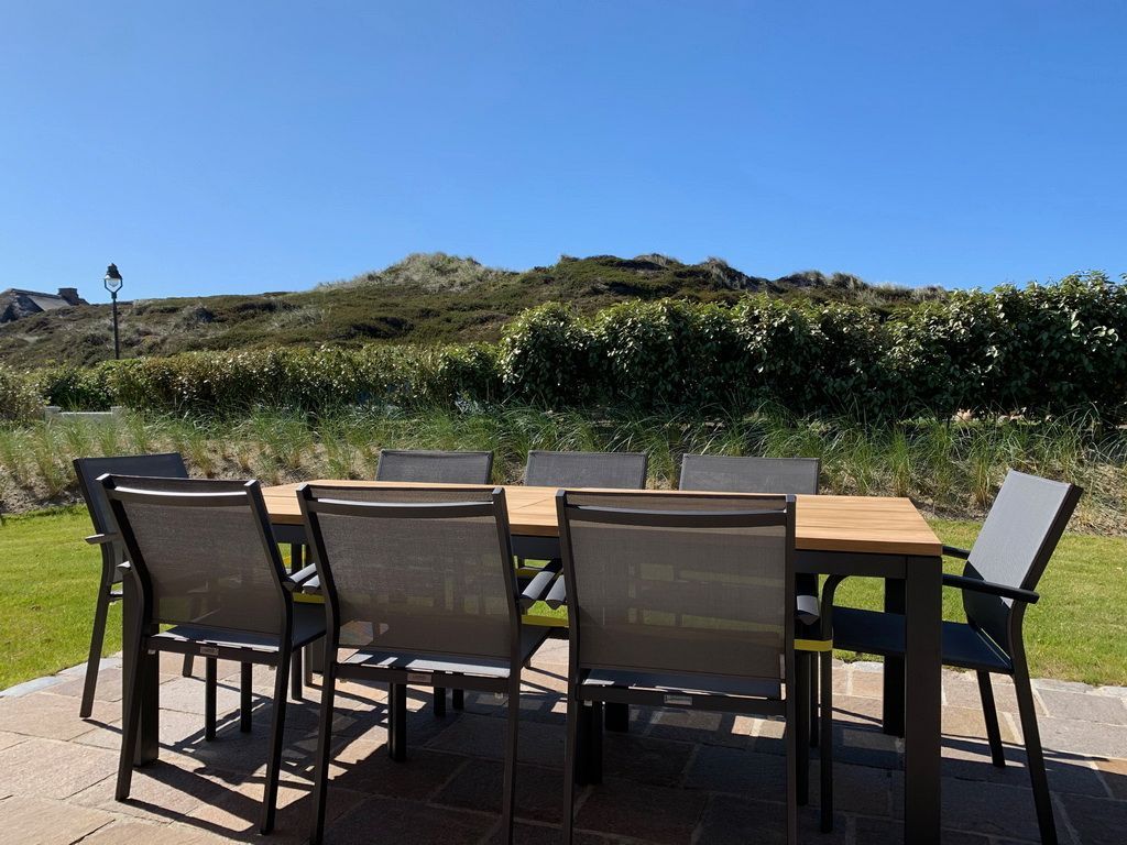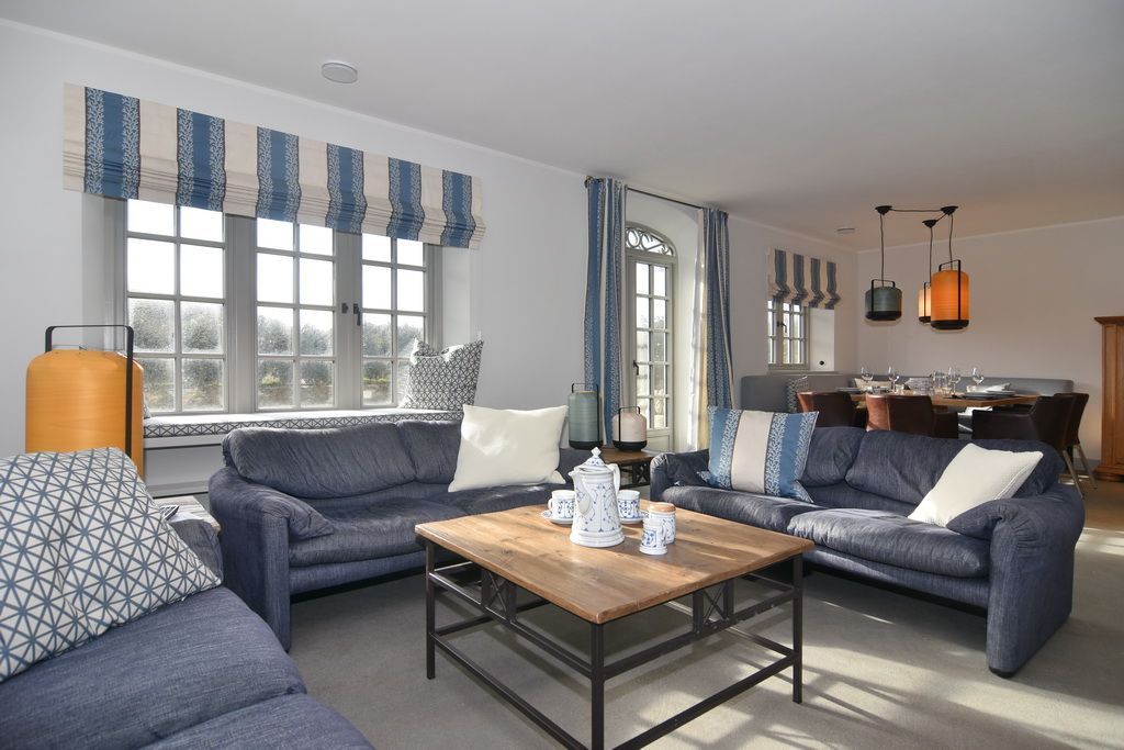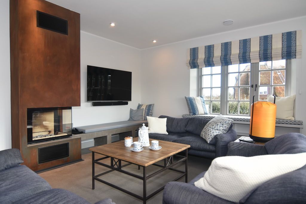 Das ist nicht zu toppen - wunderschöne Haushälfte in herrlich ruhiger und strandnaher Lage mit exklusiver Ausstattung. Auf ca. 180qm wohnen Sie in einem Traumhaus. Im Erdgeschoss gelangen Sie durch einen großzügigen Eingangsbereich mit großer Garderobe und Gäste-WC in ein stilvolles Wohnzimmer. Genießen Sie gemeinsame Stunden in der großzügigen Essecke oder in der Sitzecke bestehend aus drei Couchen und Blick zu dem modernen Kamin. Die elegante Küche bietet neben dem Induktionsherd, einen großen Kühlschrank, ein Gefrierschrank und einen extra Flaschenkühlschrank. Nespresso-Maschine, Backofen, Mikrowelle und Geschirrspüler dürfen hier natürlich nicht fehlen. Durch eine Klönschnacktür gelangen Sie in den hinteren Teil des Gartens mit Sonnenkuhle. Vom Wohnzimmer aus geht es auf die Südterrasse. Im Obergeschoss befinden sich das Hauptschlafzimmer mit Blick auf die Dünen und großem eigenen Bad mit Dusche und Wanne sowie ein kleineres, aber nicht weniger schönes, Schlafzimmer mit eigenem Duschbad / WC. Im Untergeschoß gibt es zwei weitere Schlafzimmer mit Doppelbetten und Einbauschränken sowie einem Duschbad/WC. Alle Schlafzimmer sind mit hochwertigen Holzböden, Fußbodenheizung und TV ausgestattet. Über die TVs können Sie auch Radio hören. W-LAN ist vorhanden (ohne Gewähr). Im Saunabereich mit Dusche lassen sich auch stürmische Tage herrlich entspannt genießen. Ein Hauswirtschaftsraum mit Waschmaschine und Trockner, Kinderhochstuhl und Kinderreisebett stehen Ihnen kostenlos zur Verfügung. Ein Pkw-Abstellplatz befindet sich direkt am Haus. Tierhaltung ist nicht gestattet! Grillen und Rauchen ist nicht gestattet. Die Wäsche-Erstausstattung ist im Preis inbegriffen. Nachbestellungen erfolgen kostenpflichtig.