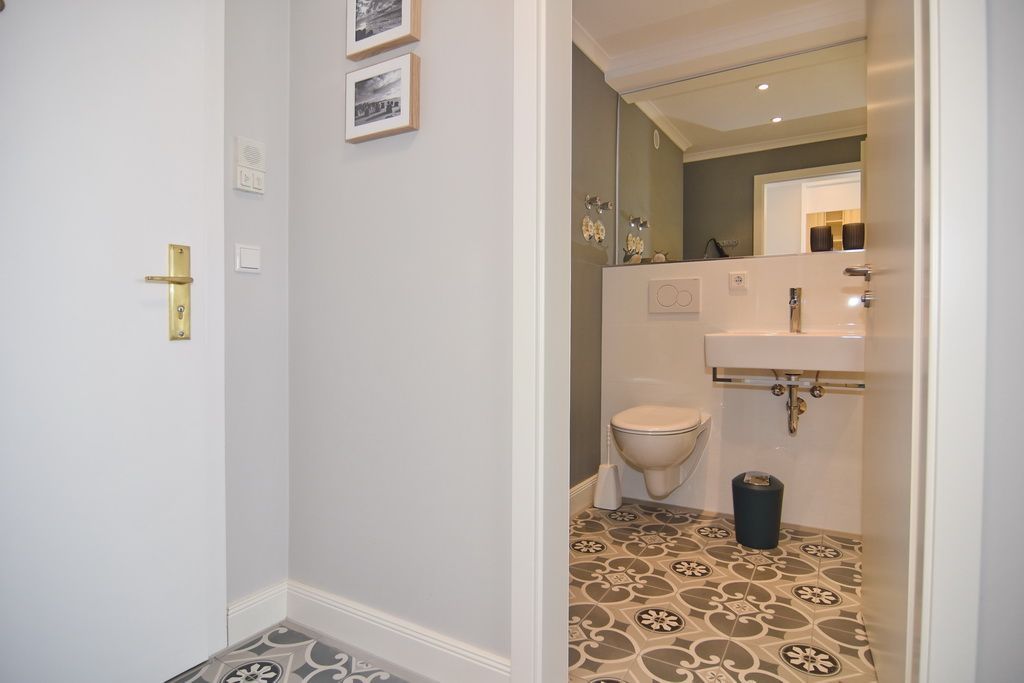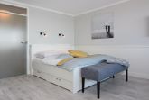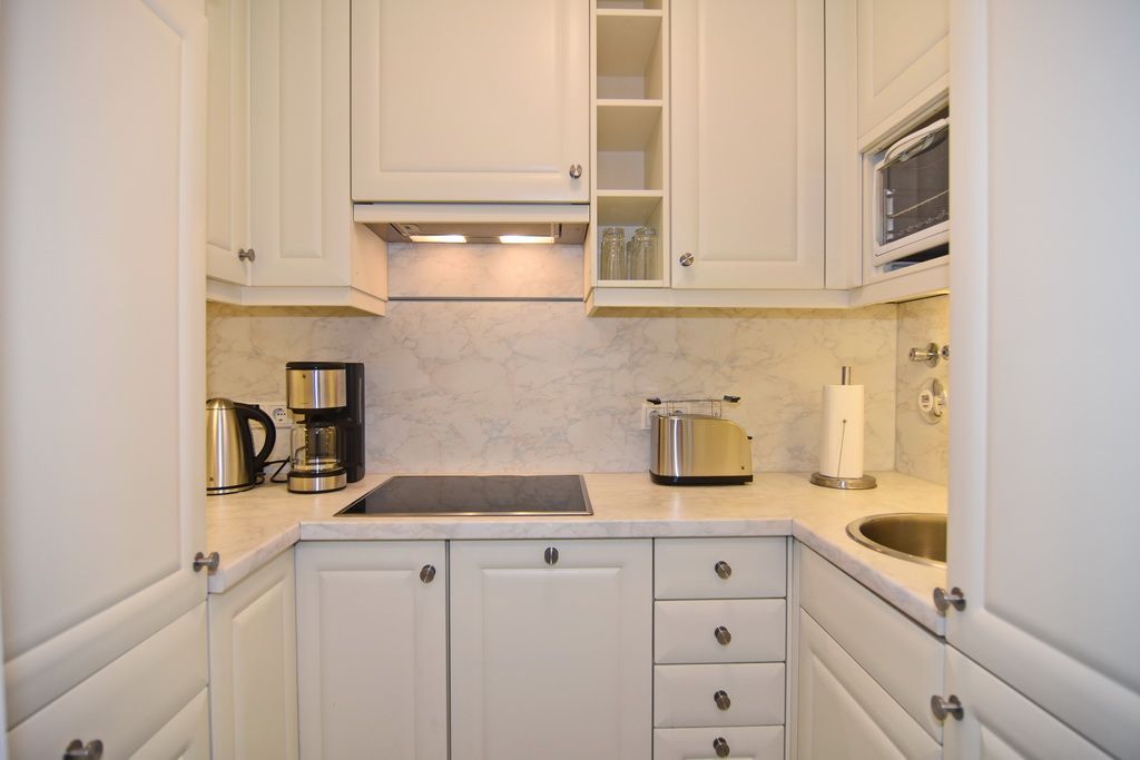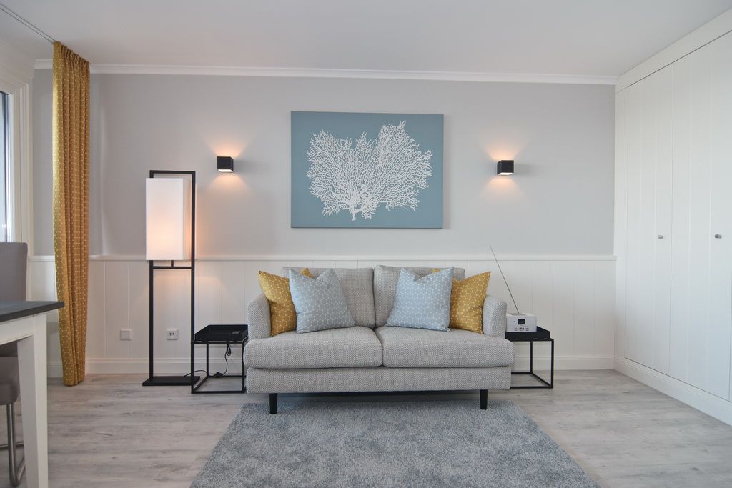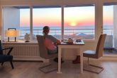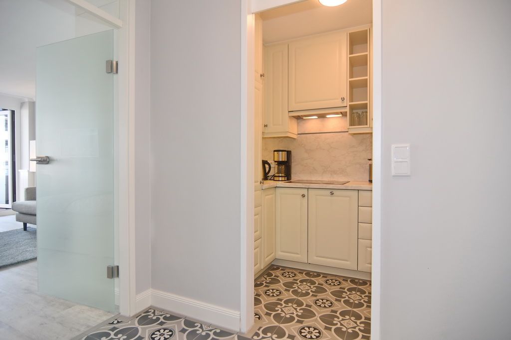 Exklusive 1-Zimmer-Wohnung im 4. OG des Hauses Sylter Welle. Genießen Sie den unverbaubaren Meeresblick von Bett, Sofa und Essplatz und dem möblierten Westbalkon. Auf 42 qm verteilt, verfügt die Wohnung über ein großzügiges Wohn-/ Schlafzimmer mit Doppelbett (2x80x200 cm), Couchecke, Kleiderschrank und Essplatz am Fenster. Vom Flur aus gelangen Sie in die separate Küche mit Geschirrspüler und in das neue Duschbad/WC. Rauchen sowie Tierhaltung sind nicht gestattet.Bettwäsche und Handtücher sind zur Anreise aufgezogen. Ein PKW-Stellplatz kann kostenpflichtig zugebucht werden.