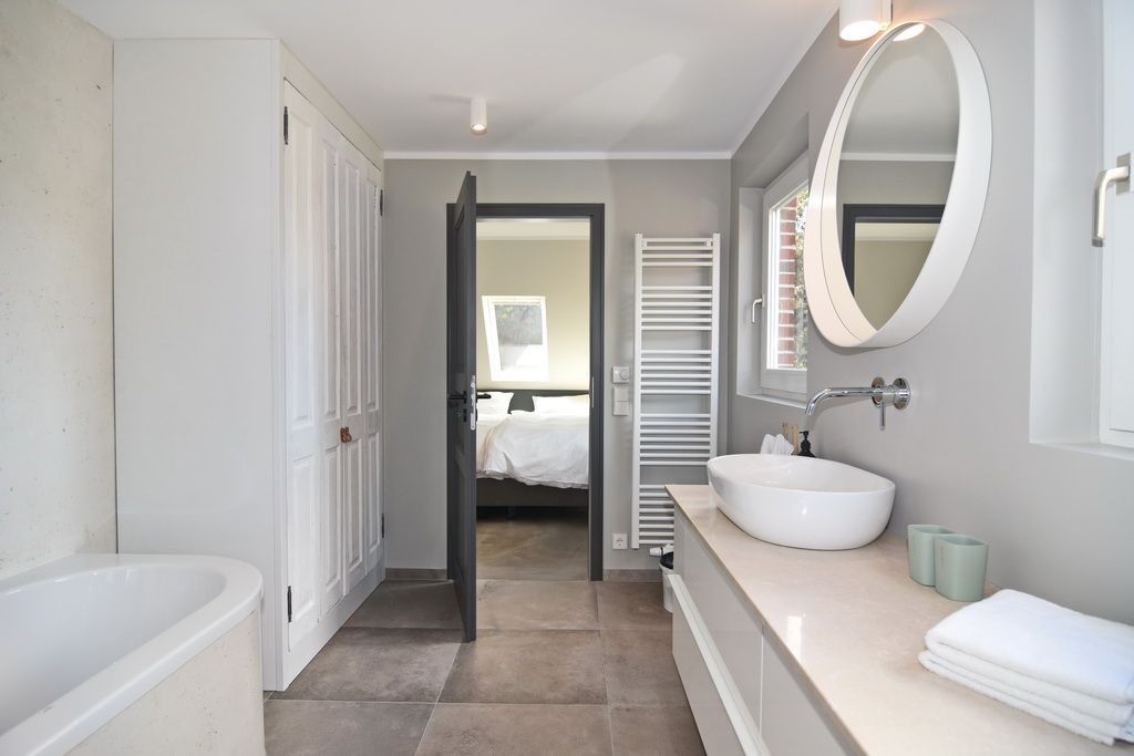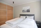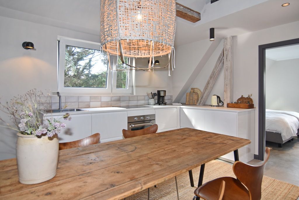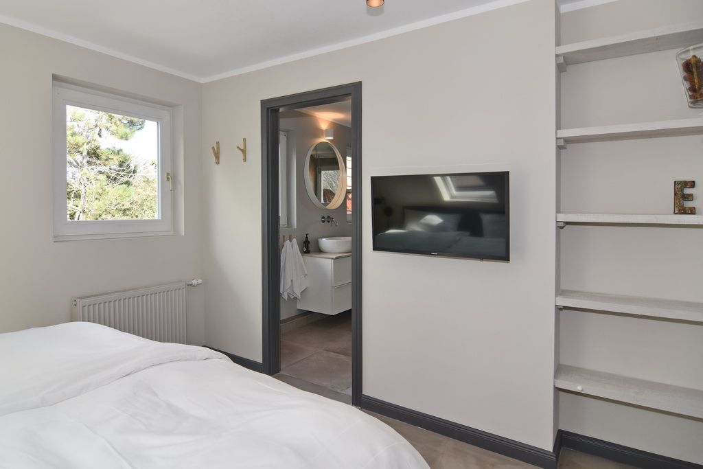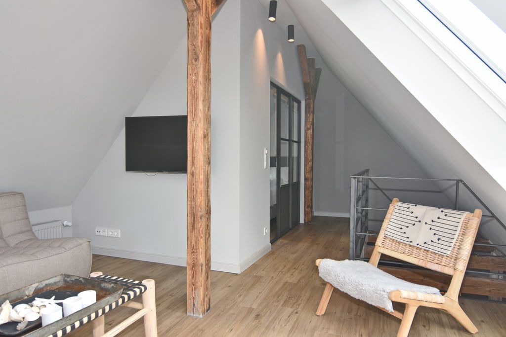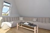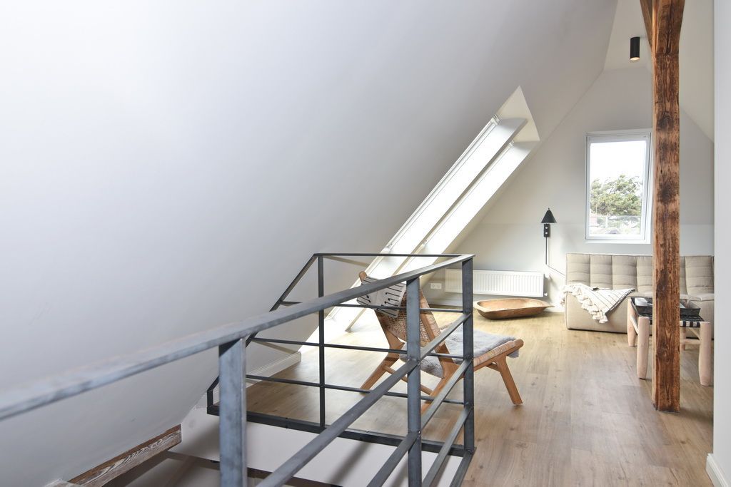 Direkt hinter den Dünen gelegen und dem Strand ganz nah.' Hier wohnen Sie in einer frisch renovierten 5-Zimmer-Maisonette-Wohnung mit ca. 74qm. Frei gelegte Deckenbalken, Naturtöne und liebevoll ausgewählte Möbel und Dekoration schaffen für Sie einen Ort der Ruhe und Entspannung. Im Obergeschoß befindet sich eine helle Wohnküche mit einem Essplatz für bis zu 6 Personen. Die Küche verfügt über Geschirrspüler, Backofen, großen Kühlschrank und separatem Gefrierschrank sowie eine Waschmaschine. Auf selber Ebene befinden sich ein Schlafzimmer mit Doppelbett (180x200), TV und großem, eigenen Bad mit Dusche, Wanne und Kleiderschrank; ein weiteres Schlafzimmer mit Doppelbett (160x200), Kleiderschrank und TV und ein separates Duschbad /WC. Aus der Wohnküche geht eine Metalltreppe ins Dachgeschoß (Achtung: offenes Geländer - nicht für Kleinkinder geeignet). Hier befindet sich ein weiterer Schlafraum (Jugendzimmer mit Doppelbett (160x200) und kleinem Spint - wunderschön hell, da hier eine Eisentrennwand mit Glas verbaut wurde - und der Wohnbereich mit gemütlicher Sitzecke, TV und großen, bodentiefen Veluxfenstern. Internet (ohne Gewähr) ist vorhanden. Bettwäsche und Handtücher sind zur Anreise aufgezogen. Parken in der Straße möglich. Kleiner, gemeinschaftlicher Außenbereich vor dem Haus. Fahrradständer am Haus. Tierhaltung und Rauchen sind im Objekt verboten.
