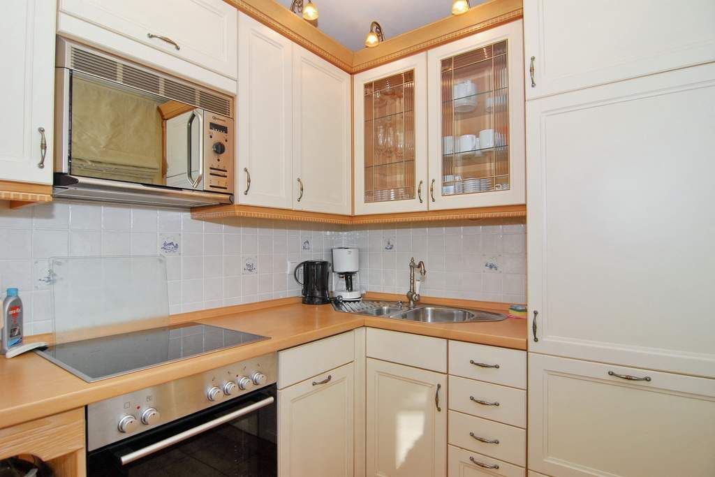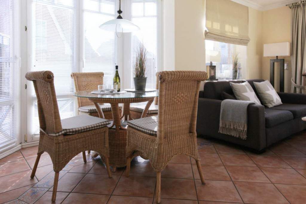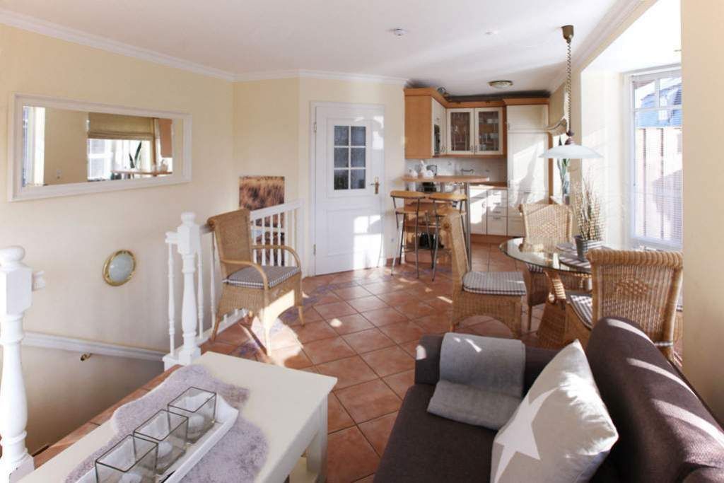 Hübsches 4-Zimmer- Apartment EG/UG im Haus Hopfengarten, ca. 67m², Nichtraucher. Gefliester Wohnraum mit Couch und Sessel, Esstisch, Radio, TV, Ost- und Südterrasse mit Strandkorb (Apr.-Okt.), offene Küche mit Geschirrspüler, Mikrowelle und Backofen, kleiner Esstresen, Duschbad/WC. UG: Schlafzimmer mit Doppelbett (180x200), Schlafzimmer mit Einzelbett (140x200), Schlafzimmer mit Einzelbett (90x200) und TV, Duschbad/WC. PKW-Stellplatz Nr. 7. Tierhaltung ist gestattet, bitte anmelden (Kampfhunde verboten). Bettwäsche und Handtücher sind zur Anreise aufgezogen.