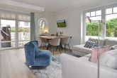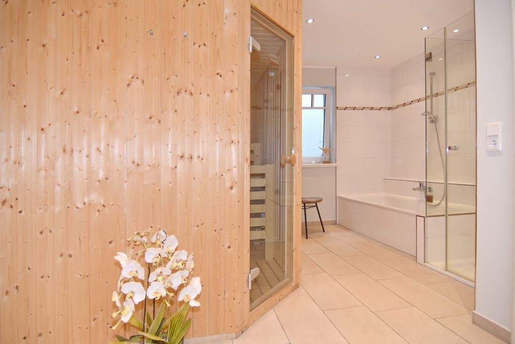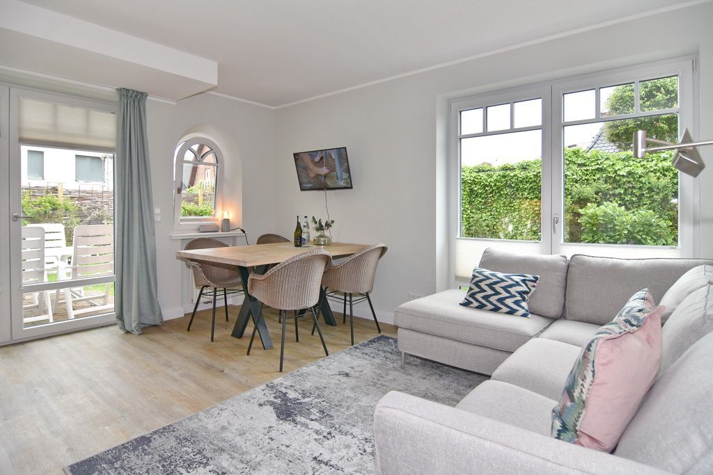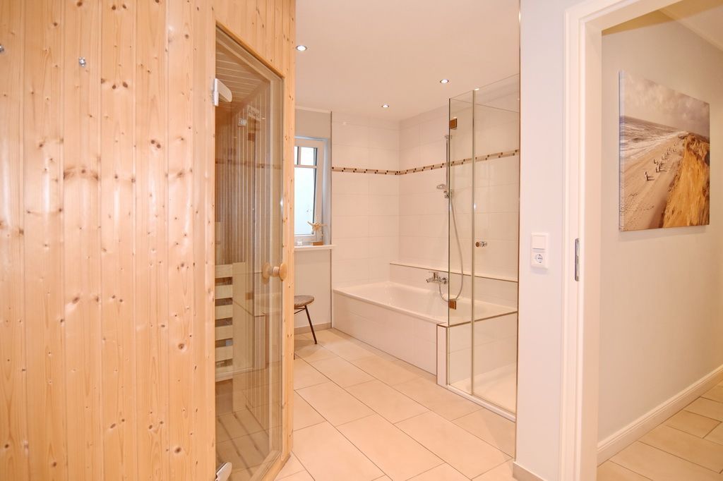 Exklusive 3-Zimmer-Ferienwohnung mit Südwestterrasse in unmittelbarer Strandnähe. Ca. 89m². EG/UG, Nichtraucher, Tierhaltung verboten. EG: großes Wohn- / Esszimmer mit integrierter Küche mit Geschirrspüler, Mikrowelle, Backofen, Couchecke, Essplatz für 4 Personen, Flat-TV, WLAN (ohne Gewähr), Stereoanlage mit Ipodstation, Schlafzimmer mit Doppelbett und Flat-Screen, Gäste-WC, Flur. UG: Schlafzimmer mit Doppelbett und Flat-Screen, Duschbad/WC, Saunabereich mit Dusche und Wanne. Wasch-/Trocknerkombination. 1 Pkw-Stellplatz vor dem Haus.Bettwäsche und Handtücher sind zur Anreise aufgezogen. Auf dem südlich angrenzenden Nachbargrundstück entsteht ab Februar 2025 ein Neubauvorhaben.