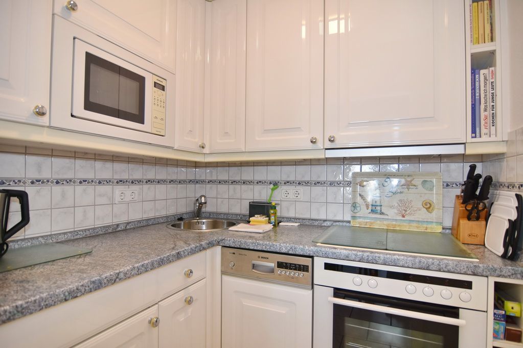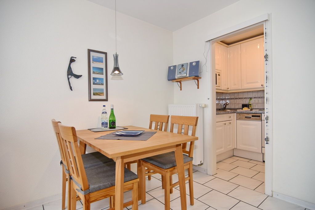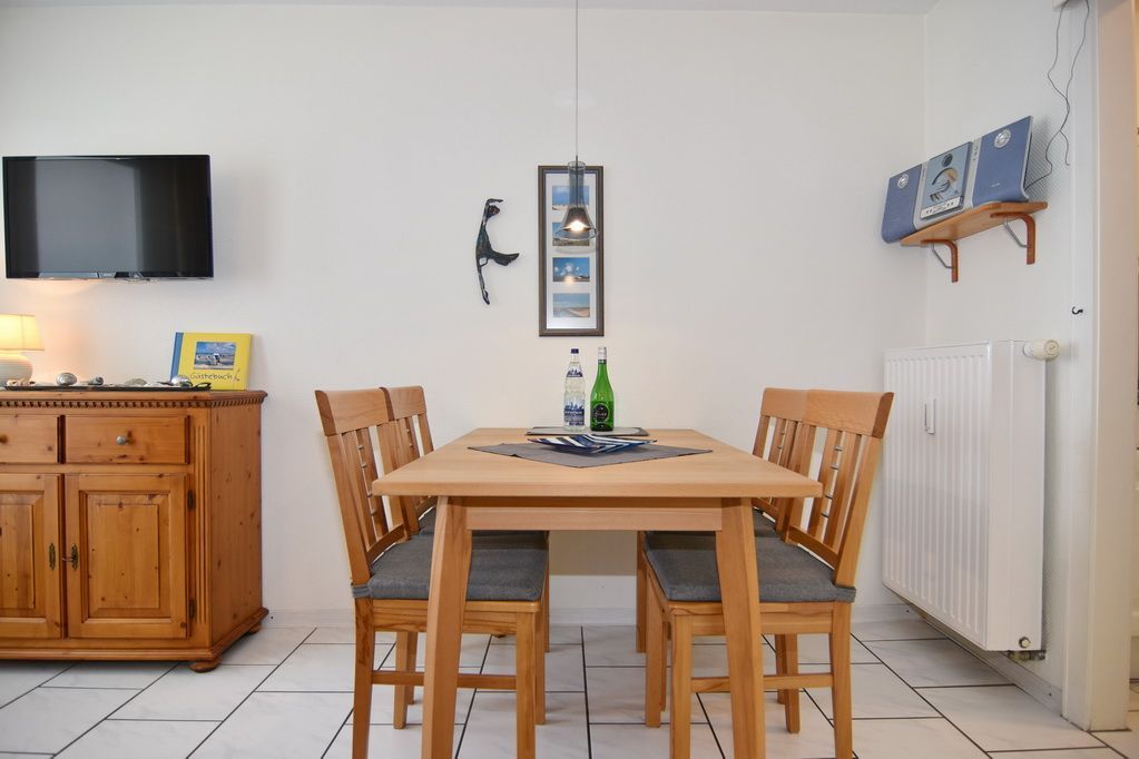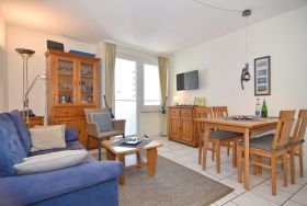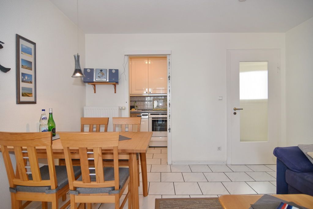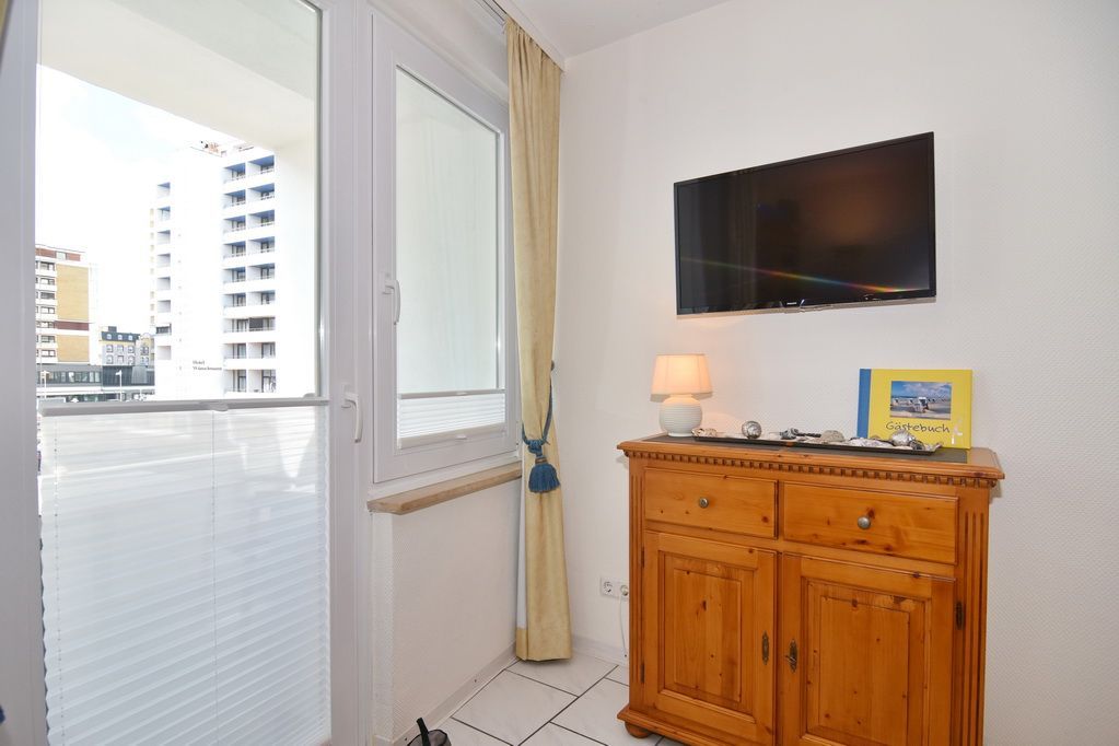 2 Zimmer-Ferienwohnung im Haus Atlantik, Nichtraucher, 2. OG, ca. 35m², unmittelbar am Strand. Wohn-/ Schlafraum mit Schlafcouch und Eßplatz, Kabel-TV, Stereoanlage, W-LAN (ohne Gewähr), kleiner Südbalkon, offene Küche mit Backofen, Mikrowelle und Geschirrspüler, Schlafzimmer mit Doppelbett (160x200) und Kleiderschrank, kleiner Flur mit Einbauschrank, Duschbad/WC. Das Apartment ist gepflegt ausgestattet und komplett gefliest. Tierhaltung verboten!!! Bettwäsche und Handtücher sind zur Anreise aufgezogen. Ein PKW-Stellplatz kann kostenpflichtig dazu gebucht werden.