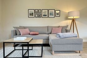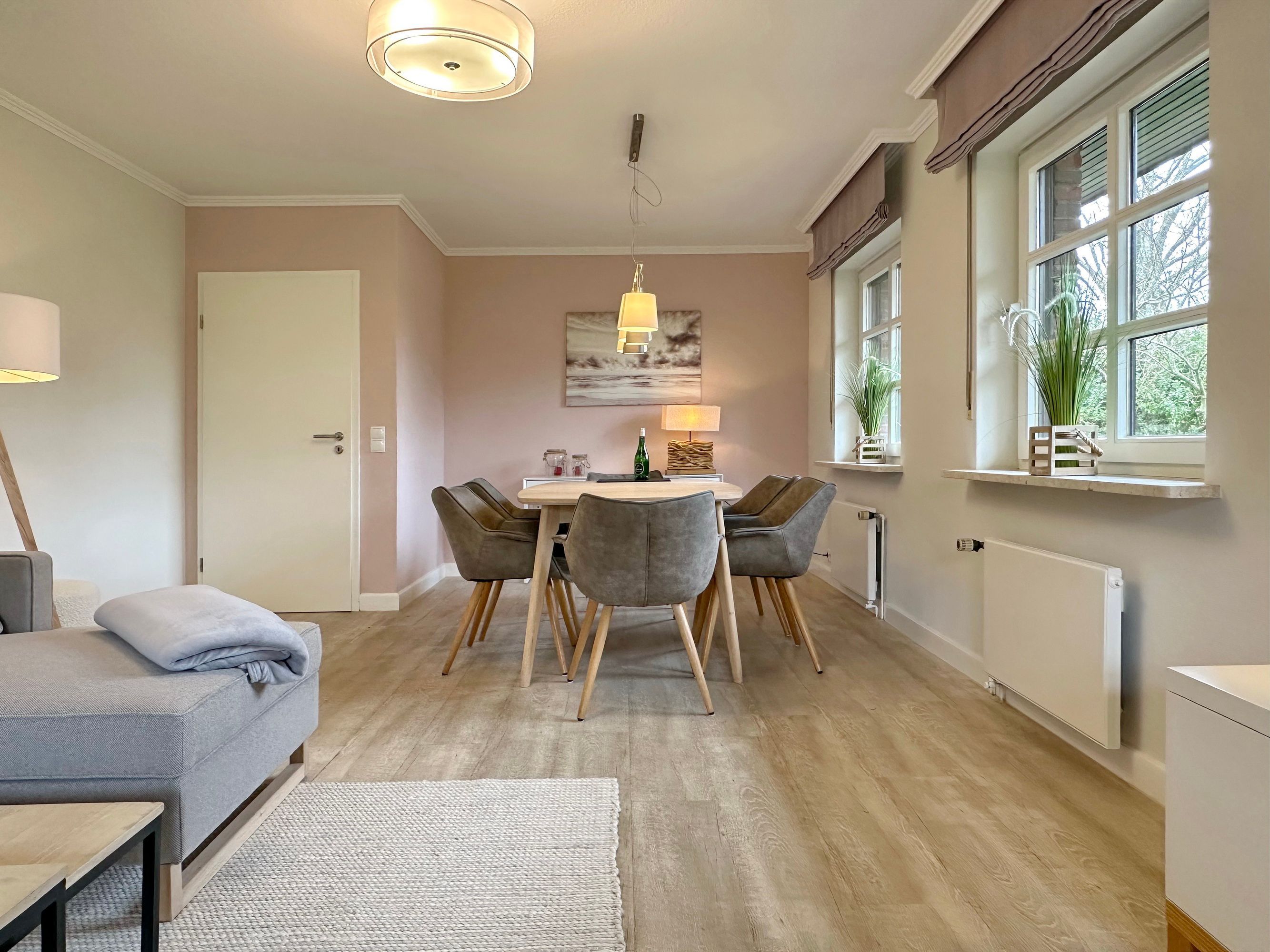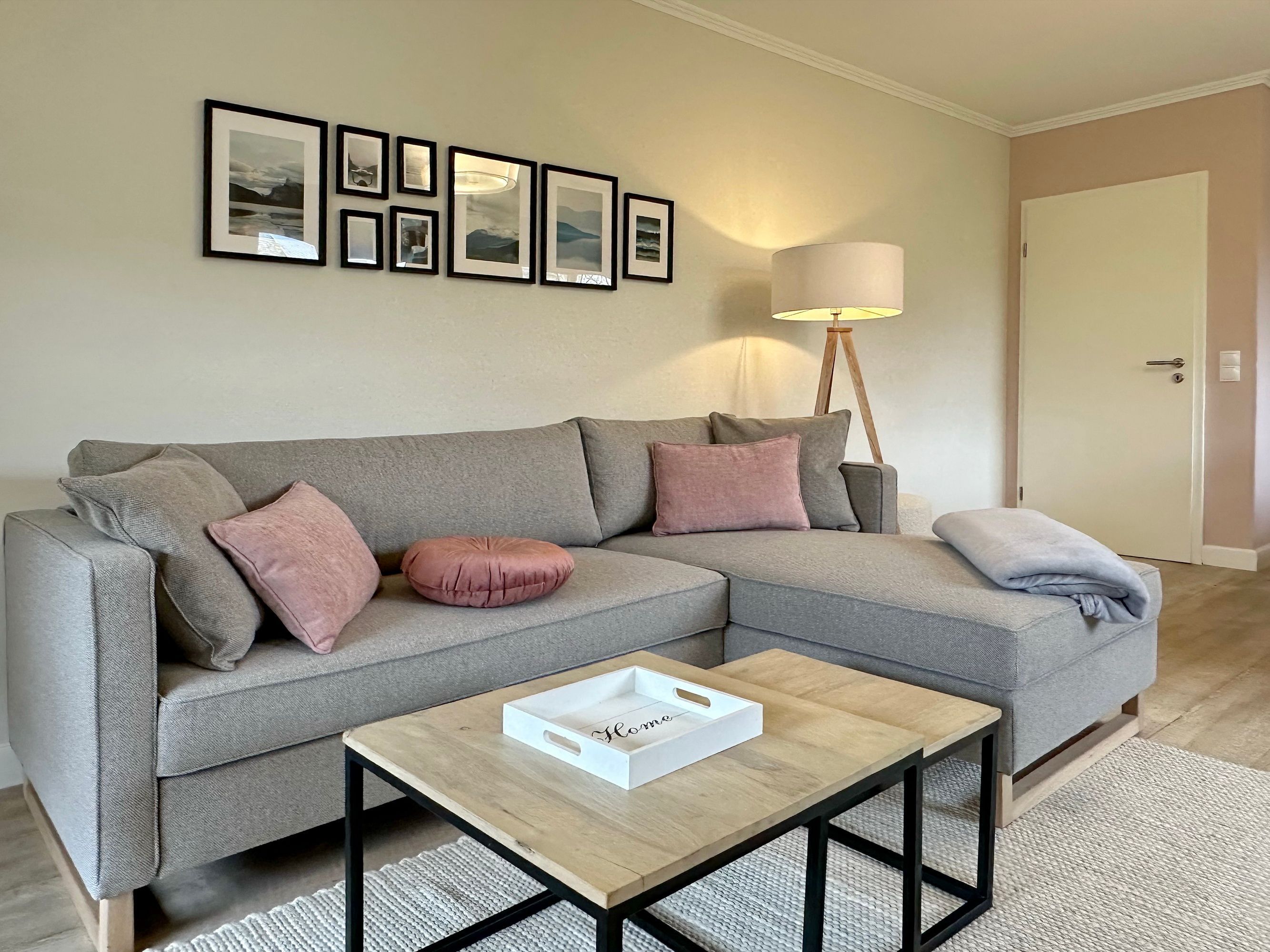 Großzügiges, sonniges und sehr schönes 3-Zimmer-Apartment im Haus Sinfonie. Ca. 90 m², Nichtraucher. EG/UG. EG: Wohnzimmer mit Eckgarnitur und Schlaffunktion (130x190), großer Essplatz für 6 Personen, Südterrasse und Garten, Strandkorb (Apr.-Okt.), Flat-TV, W-Lan (ohne Gewähr), separate Küche mit Geschirrspüler und Backofen, Gäste-WC, Diele/Garderobe. UG: großes Schlafzimmer mit Doppelbett (2x90x200), Flat-TV und begehbarem Kleiderschrank, Schlafzimmer mit Doppelbett (2x90x200) und Schrank, Duschbad/WC. Flur. Vom UG kommen Sie durch eine Zwischentür zur Sauna und zum Schwimmbadbereich. Waschmaschine und Trockner über Münzautomaten. Tierhaltung ist nicht gestattet. Bettwäsche und Handtücher sind zur Anreise aufgezogen!
