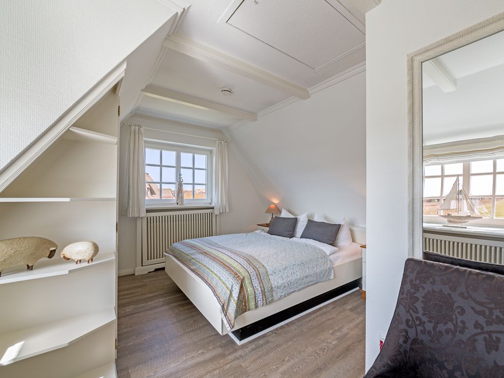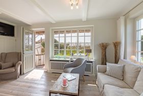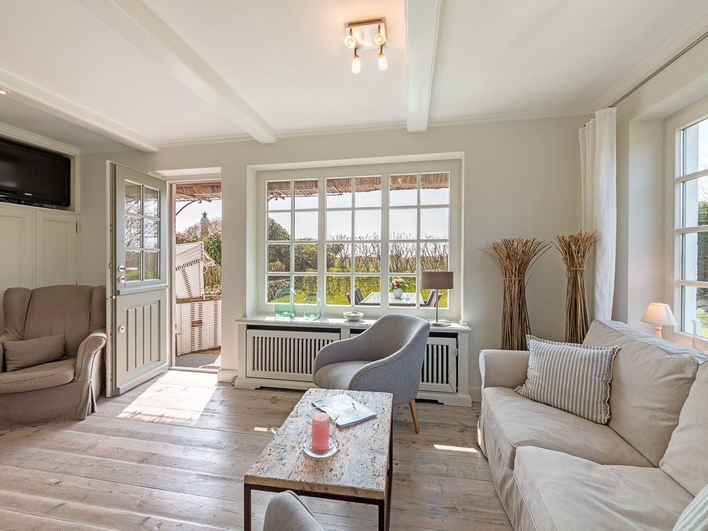 Über die Südterrasse gelangen Sie durch die typisch friesische Klöntür direkt in den gemütlich und offen gestalteten Wohn-Essbereich mit großen Fensterfront nach Süden. Die voll ausgestatteter Küchenzeile nebst Essplatz für Vier, Kachelofen und Sofa samt TV laden zum Verweilen ein. Im Obergeschoss erwartet Sie ein Doppelschlafzimmer mit raffinierten Einbauschränken und einem Wannenbad en suite. Von hier erfreut Sie der Ausblick gen Süden vorbei am Kampener Leuchtturm Langer Christian bis nach Wenningstedt. Das Untergeschoss hält ein weiteres Doppelschlafzimmer mit Tageslicht, TV und großem Kleiderschrank, sowie ein Duschbad samt Waschtrockner bereit. Das gesamte Quartier ist mit Natursteinböden und Böden in Holzoptik ausgestattet. Ein durch und durch gemütliches Heim für entspannte Urlaube.