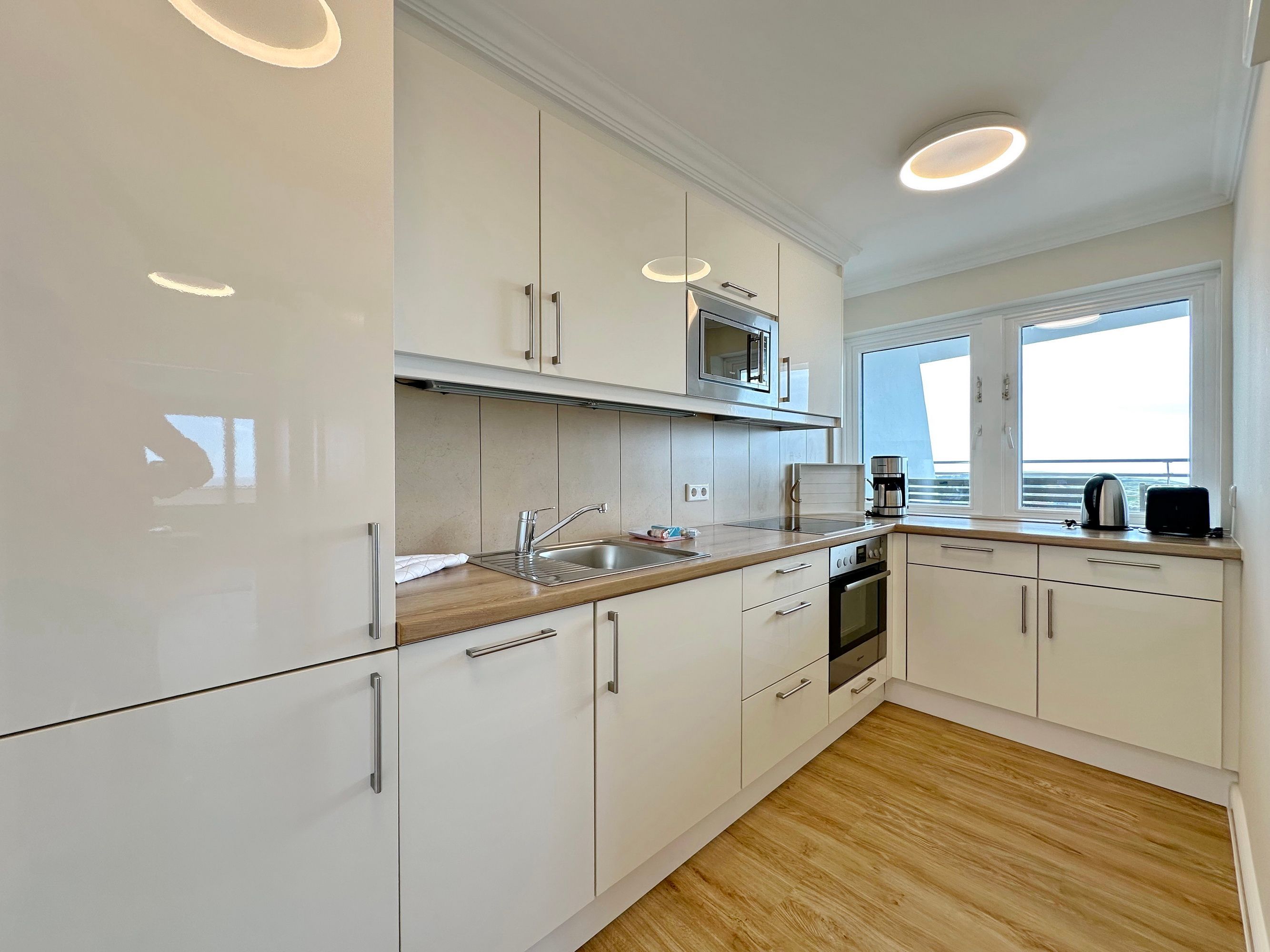 Exklusives 3-Zimmer-Apartment im 13.OG des Haus Metropol mit einem Süd- und 2 Westbalkonen. Genießen Sie einen Traumblick auf das Meer und die Dünenkette, ca. 88 m² Nichtraucher. Wohn- und Schlafräume sind mit Böden in Holzoptik ausgelegt. Wohnzimmer mit großer Sitzecke sowie TV und Stereoanlage. W-Lan (ohne Gewähr) 1 Schlafzimmer mit Doppelbett, Kleiderschrank, Flat-TV, Westbalkon und Bad ensuite. 1 kleines Schlafzimmer mit 2 Einzelbetten und TV, separates Duschbad/ WC. Separate Küche mit Backofen und Geschirrspüler. Tierhaltung und Rauchen ist nicht gestattet. Der dazugehörige Garagen-Stellplatz (Nr. 108) kann bei Buchungsabschluss zu Euro 15,--/Nacht gebucht werden. Waschküche und Fahrradkeller befinden sich im Haus. Bettwäsche und Handtücher sind zur Anreise aufgezogen.