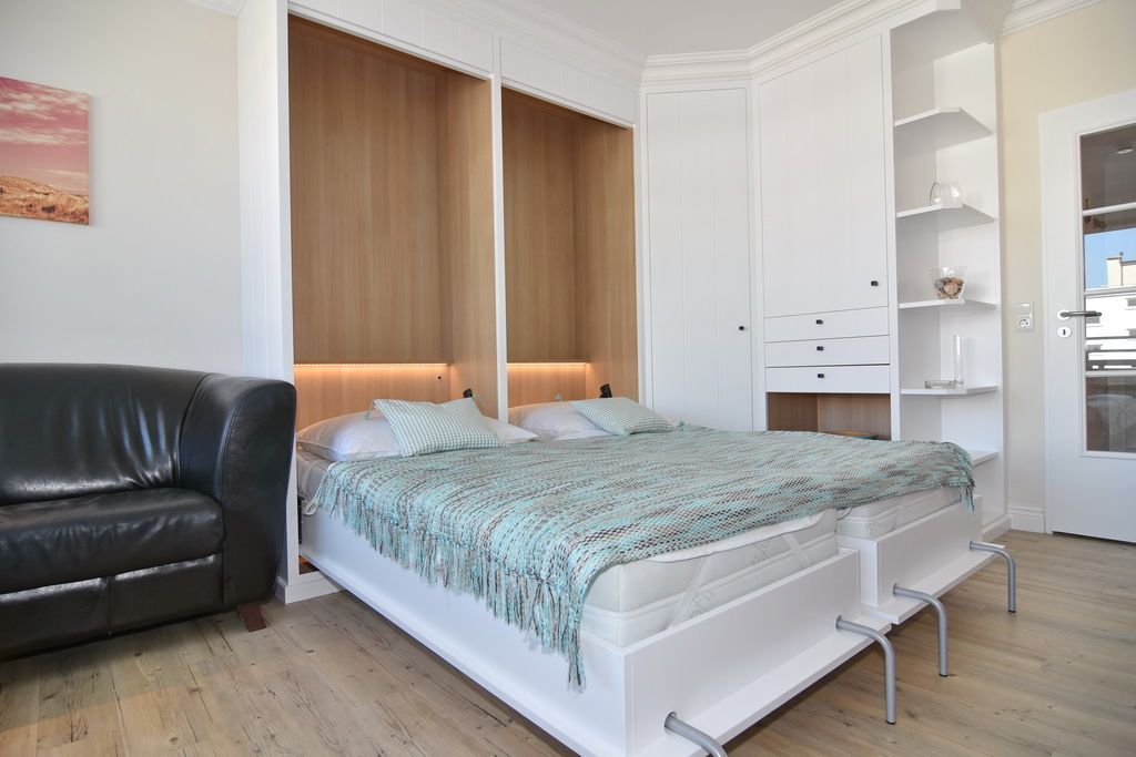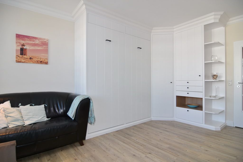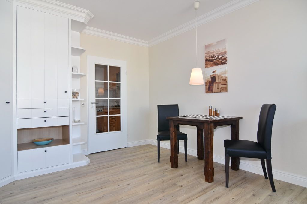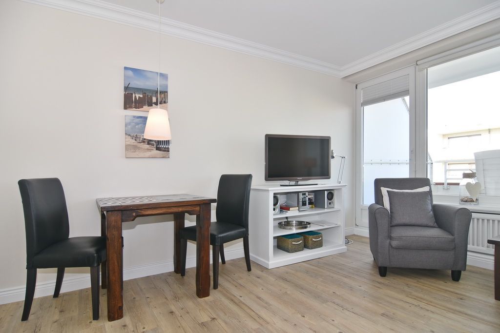 Mitten im Herzen von Westerland und nur wenige Minuten vom Strand entfernt, hat diese hübsche 1-Zimmer-Wohnung die perfekte Ausgangslage zur Erkundung der Insel. Die Wohnung hat einen Wohn-/Schlafraum mit großem Nordbalkon, Einzelschrankbetten ( 2 Matratzen je 80x200 ), Sitz- und Essgruppe, Flat-TV, W-Lan (ohne Gewähr) und einen Kleiderschrank. Eine Küchenzeile im Flurbereich mit Geschirrspüler und Mikrowelle und ein modernes Duschbad / WC runden das Angebot ab. Tierhaltung und Rauchen sind in der Wohnung nicht gestattet. Im Haus befindet sich eine Waschküche mit Münz-Waschmaschine und -trockner. Zur Wohnung gehört der Garagenstellplatz Nr. 128 (Zufahrt von der Elisabethstr.). Bettwäsche und Handtücher sind zur Anreise aufgezogen.