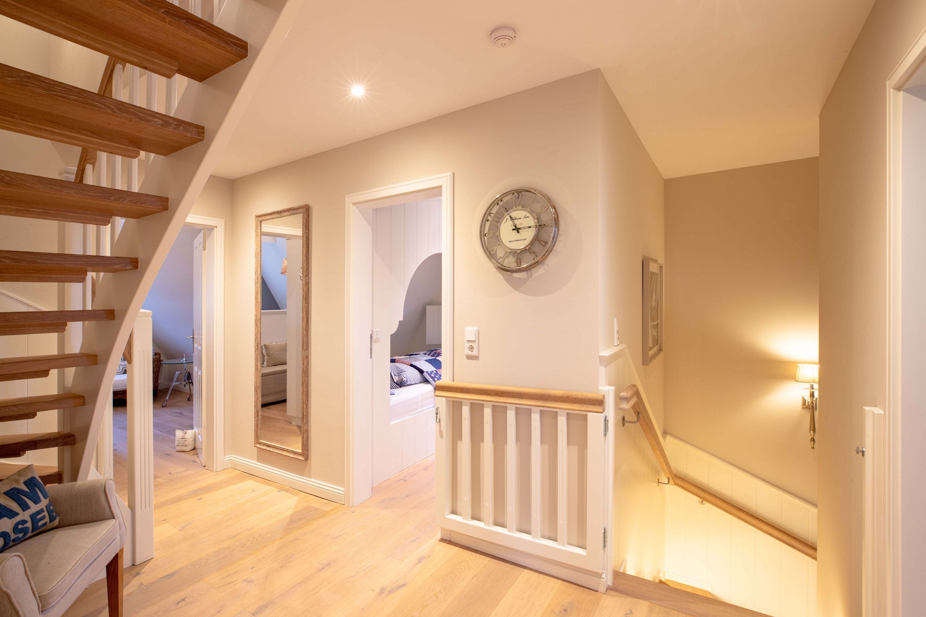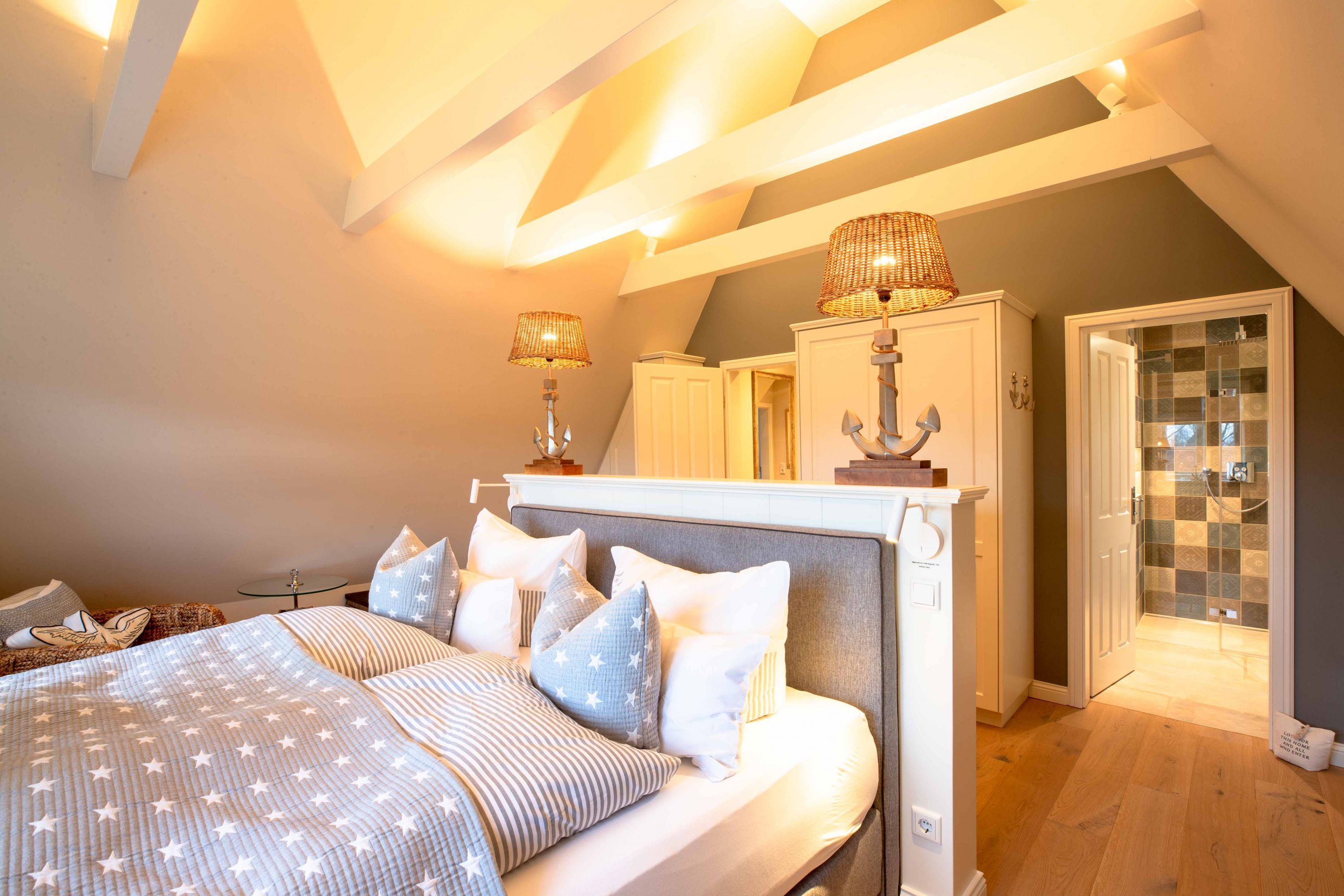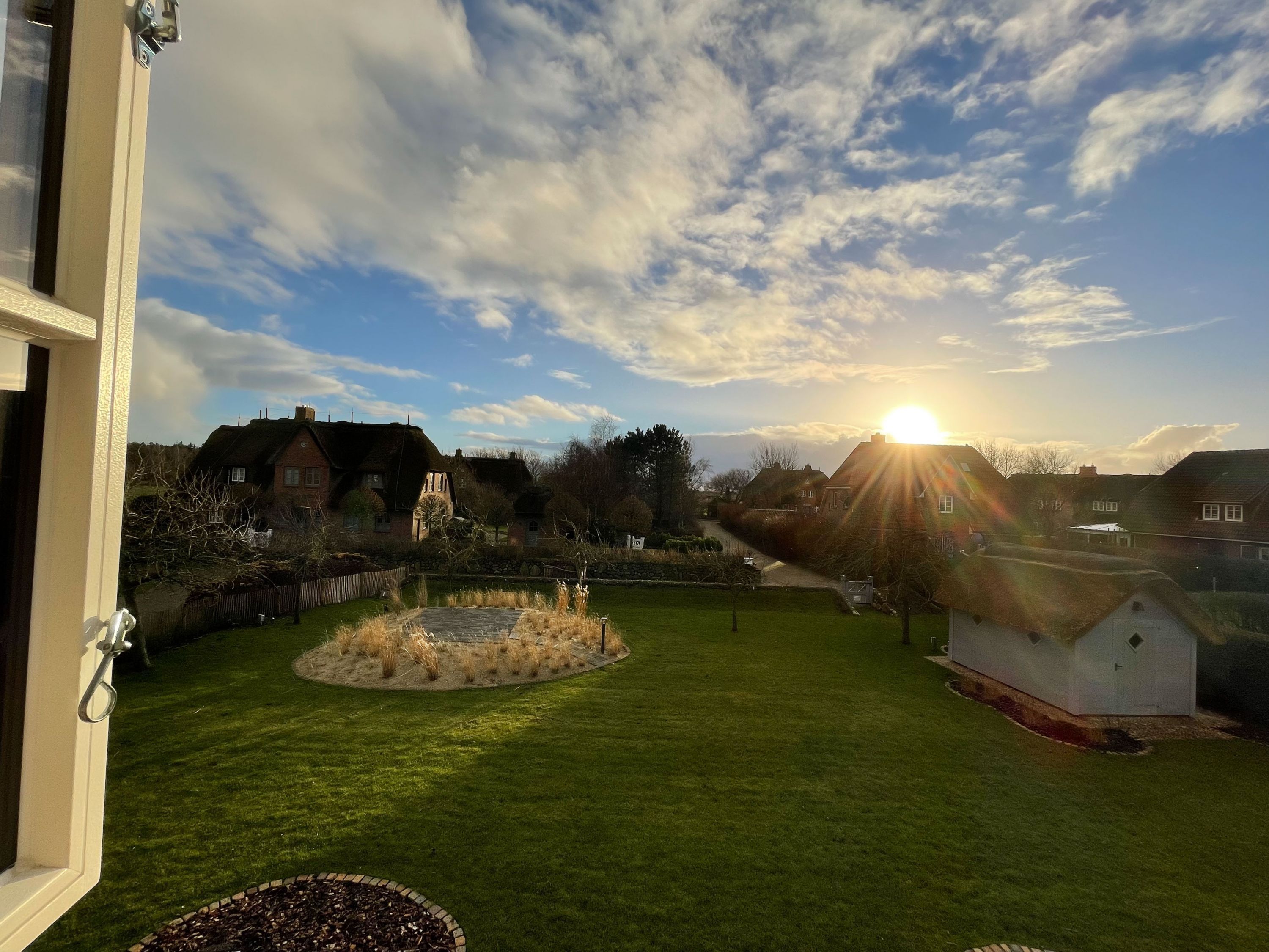 Herzlich willkommen im wunderschönen Reethüs Mare Royal. Sie werden vom Haus und von der Lage in Nieblum-Goting begeistert sein. Mit viel Liebe zum Detail und toller Architektur wurde das Haus gebaut und hergerichtet. Der lichtdurchflutete Wohn- Essbereich mit offener Küche, Mylin Kachelofen und gemütlicher Leseecke läßt keine Wünsche offen. Die Schlafräume befinden sich im Obergeschoss. Der Masterbedroom mit Bad en suite läßt Träume wahr werden. Ein weiterer Doppelbettschlafraum und ein maritimes Kinderzimmer mit Alkovenbetten teilen sich ein Bad im Obergeschoss. Ihren persönlichen Wellnessbereich mit Sauna und Relaxzone erreichen Sie über eine Treppe in das Dachgeschoss. Der wunderschöne Garten und die beiden Terrassen laden schon morgens dazu ein, den Tag draussen zu starten. Der Weg zum nahe gelegenen Gotinger Strand ist in 3 Minuten mit dem Fahrrad zu erreichen - zu Fuß in gut 10 Minuten. Wenn Sie das Besondere suchen und Gemütlichkeit mit Qualität auf ihrem Wunschzettel steht, ist das Mare Royal genau Ihr Urlaubsdomizil.