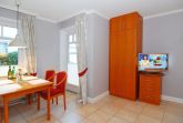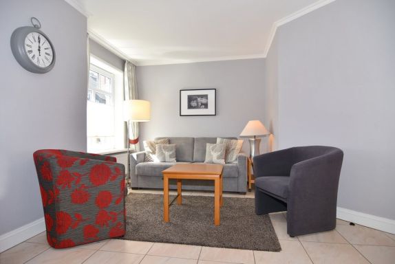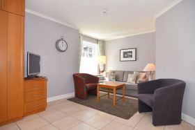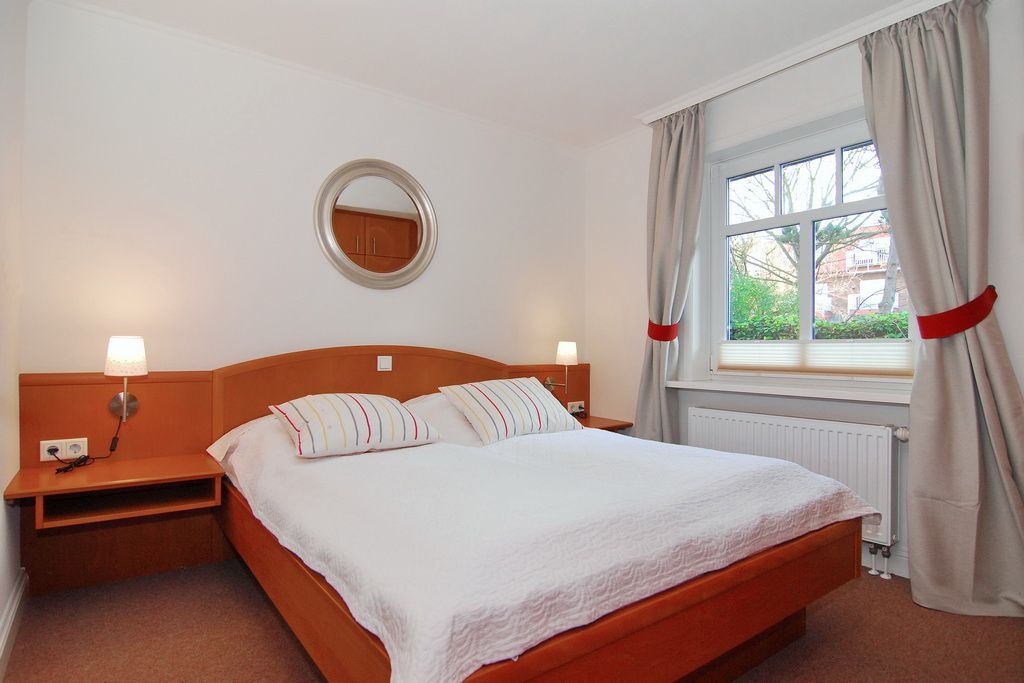 Hübsche 2-Zimmer-Ferienwohnung im Haus Olympia IV mit sonniger Südostterrasse, Strandkorb (Apr.-Okt.). Ca. 50m². Nichtraucherwohnung. EG: Wohnzimmer mit Küchenzeile mit Geschirrspüler und Backofen, Doppelschlafcouch und Essplatz für 4 Personen, Duschbad/WC, Schlafzimmer mit Doppelbett, Flur mit Garderobe, Kabel-TV und Radio. Unter Haus 4 befindet sich das Schwimmbad mit Finnischer Sauna. Unter Haus 2 befindet sich ein separater Wellnessbereich mit Dampfsauna, Finnischer Sauna und Ruhebereich. Eine Waschküche mit Gemeinschaftswaschmaschine/Trockner ist vorhanden. Offenes W-LAN-Netzwerk steht zur Verfügung (ohne Gewähr). Bettwäsche und Handtücher sind zur Anreise aufgezogen. Ein Garagenstellplatz kann kostenpflichtig gebucht werden!