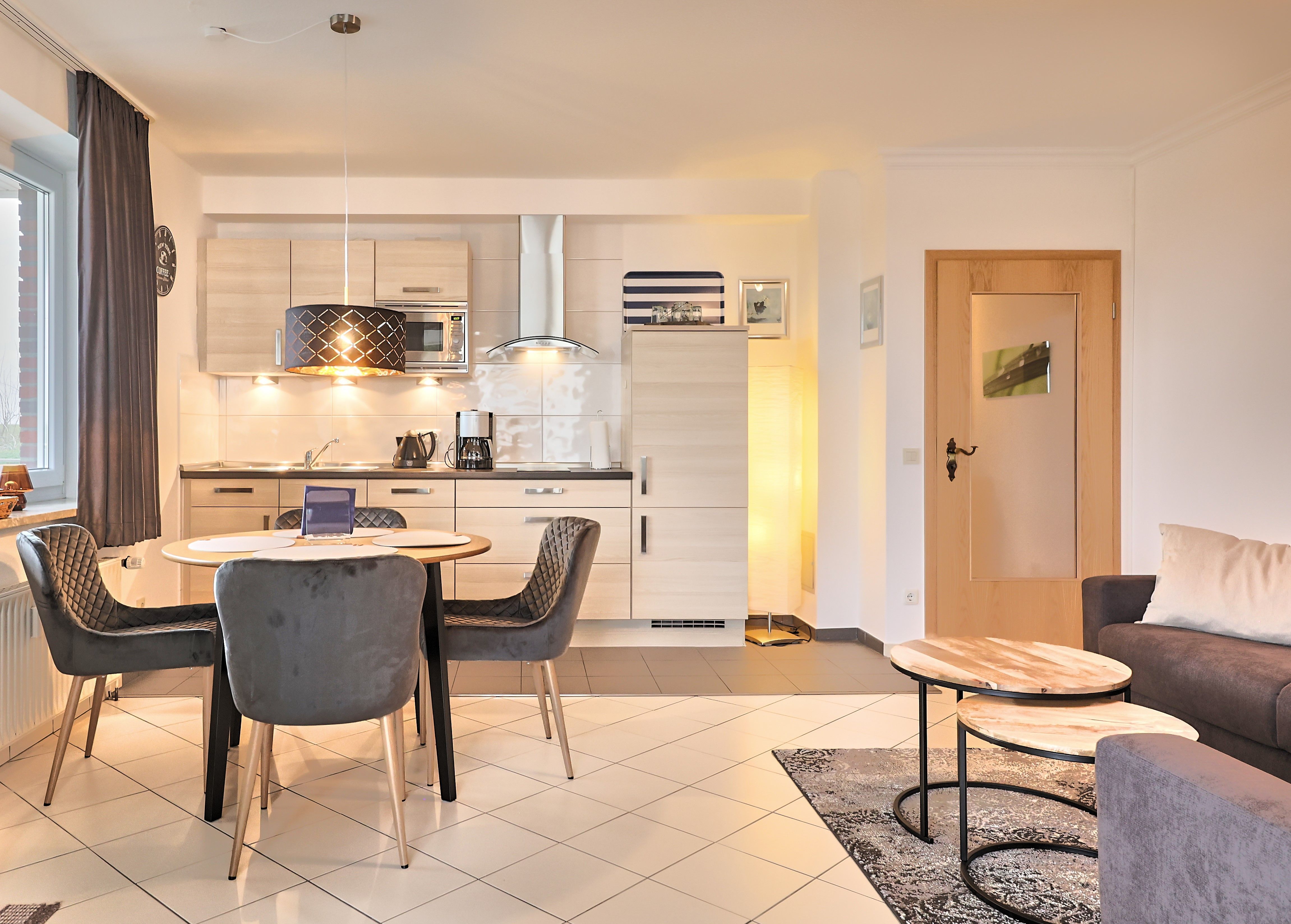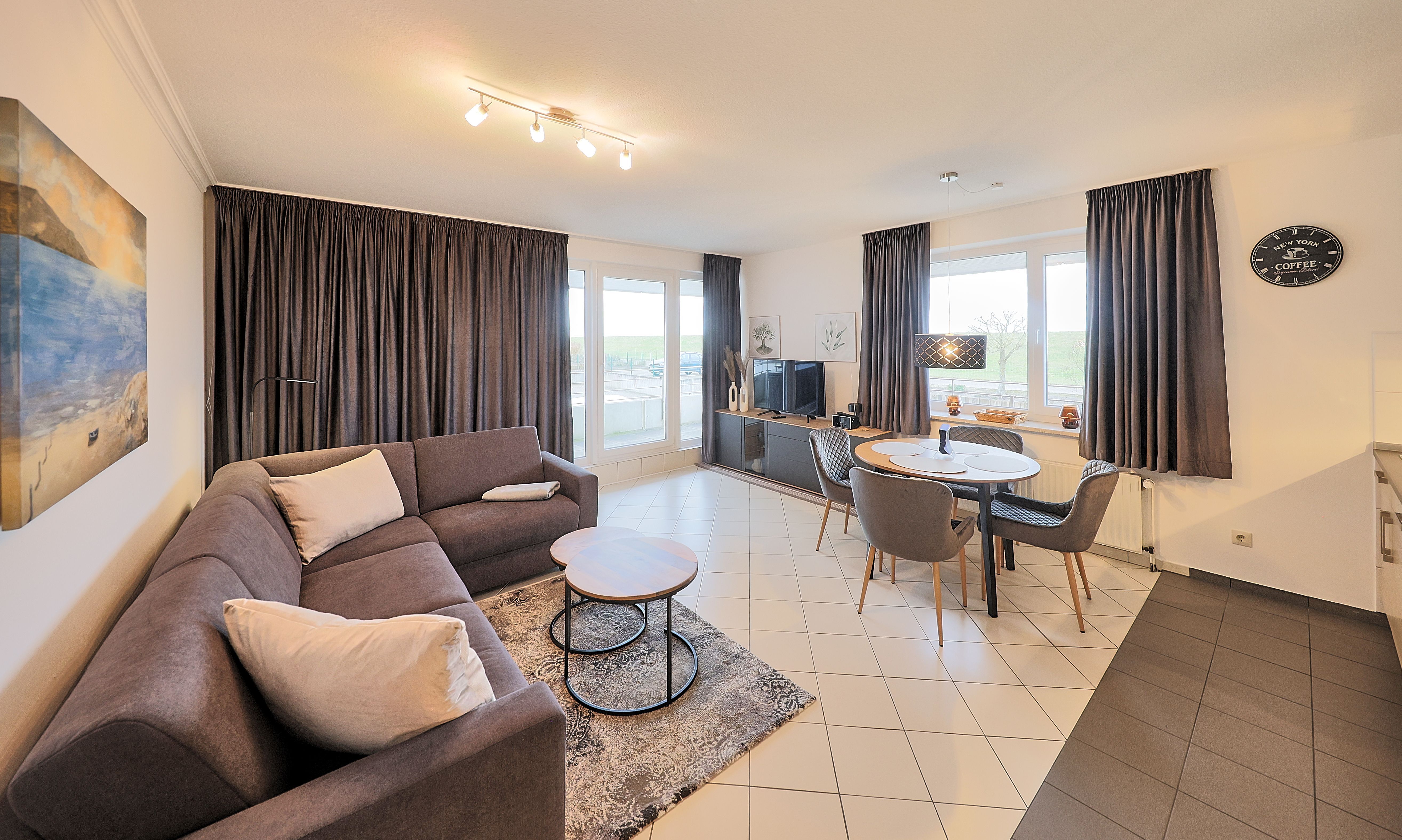 Direkt hinter dem Deich, mit Weitblick zum Horizont der Nordsee Ihre Ferienwohnung in der Residenz Naturdüne bietet die ideale Mischung aus Erholung und Komfort und Wellness. Gelegen in der 1. Etage, bequem erreichbar mit dem Fahrstuhl, erwartet Sie eine gemütliche Wohnung mit einer Auffrischung der Möbel im Wohn-, Ess- und Küchenbereich. Der nahegelegene PKW-Stellplatz, direkt am Haus sorgt für einen stressfreien Start in den Urlaub. Das mit Tageslicht versehene Duschbad mit WC ist mit einer flachen Duschwanne ausgestattet.