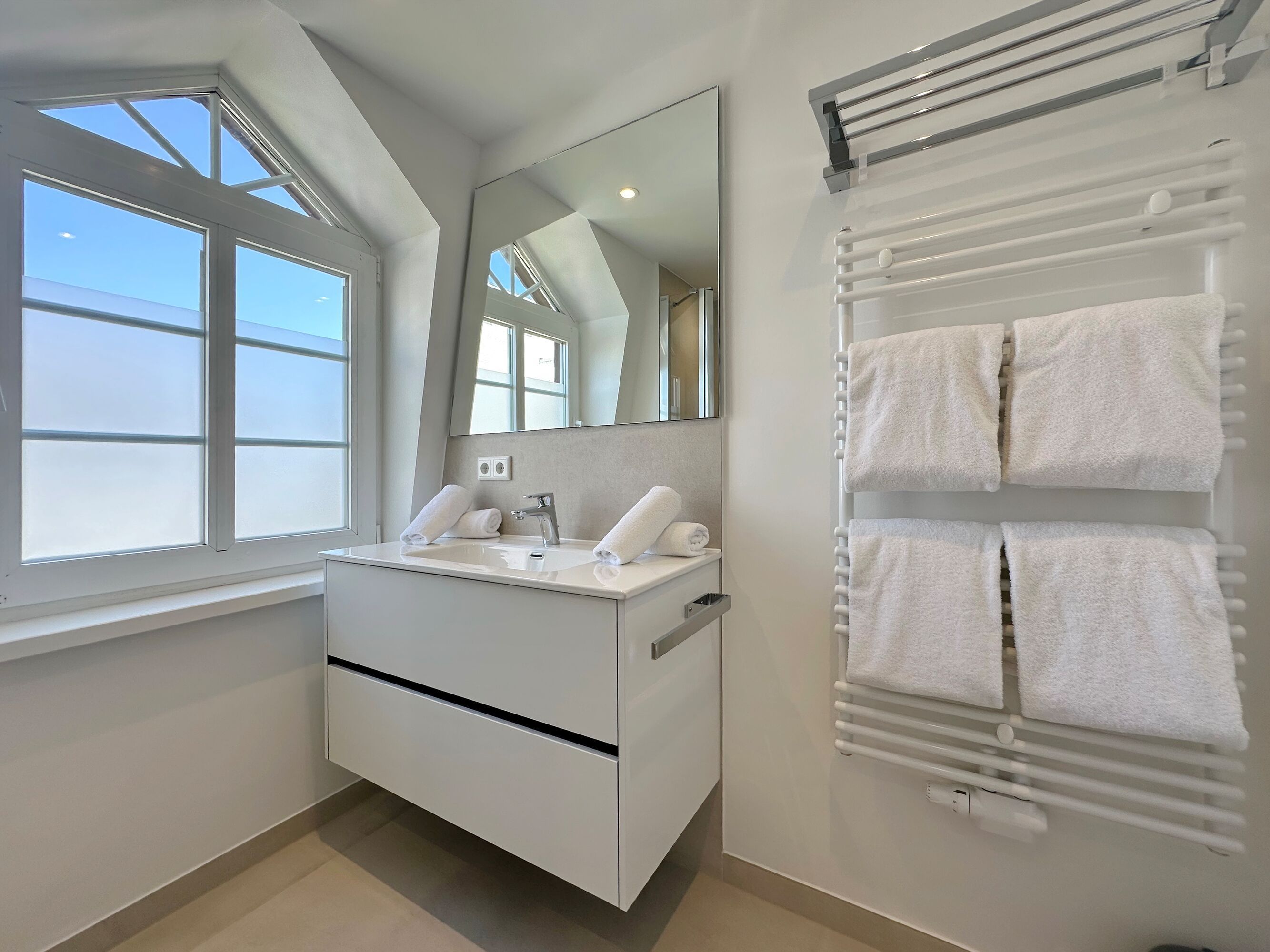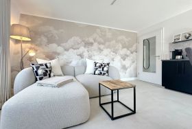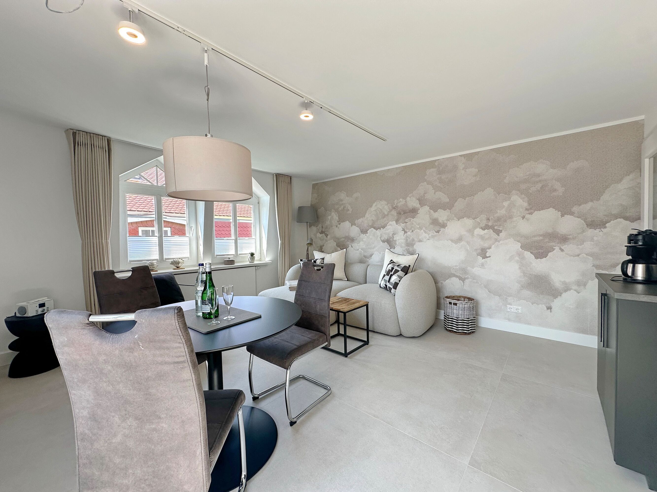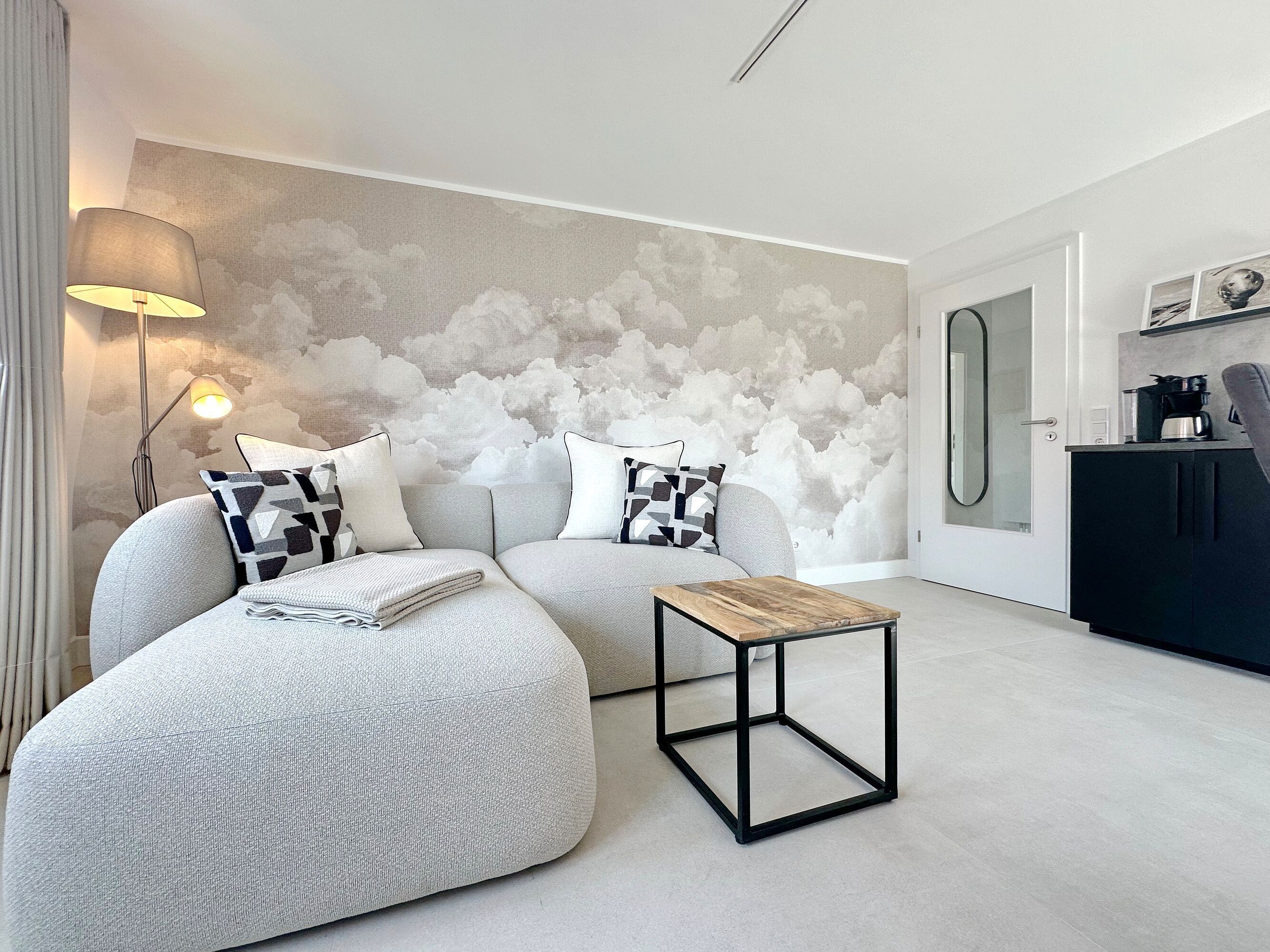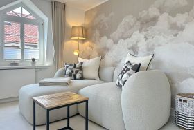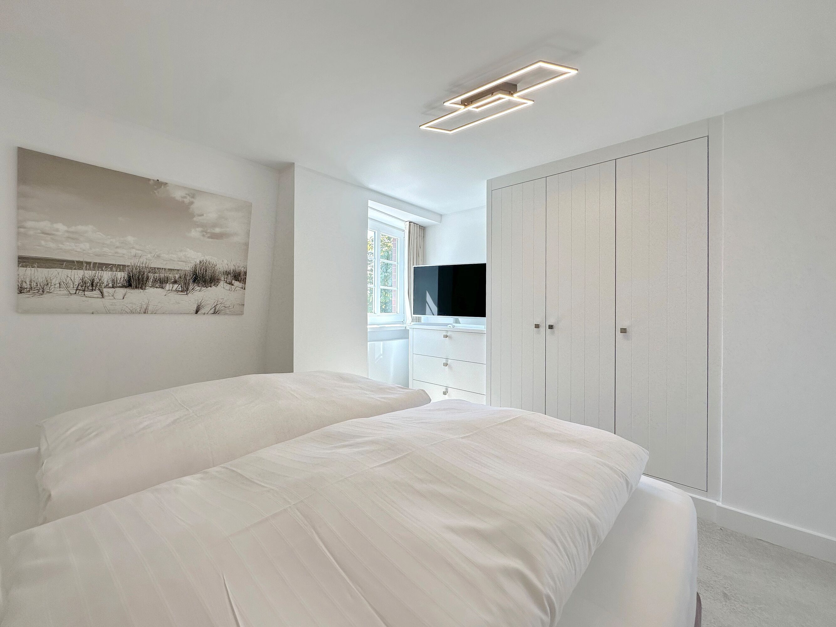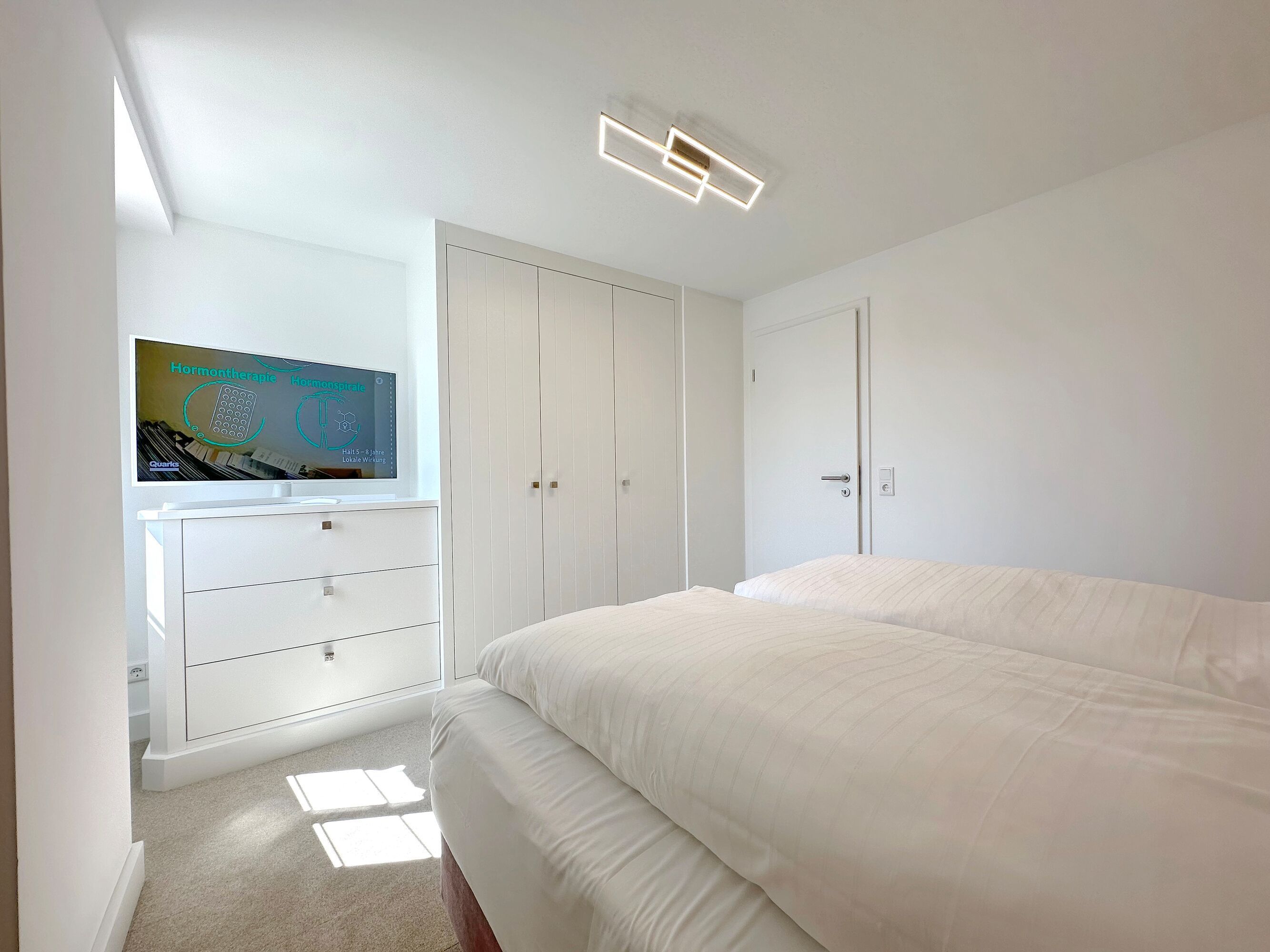 Geschmackvoll eingerichtete 2-Zimmer-Ferienwohnung im Haus Olympia 2 mit Ostbalkon. Nichtraucherwohnung. Ca. 43m² im 1. Obergeschoß. Wohnzimmer mit offener Küche mit Induktionsherd, Geschirrspüler und Mikrowelle-Backofen-Kombination, Essplatz, 2-Sitzer-Couch mit Schlaffunktion, 2 Sessel, Flat-TV und Radio, Schlafzimmer mit Doppelbett, Duschbad/WC, Flur. Tierhaltung nicht gestattet. Unter Haus 4 befindet sich das Schwimmbad mit Finnischer Sauna. Unter Haus 2 befindet sich ein separater Wellnessbereich mit Dampfsauna, Finnischer Sauna und Ruhebereich. Eine Waschküche mit Gemeinschaftswaschmaschine/Trockner ist vorhanden. Offenes W-LAN-Netzwerk steht zur Verfügung (ohne Gewähr). Bettwäsche und Handtücher sind zur Anreise aufgezogen. Ein Garagenstellplatz kann kostenpflichtig gebucht werden!
