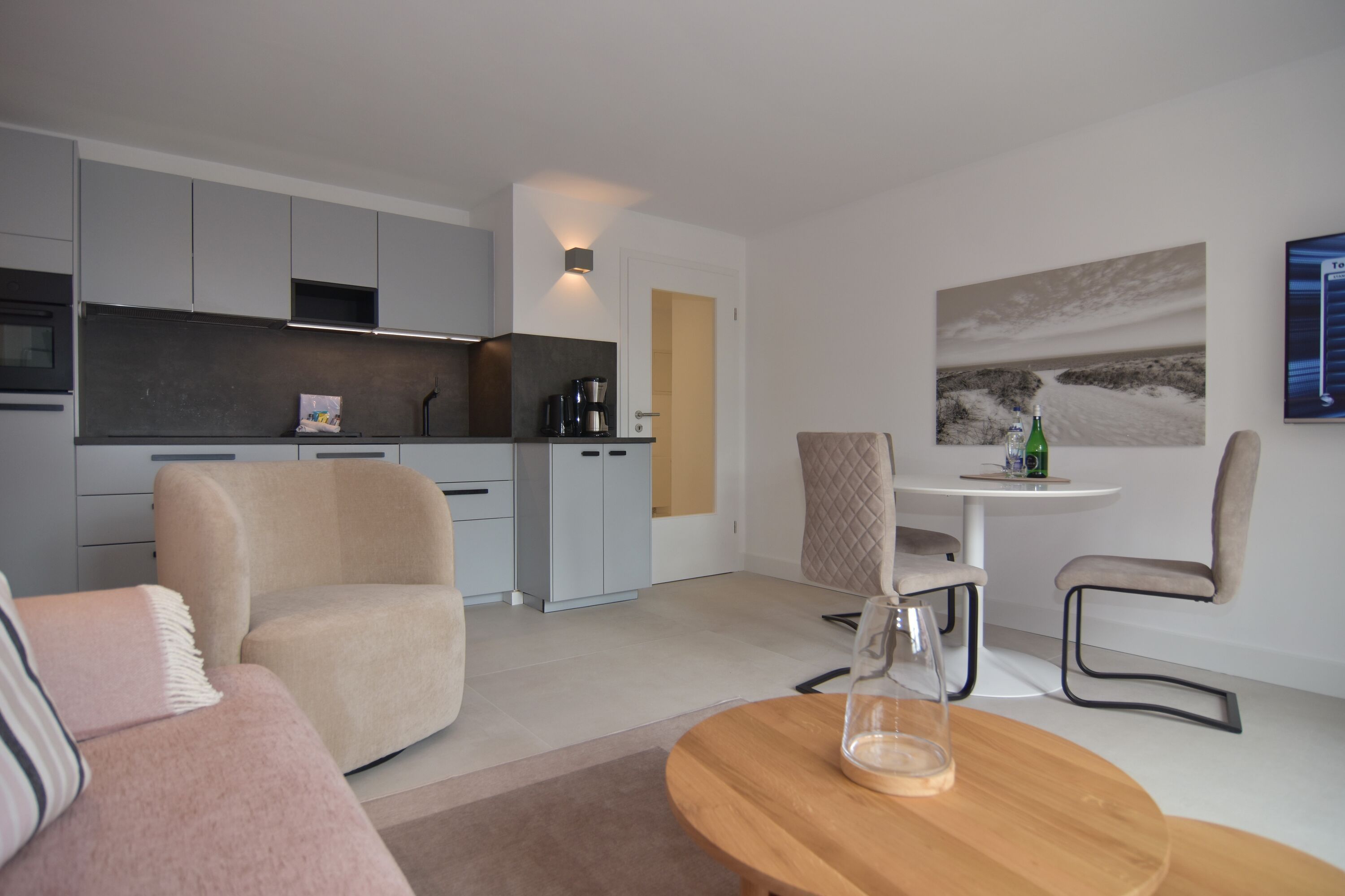 Geschmackvoll eingerichtete 2-Zimmer-Ferienwohnung im Haus Olympia 2 mit Südbalkon. Nichtraucherwohnung. Ca. 43m² im 1. Obergeschoß. Wohnzimmer mit Küchenzeile mit Induktionsherd, Geschirrspüler und Mikrowelle mit Grillfunktion, Essplatz, 2-Sitzer-Couch, 2 Korbsessel, Flat-TV und Radio, Schlafzimmer mit Doppelbett und Einbauschrank, Duschbad/WC, Flur. Tierhaltung nicht gestattet. Unter Haus 4 befindet sich das Schwimmbad mit Finnischer Sauna. Unter Haus 2 befindet sich ein separater Wellnessbereich mit Dampfsauna, Finnischer Sauna und Ruhebereich. Eine Waschküche mit Gemeinschaftswaschmaschine/Trockner ist vorhanden. Offenes W-LAN-Netzwerk steht zur Verfügung (ohne Gewähr). Bettwäsche und Handtücher sind zur Anreise aufgezogen. Ein Garagenstellplatz kann kostenpflichtig gebucht werden!