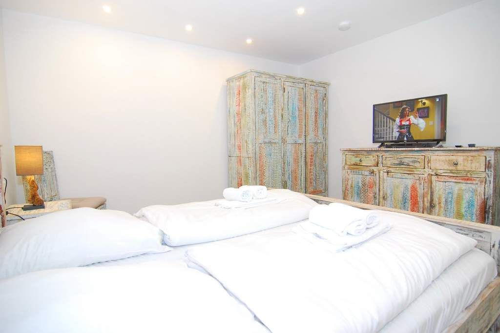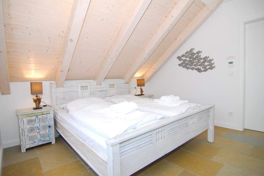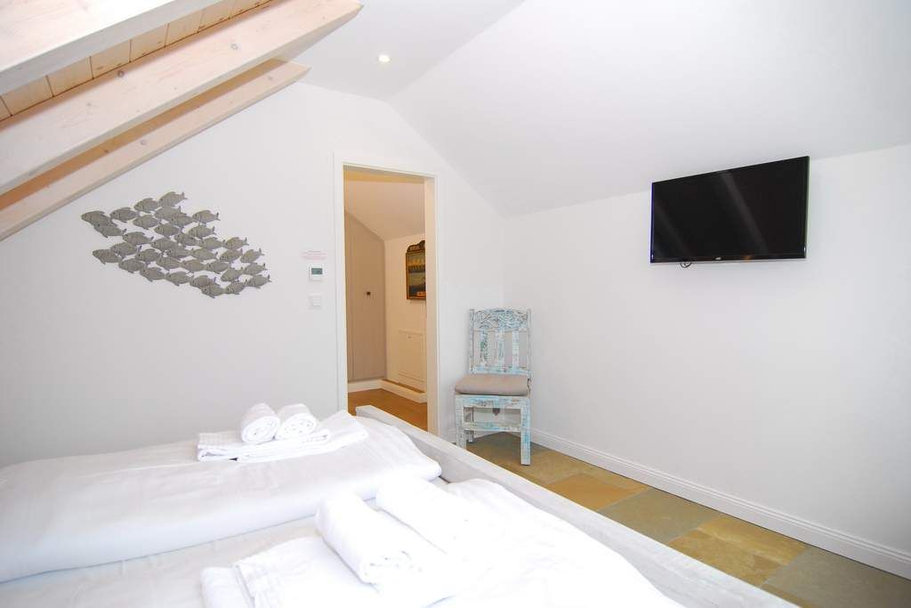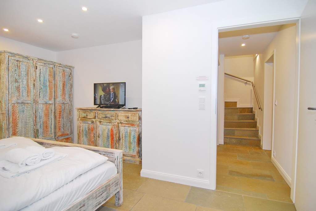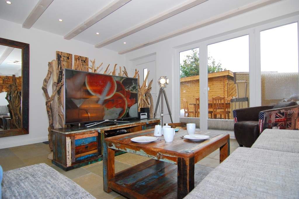 Die moderne Haushälfte liegt im Süden Westerlands in herrlich ruhiger Lage. Von hier aus sind es nur wenige Schritte in die Wiesen. Zum Strand und in die Innenstadt sind es ca. 1500m. Das Haus wurde im Sommer 2017 fertiggestellt und verfügt über insgesamt 3 Schlafzimmer jeweils mit Doppelbetten und TV. Ein Schlafzimmer befindet sich im Obergeschoss, die zwei weiteren im UG des Hauses. Der moderne und helle Wohnbereich bietet eine großzügige Einbauküche mit Backofen, Geschirrspüler und Mikrowelle, einen Essplatz für 6 Personen und eine gemütliche Sitzecke mit Flat-TV und Blue-Ray-Player, W-LAN (ohne Gewähr). Safe (Schlüssel erhalten Sie im Büro). Im Erdgeschoss steht Ihnen ein Gäste-WC zur Verfügung, im Obergeschoss ein Bad mit Wanne und Dusche und im Untergeschoss ein Duschbad/WC mit finnischer Sauna. Das Haus ist familienfreundlich ausgestattet, sämtliche Steckdosen sind mit Kindersicherungen versehen, an den Treppenauf- bzw. abgängen befinden sich Treppenschutzgitter. Waschmaschine und Trockner sind vorhanden. Sämtliche Räume sind gefliest und mit Fußbodenheizung versehen. Eine große möblierte Südterrasse, mit Sonnenschirm, bietet Ihnen Platz an sonnigen Tagen. Das Grundstück kann mit einer Gartenpforte geschlossen werden. Tierhaltung ist nach Anmeldung und gegen Aufpreis gestattet. Parkplatz mit Wallbox/E-Ladestation (5,-/Tag/Karte bei RR - kann nur für den geamten Aufenthalt gebucht werden !) am Haus. Bettwäsche und Handtücher sind zur Anreise aufgezogen.