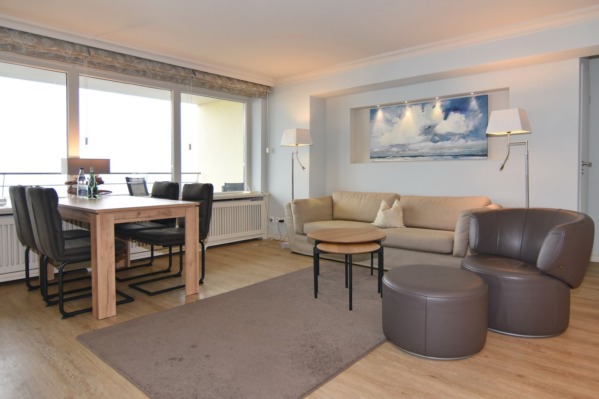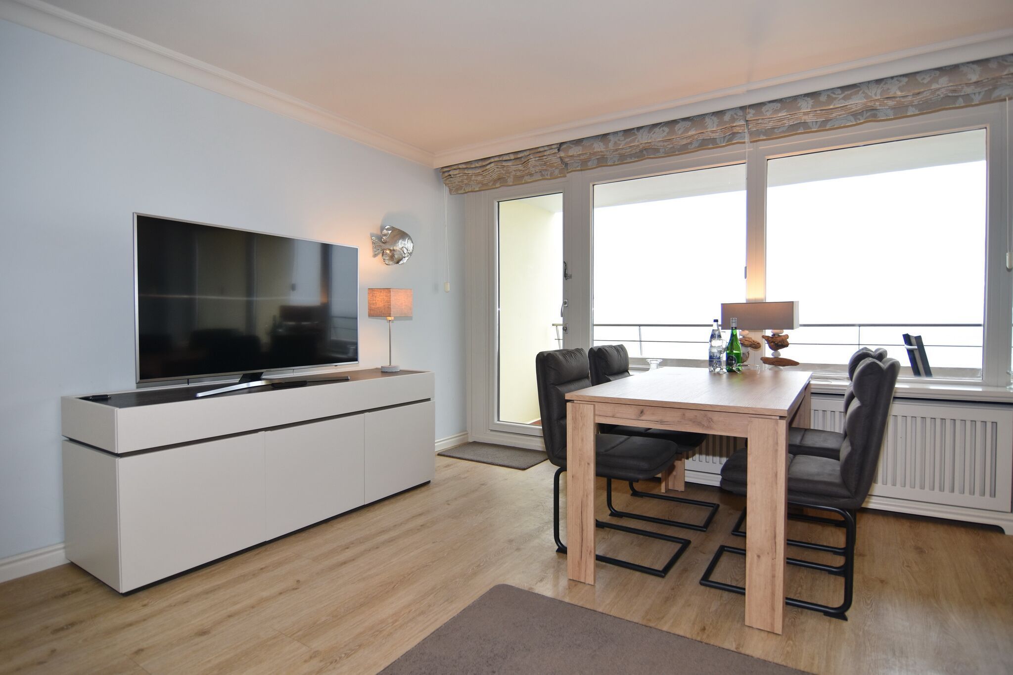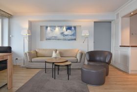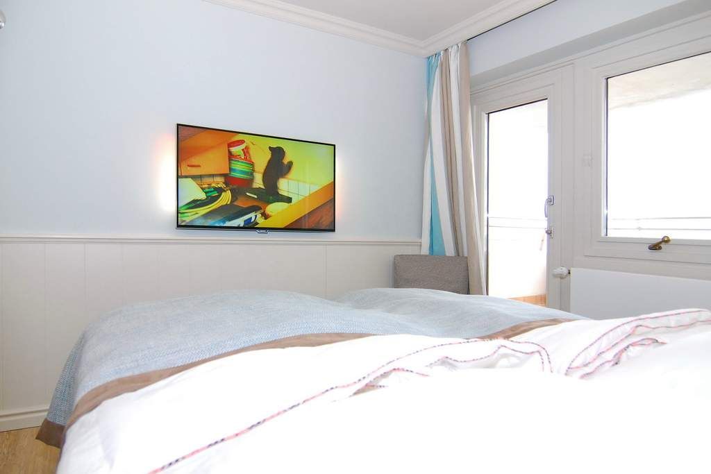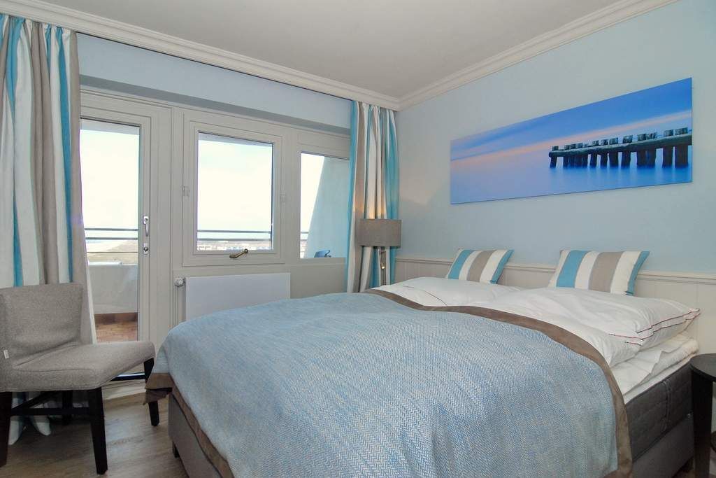 Exklusives 3-Zimmer-Apartment im Haus Metropol im 5.OG mit traumhaften Blick auf die Nordsee und über den Dünenkamm. Nichtraucher-Appartement! Wohnzimmer mit Sitzecke und Essplatz am Fenster mit Blick auf das Meer, Flat-TV mit Radio, W-Lan (ohne Gewähr), West- und Nordbalkon mit Balkonmöbeln, offene Küche mit Geschirrspüler und Mikrowelle/Backofen, Schlafzimmer mit Boxspringbett (180x200 ) und Flat-TV, Westbalkon und Duschbad ensuite, Schlafzimmer mit Boxspringbett (160x200 ), Flat-TV und Nordbalkon, Duschbad/WC. Das Wohnzimmer ist mit Designer-Fußboden ausgelegt. Tierhaltung ist nicht gestattet. Bettwäsche und Handtücher sind zur Anreise aufgezogen. Ein PKW-Stellplatz kann kostenpflichtig zugebucht werden.