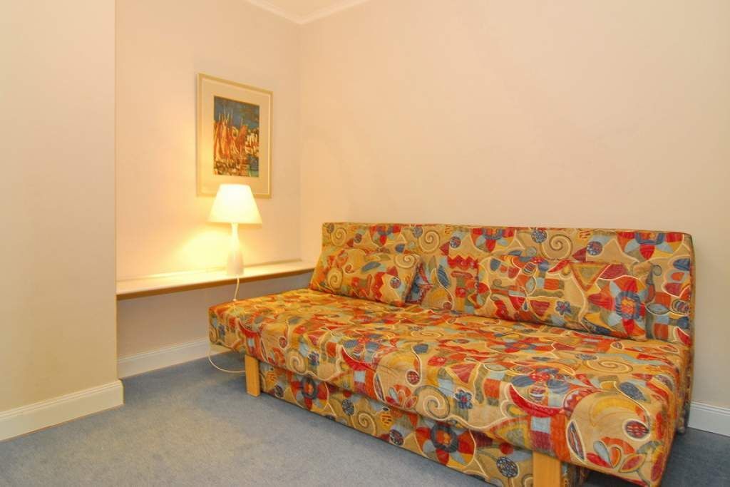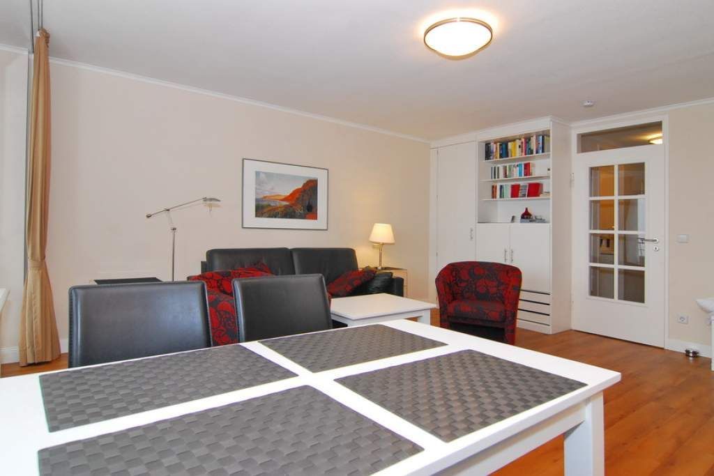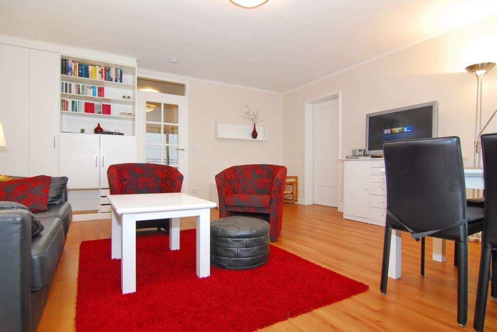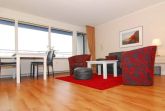 2,5 Zimmer-Ferienwohnung, ca. 68m², 6. OG, zur Seeseite im Haus Sylter Welle. Nichtraucher-Whg.! Wohnzimmer mit Dekorboden, Sitzecke mit Schlafcouch, Essplatz, Flat-TV, W-LAN (ohne Gewähr), Telefon (Festnetzflatrate), Westbalkon mit freier Sicht auf Strand und Meer, separates Schlafzimmer mit Doppelbett (2x2m), Einbauschrank und Westbalkon. Vom Schlafzimmer aus geht es in ein weiteres innenliegendes Zimmer mit Schlafcouch. Modernes Duschbad/WC, separate Küche mit Geschirrspüler und Mikrowelle. PKW-Stellplatz/Garage kann kostenpflichtig gebucht werden. Bettwäsche und Handtücher sind zur Anreise aufgezogen. Tierhaltung ist nicht gestattet!