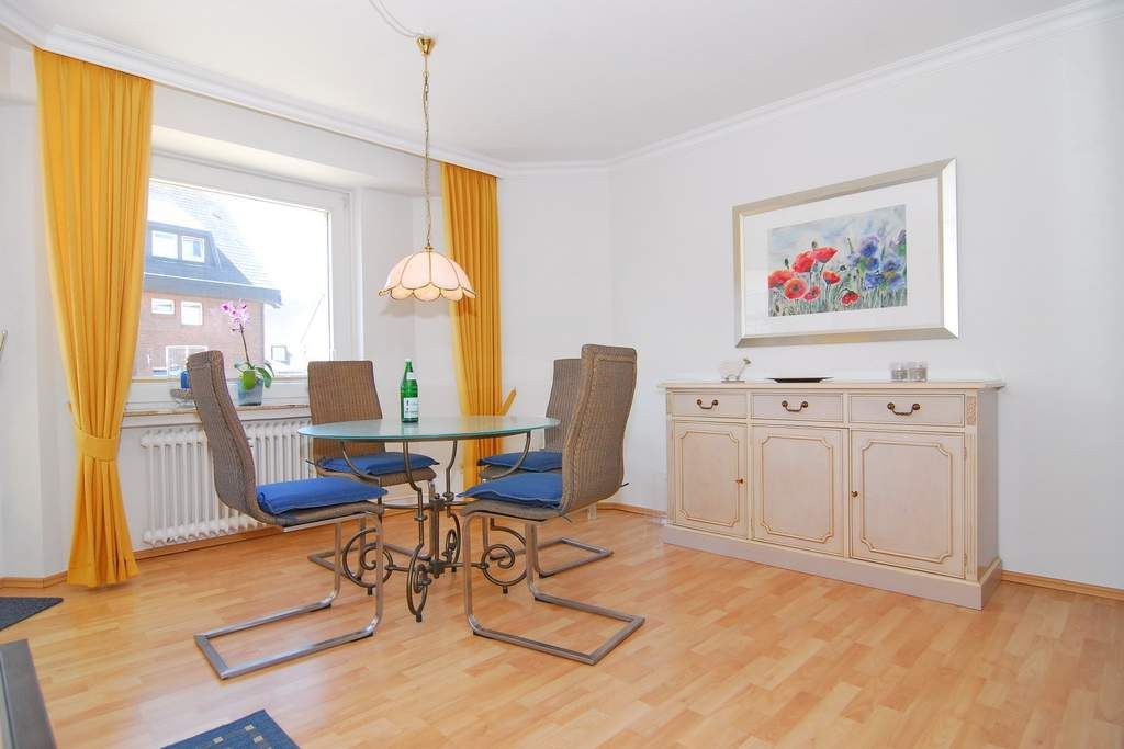 Hübsche Ferienwohnung im Haus Undine, ca. 52m², Hochparterre, ca. 400 m zum Strand. Nichtraucher-Wohnung! Wohnzimmer mit gemütlicher Couchecke, Glastisch, Eßtisch, Flat-TV, DVD-Player, Telefon und Internet-Flatrate,Stereoanlage, Westbalkon, Schlafzimmer mit Doppelbett (2 x 90 x 200 cm), Kommode und Einbauschrank, separate Küche mit Backofen und Geschirrspüler, Duschbad/WC. Waschmaschine und -trockner. Laminat-Fußboden. Bettwäsche und Handtücher können kostenpflichtig hinzugebucht werden. Einzelgarage Nr. 34 vorhanden, Parken auf eigene Gefahr. Tierhaltung ist nicht gestattet.