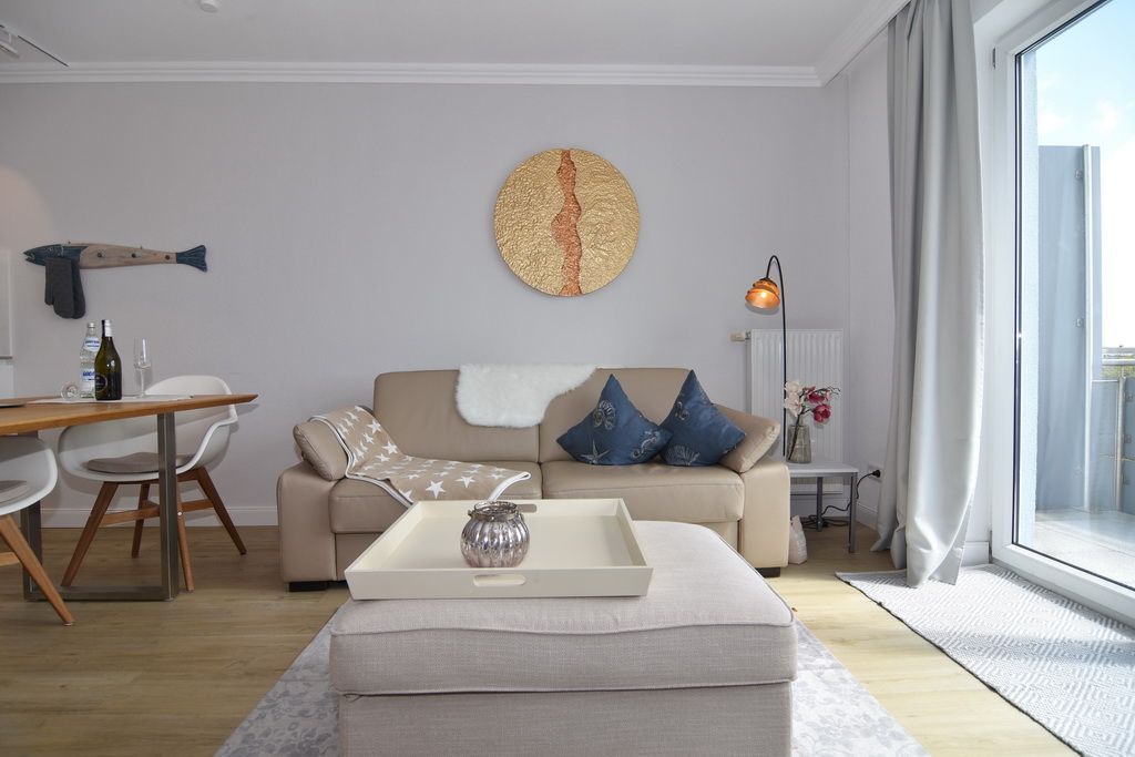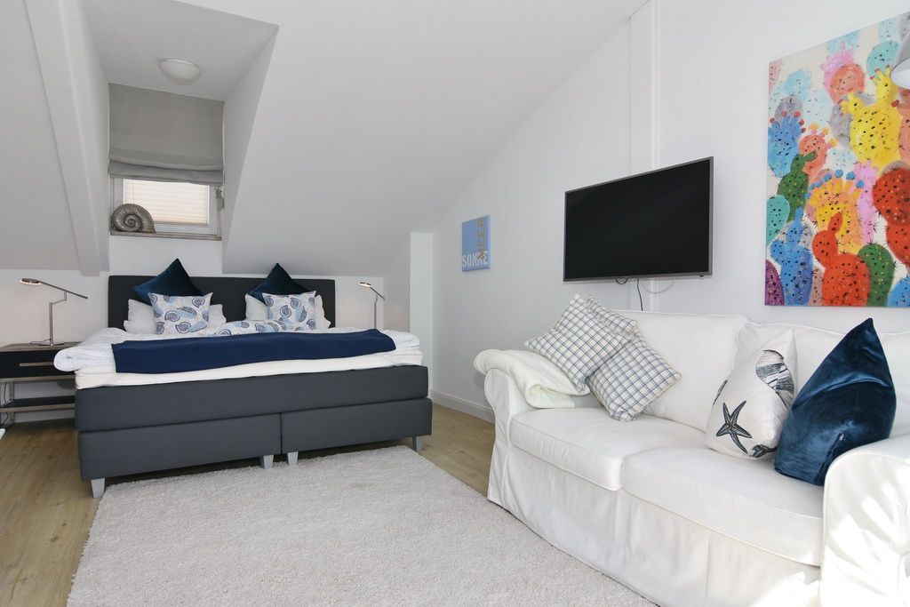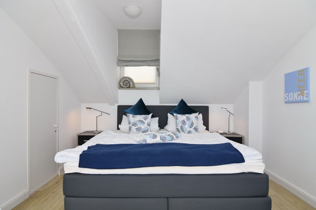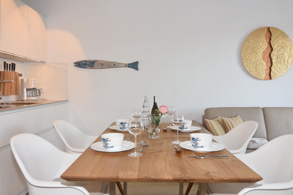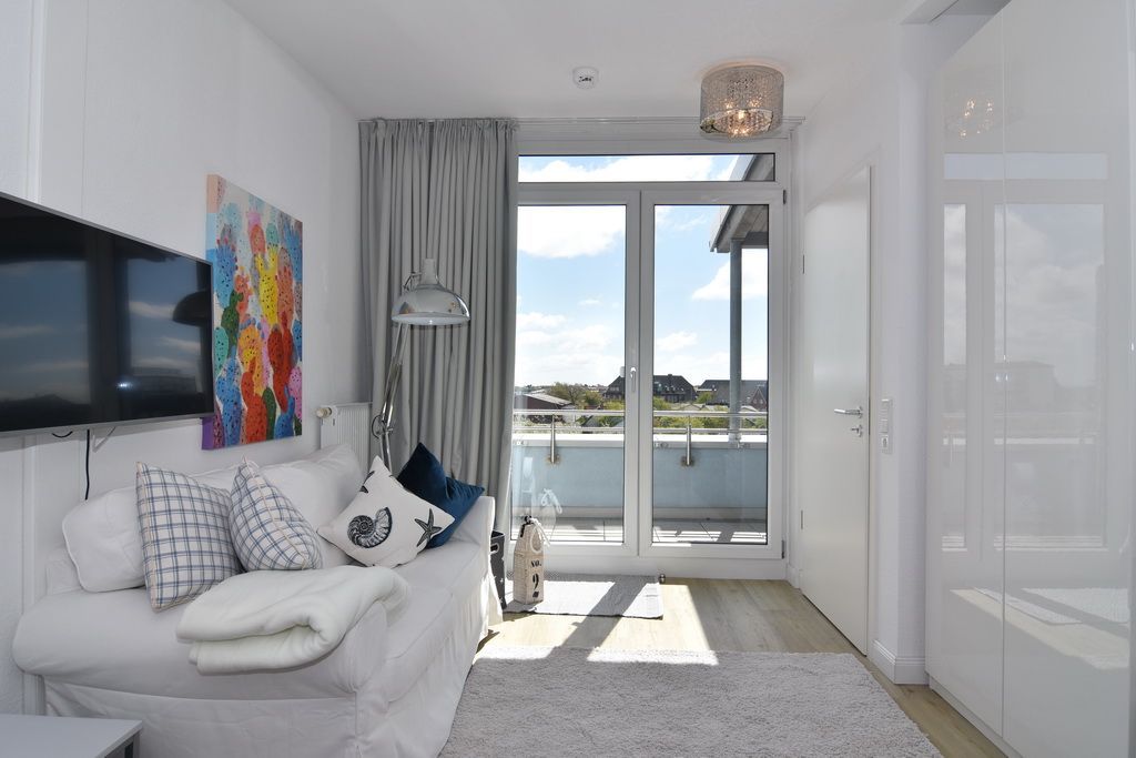 Diese helle lichtdurchflutete 2-Zimmer-Ferienwohnung im Zentrum von Westerland im blauen Haus der Residenz Mauritius, im 2. OG mit Fahrstuhl glänzt mit ihren 2 Südbalkonen und freien Blick. Im ca. 24 qm großen Wohnbereich befindet sich eine moderne Hochglanzküche mit Kombigerät Mikrowelle/Backofen und Geschirrspüler. Vom Esstisch haben sie einen herrlichen Weitblick gen Süden. Vom Wohnbereich führt eine geräumige Treppe in den Schlafbereich mit einem bequemen Boxpringbett (180x200) und einem Sofa zum Entspannen und Lesen. Direkter Zugang vom Schlafzimmer zum Südbalkon. Kabel-TV, Internetanschluss (ohne Gewähr). Waschküche und Fahrradkeller sind im Nachbarhaus Mauritius vorhanden. Pkw-Stellplatz kann kostenpflichtig hinzugebucht werden. Bettwäsche und Handtücher sind zur Anreise aufgezogen! Tierhaltung und Rauchen sind nicht gestattet.