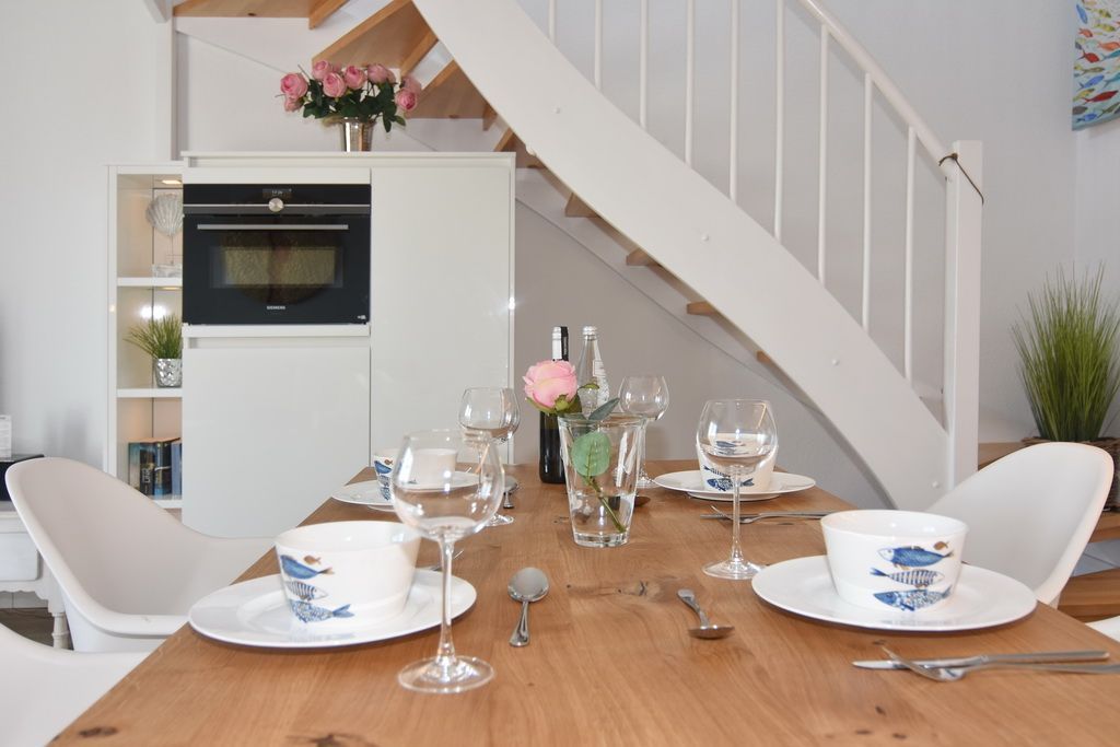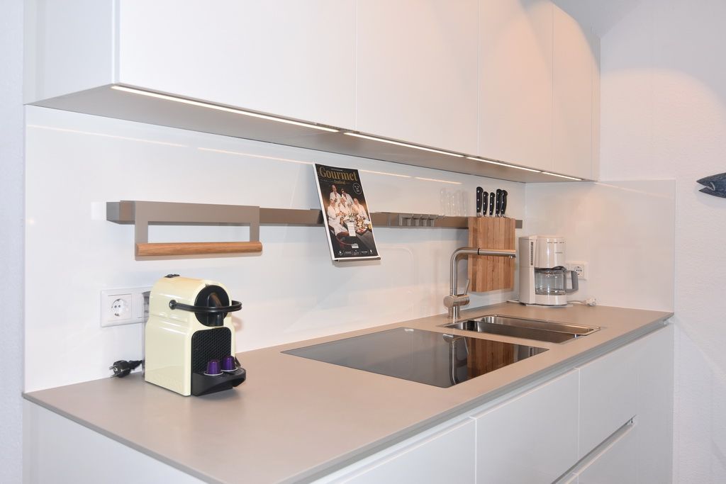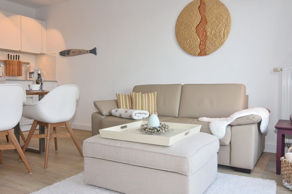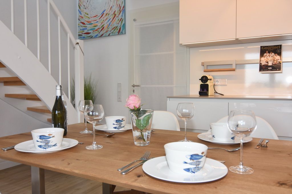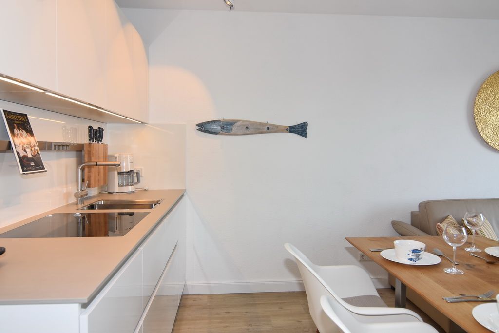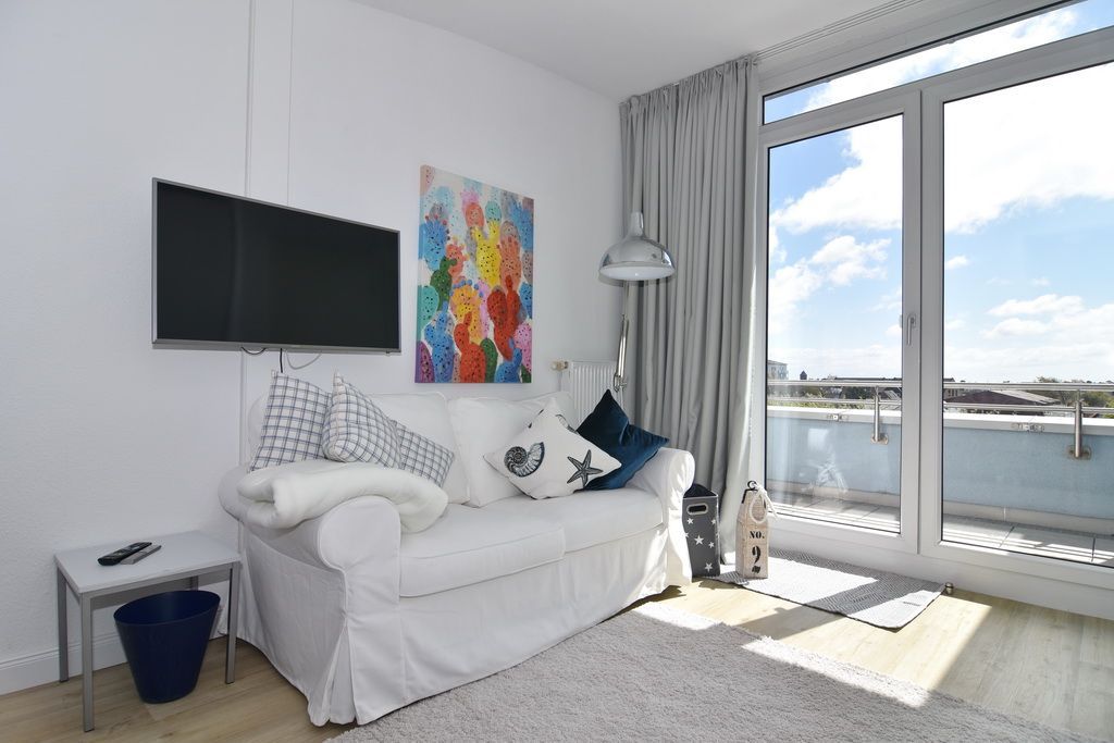Diese helle lichtdurchflutete 2-Zimmer-Ferienwohnung im Zentrum von Westerland im blauen Haus der Residenz Mauritius, im 2. OG mit Fahrstuhl glänzt mit ihren 2 Südbalkonen und freien Blick. Im ca. 24 qm großen Wohnbereich befindet sich eine moderne Hochglanzküche mit Kombigerät Mikrowelle/Backofen und Geschirrspüler. Vom Esstisch haben sie einen herrlichen Weitblick gen Süden. Vom Wohnbereich führt eine geräumige Treppe in den Schlafbereich mit einem bequemen Boxpringbett (180x200) und einem Sofa zum Entspannen und Lesen. Direkter Zugang vom Schlafzimmer zum Südbalkon. Kabel-TV, Internetanschluss (ohne Gewähr). Waschküche und Fahrradkeller sind im Nachbarhaus Mauritius vorhanden. Pkw-Stellplatz kann kostenpflichtig hinzugebucht werden. Bettwäsche und Handtücher sind zur Anreise aufgezogen! Tierhaltung und Rauchen sind nicht gestattet.