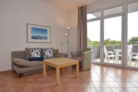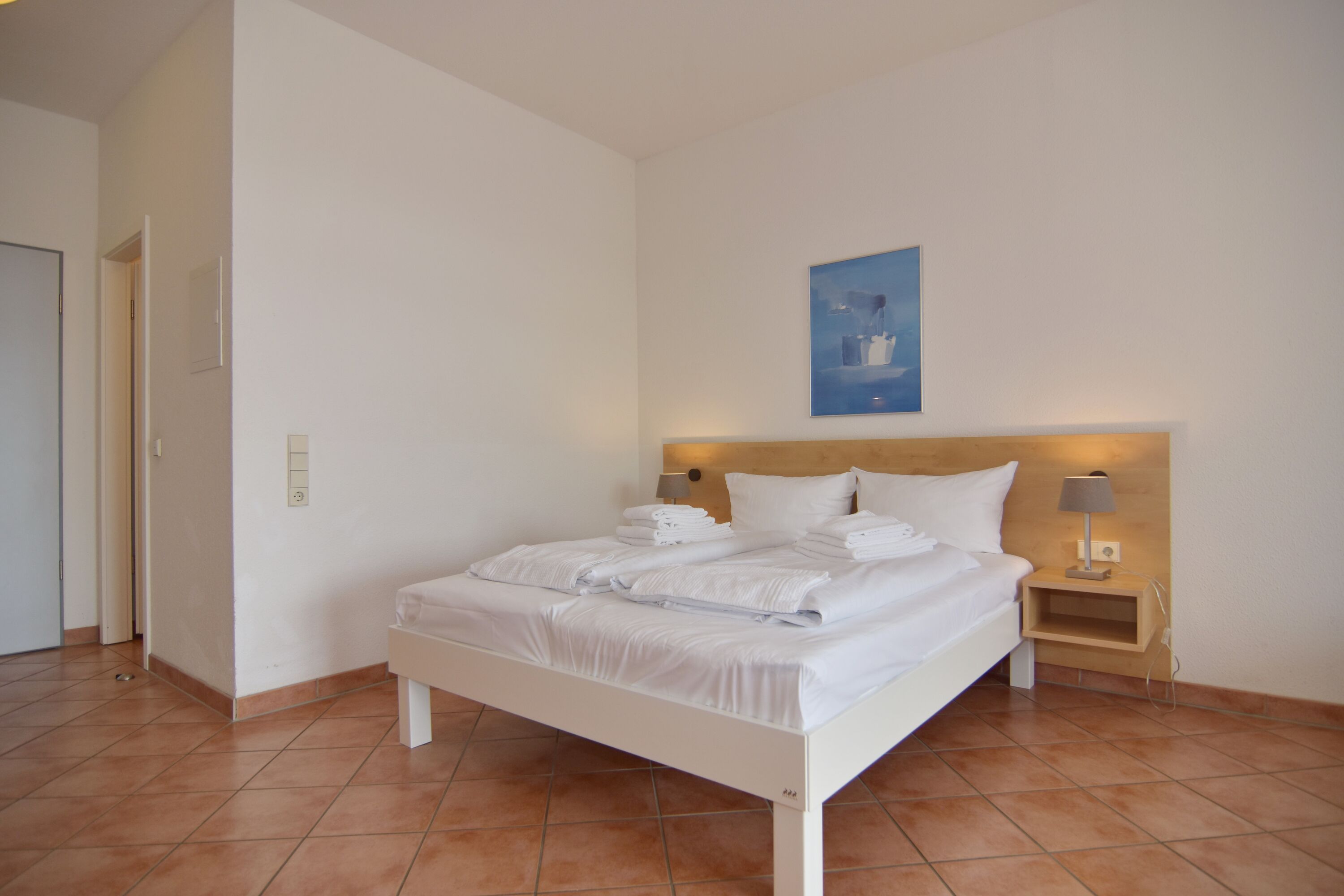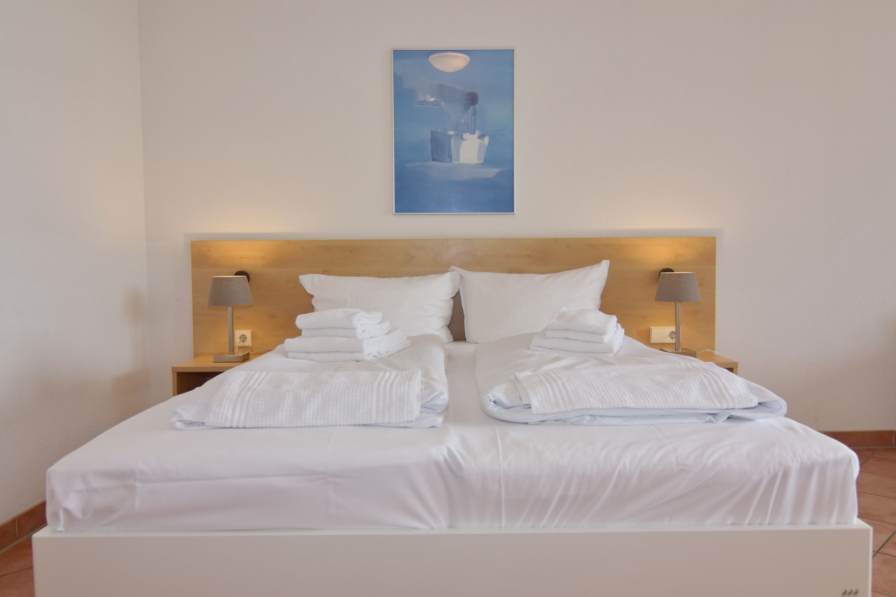 1-Zimmer-Ferienwohnung im roten Haus, Nichtraucher-Whg., ca. 39m², 1. OG. Wohn-/Schlafraum mit Südbalkon, Doppelbett, Essplatz, 2-Sitzer-Sofa (ausziehbar/als Doppelliege nutzbar) und Sessel, Kabel-TV, Küchenzeile mit Geschirrspüler, Mikrowelle, Nespressomaschine, Duschbad/WC. Das Apartment ist komplett gefliest. Internetanschluß (ohne Gewähr). Waschküche und Fahrradkeller im Nebenhaus Mauritius. Pkw-Stellplatz kann kostenpflichtig hinzugebucht werden. Bettwäsche und Handtücher sind zur Anreise aufgezogen! Tierhaltung ist gestattet und muss angemeldet werden.