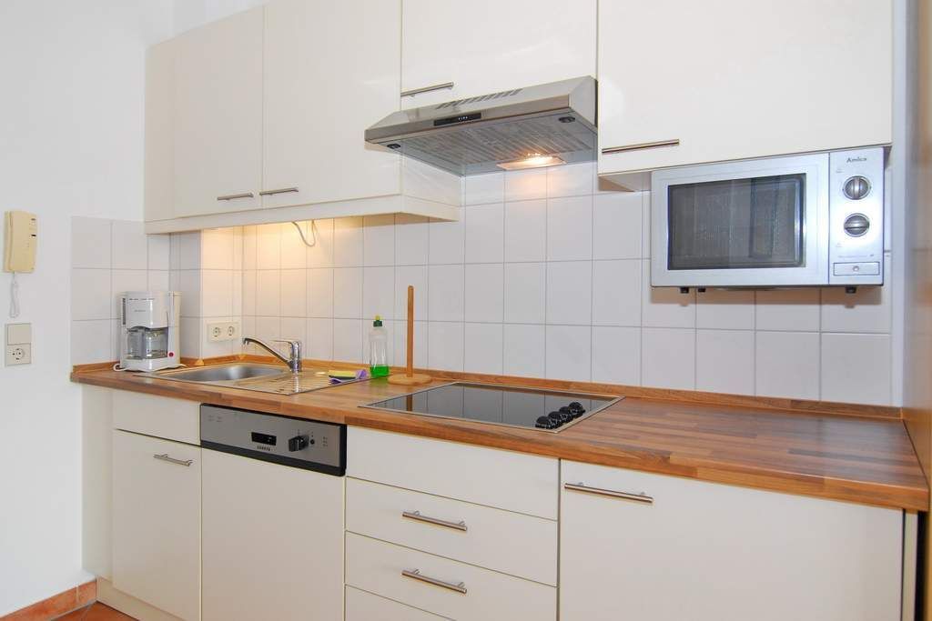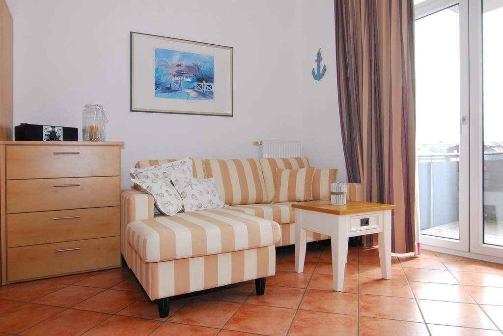 Moderne 1-Zimmer-Ferienwohnung im roten Haus der Residentz Mauritius, Nichtraucher-Whg., ca. 31m², 1. OG. Wohn-/Schlafraum mit Südbalkon, Doppelbett (2x90x200), Essplatz, 2 Sessel, Kabel-TV, Küchenzeile mit Geschirrspüler und Mikrowelle, Duschbad/WC. Das Apartment ist komplett gefliest. Internetanschluß (ohne Gewähr). Waschküche und Fahrradkeller im Nebenhaus Mauritius. Pkw-Stellplatz kann kostenpflichtig hinzugebucht werden. Bettwäsche und Handtücher sind zur Anreise aufgezogen! Tierhaltung ist nicht gestattet.