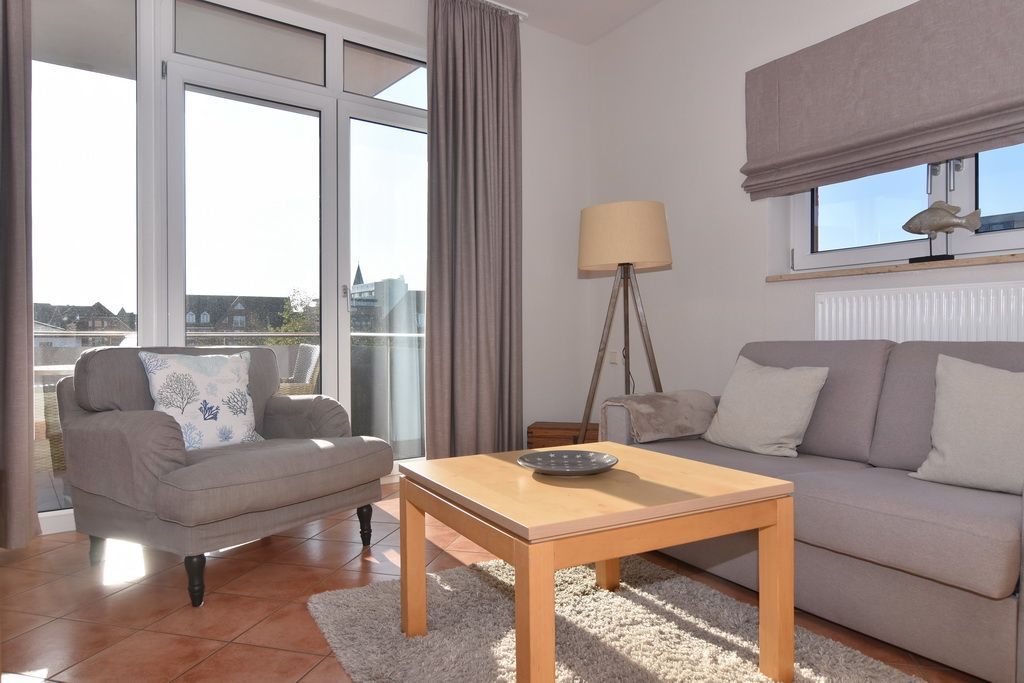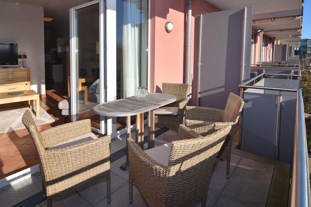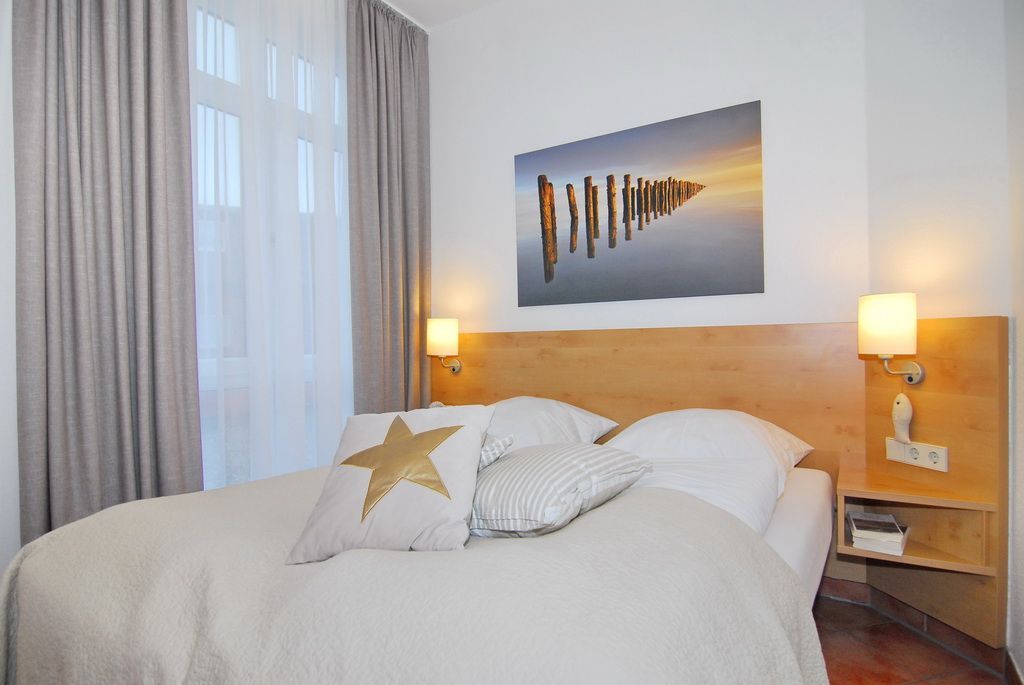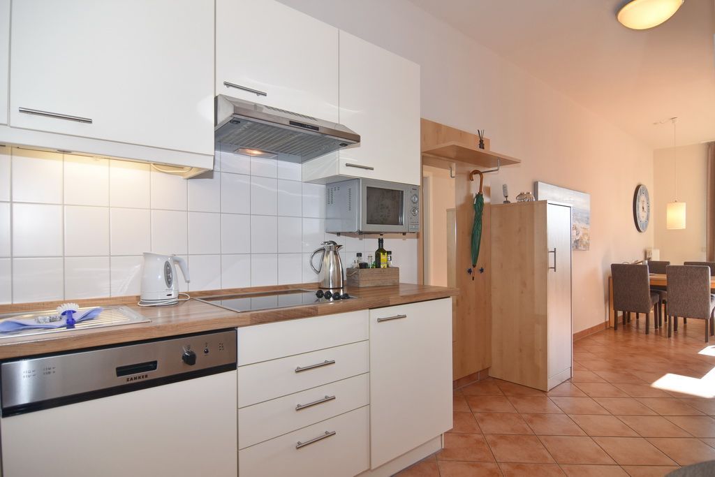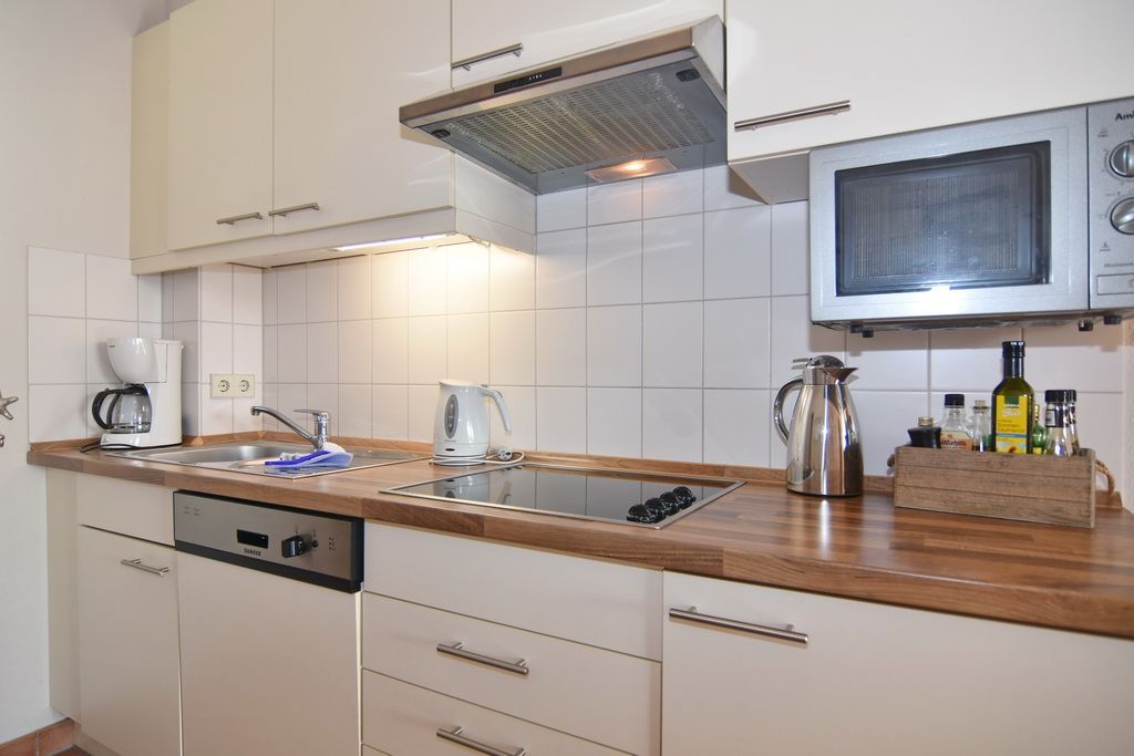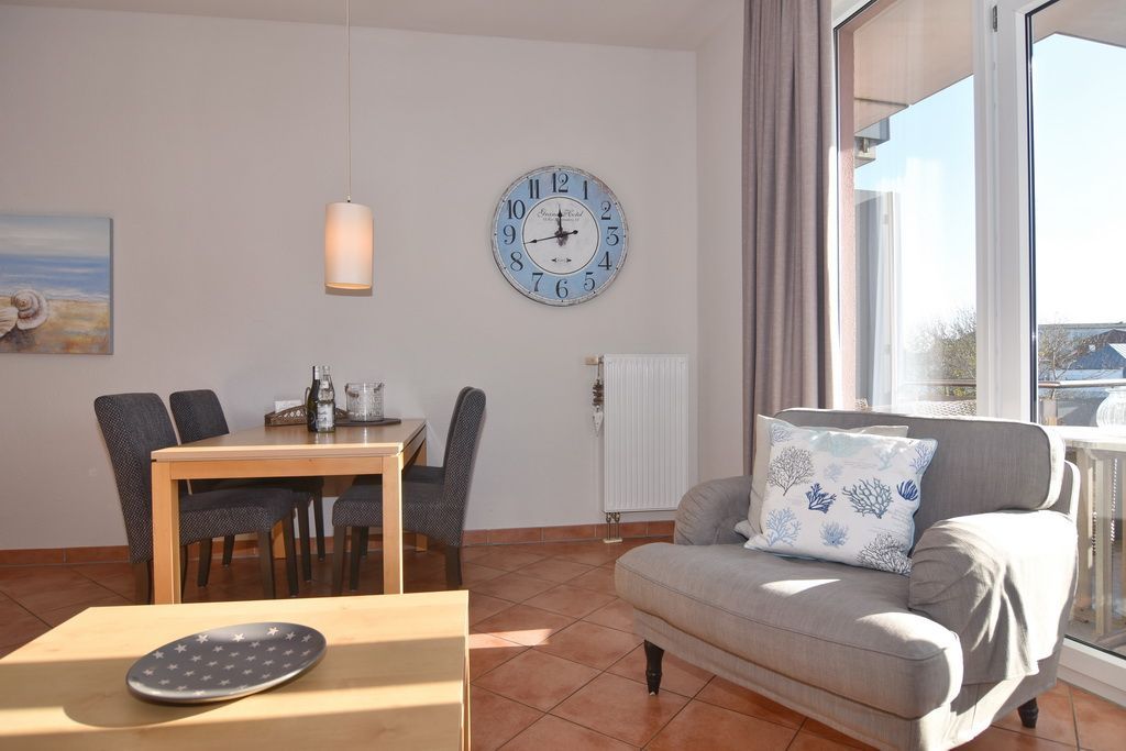Moderne 2-Zimmer-Ferienwohnung im roten Haus, Nichtraucher-Whg.! ca. 47m², 1. OG. Wohnraum mit Südbalkon, Essplatz, 2-Sitzer-Schlafcouch und Sessel, Kabel-TV, Küchenzeile mit Mikrowelle und Geschirrspüler im Flurbereich, Duschbad/WC, kleines Schlafzimmer mit Doppelbett und TV. Internetanschluß (ohne Gewähr). Waschküche und Fahrradkeller im Nebenhaus Mauritius. Pkw-Stellplatz sowie Bettwäsche u. Handtücher können kostenpflichtig hinzugebucht werden. Tierhaltung ist gestattet und muss angemeldet werden.