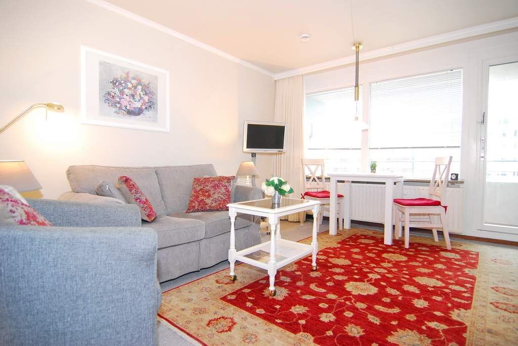 Gepflegtes und helles 1-Zimmer-Appartement mit ca. 30qm im Haus Metropol. Wohn-/Schlafraum mit 2 Einzelschrankbetten, Sitzecke, Essplatz am Fenster, Flat-TV, W-Lan (ohne Gewähr), möblierter Ostbalkon zum Genießen der Morgensonne, Küchenzeile im Flur mit Ceranfeld, Mikrowelle sowie kleinem Geschirrspüler, Duschbad, WC und Fön. Tierhaltung und Rauchen sind nicht gestattet. Bettwäsche und Handtücher sind zur Anreise aufgezogen. Ein PKW-Stellplatz kann kostenpflichtig zugebucht werden.