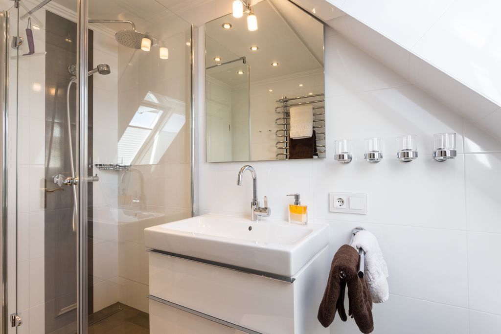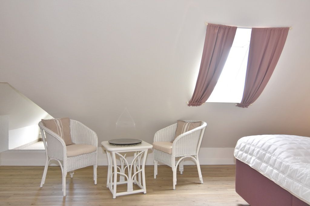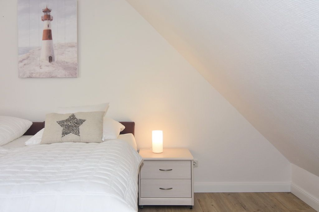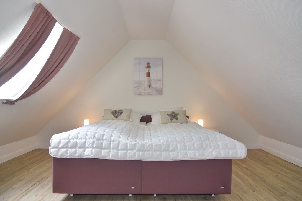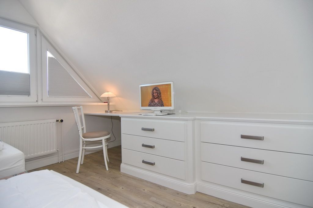 Die moderne und geräumige 3-Zimmer-Ferienwohnung für 4 Personen, ca. 65m², erstreckt sich über zwei Ebenen. Im Obergeschoss befinden sich ein Duschbad / WC, Wohnzimmer mit Essplatz sowie Sitzgruppe, Flat-TV, Radio, Telefon und kostenfreiem W-Lan. Die Küchenzeile ist zum Wohnraum offen mit Geschirrspüler und Mikrowelle ausgestattet. Waschmaschine sowie Trockner sind gemeinschaftlich auf der gleichen Ebene im Obergeschoß nutzbar. Eine Treppe ins Dachgeschoss führt zu zwei separaten Schlafzimmern (alle Betten sind wahlweise als Einzel- oder Doppelbetten stellbar) und einem kleinen Abstellraum. Ein Pkw-Stellplatz befindet sich vor dem Haus. Der gemeinschaftliche Außenbereich bietet einen Terrassenplatz mit Strandkorb und Gartenmöbeln, einen überdachten Sitzbereich, einen großzügigen Fahrradunterstand sowie Schränke für Ihre Golfbags. Tierhaltung ist gestattet und muss kostenpflichtig angmeldet werden. v