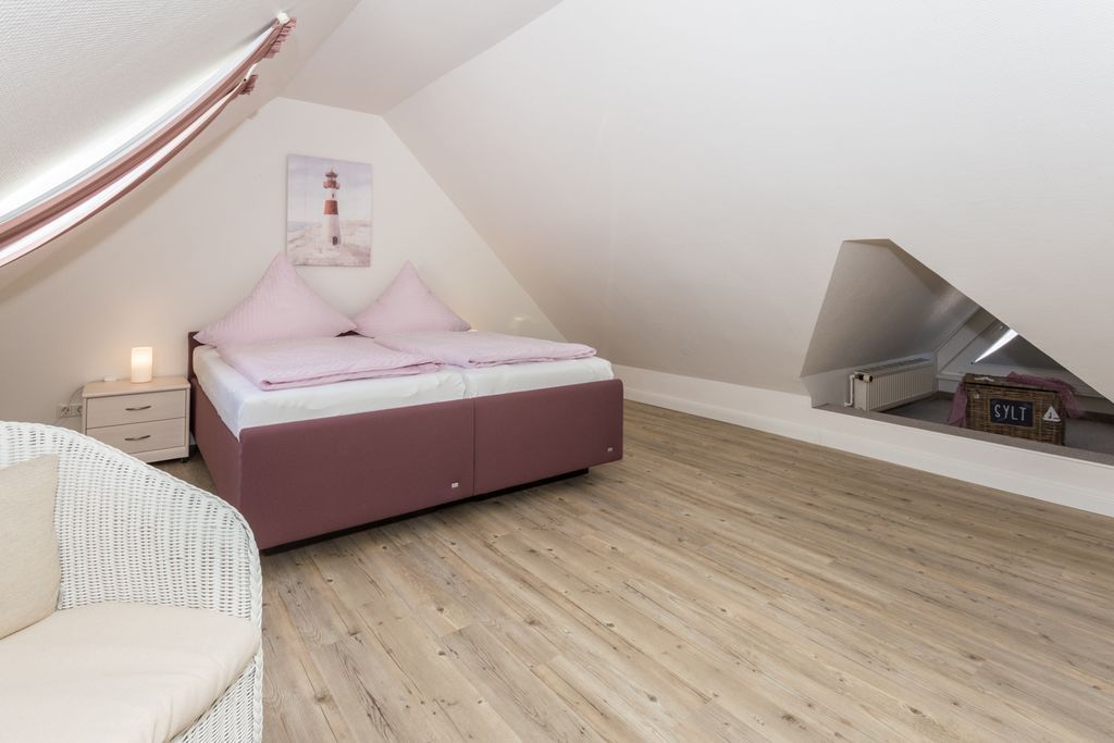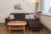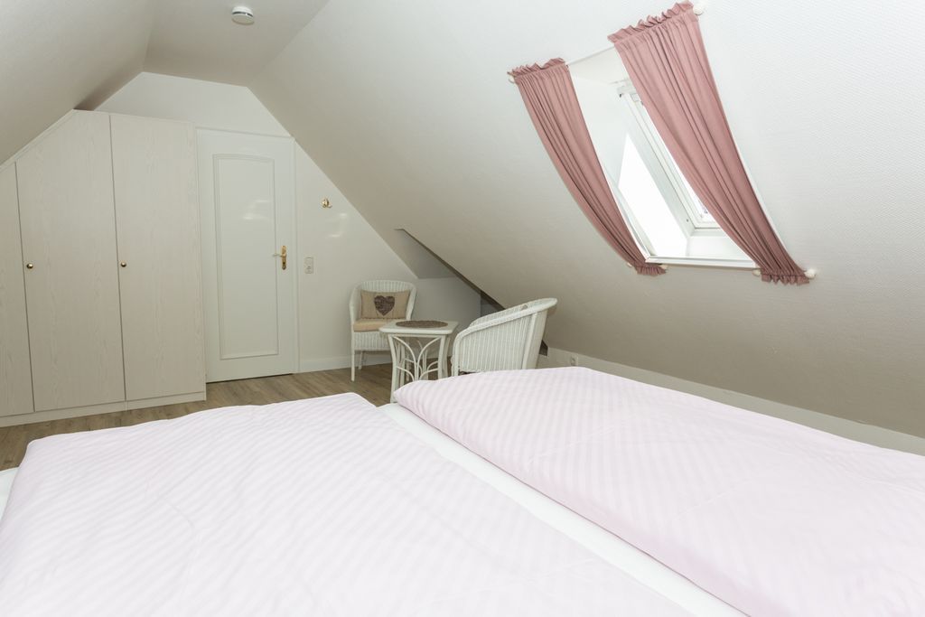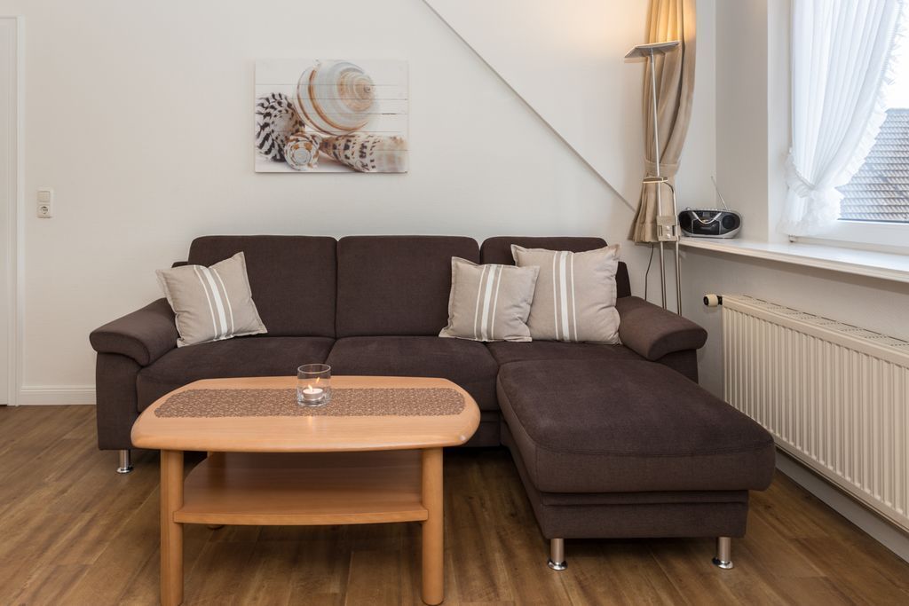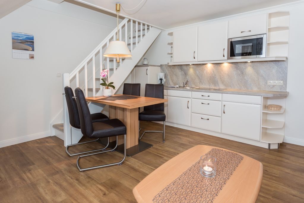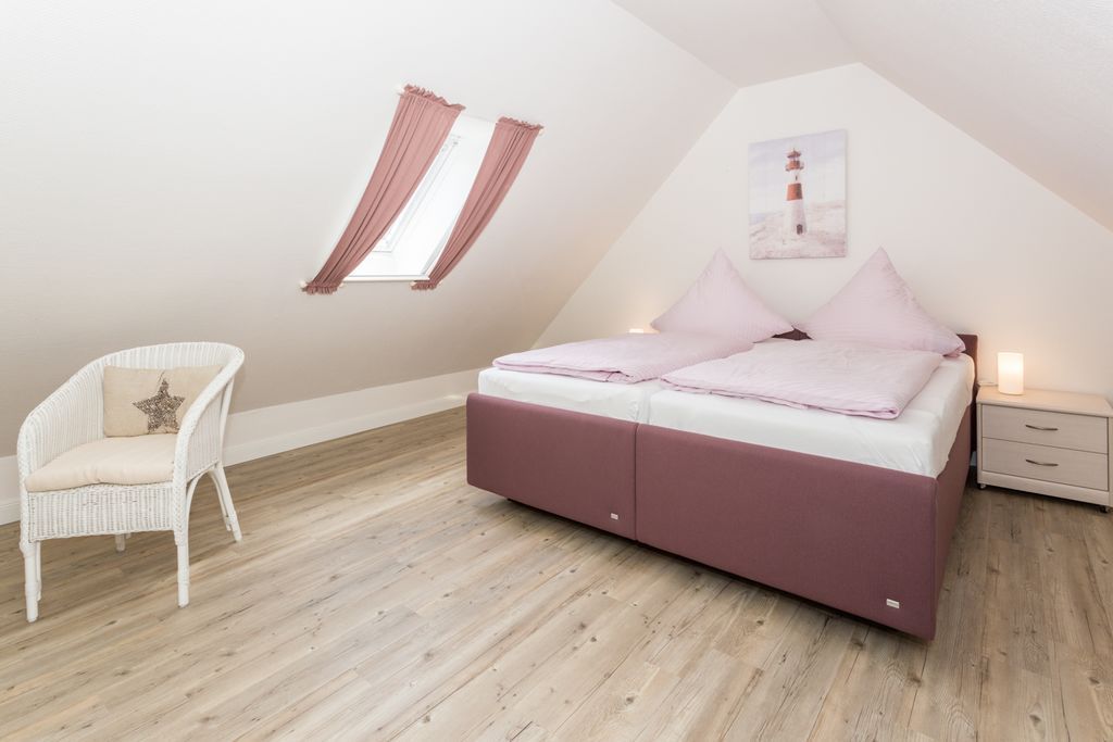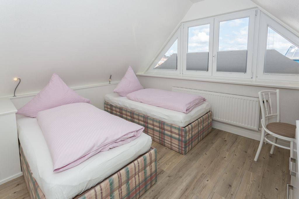 Die geräumige 3-Zimmer-Ferienwohnung für 4 Personen, ca. 65m², erstreckt sich über zwei Ebenen. Im Obergeschoss befinden sich ein Duschbad / WC, Wohnzimmer mit Essplatz sowie Sitzgruppe, Flat-TV, Radio, Telefon und kostenfreiem W-Lan. Die Küchenzeile ist zum Wohnraum offen mit Geschirrspüler und Mikrowelle ausgestattet. Waschmaschine sowie Trockner sind gemeinschaftlich auf der gleichen Ebene im Obergeschoß nutzbar. Eine Treppe ins Dachgeschoss führt zu zwei separaten Schlafzimmern (alle Betten sind wahlweise als Einzel- oder Doppelbetten stellbar) und einem kleinen Abstellraum. Ein Pkw-Stellplatz befindet sich vor dem Haus. Der gemeinschaftliche Außenbereich bietet einen Terrassenplatz mit Strandkorb und Gartenmöbeln, einen überdachten Sitzbereich, einen großzügigen Fahrradunterstand sowie Schränke für Ihre Golfbags. Tierhaltung ist nicht gestattet.