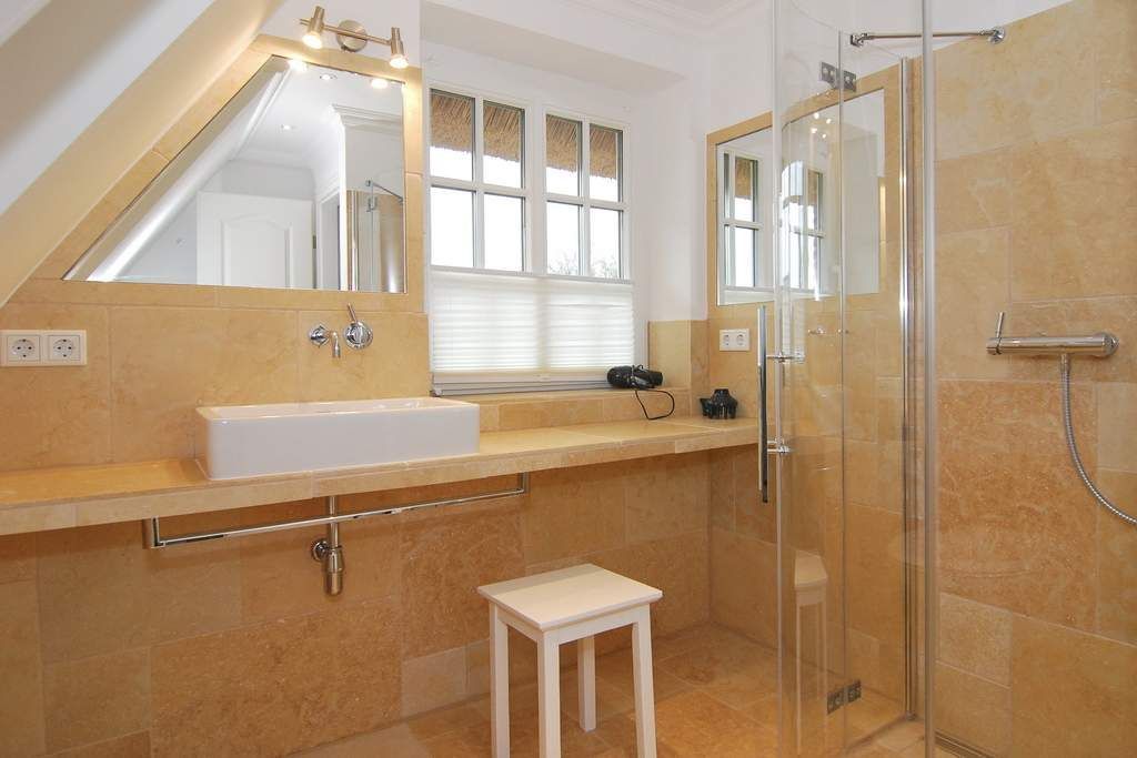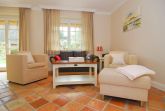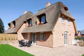 Schönes Ferienhaus / Doppelhaushälfte unter Reet auf sonnigem Südgrundstück. Ca. 113m². EG: gefliestes Wohn- und Esszimmer mit moderner Marken-Einbauküche (GS, Mikrowelle, etc.), schöner Essplatz am Fenster, Couchecke mit Doppelcouch, 2 Sesseln und Hocker, Kamin, WLan, Flat-Screen, Stereoanlage mit CD, Gäste-WC, HW-Raum mit WA/TR, Garderobe. OG: 1 Schlafzimmer mit Doppelbett, Flat-Screen und eigenem Duschbad/WC, 1 weiteres Schlafzimmer mit Doppelbett und Flatscreen sowie 1 Schlafzimmer mit 1,20x2m und Flat-Screen, 1 Vollbad/WC. Zusätzlicher Schrank-/Abstellraum im DG. Große Süd- und Ostterrasse mit Gartenmöbeln. Nichtraucher-Haus! Grillen verboten!!! Bettwäsche und Handtücher sind zur Anreise aufgezogen. Tierhaltung ist erlaubt, muss bitte angemeldet werden!