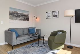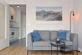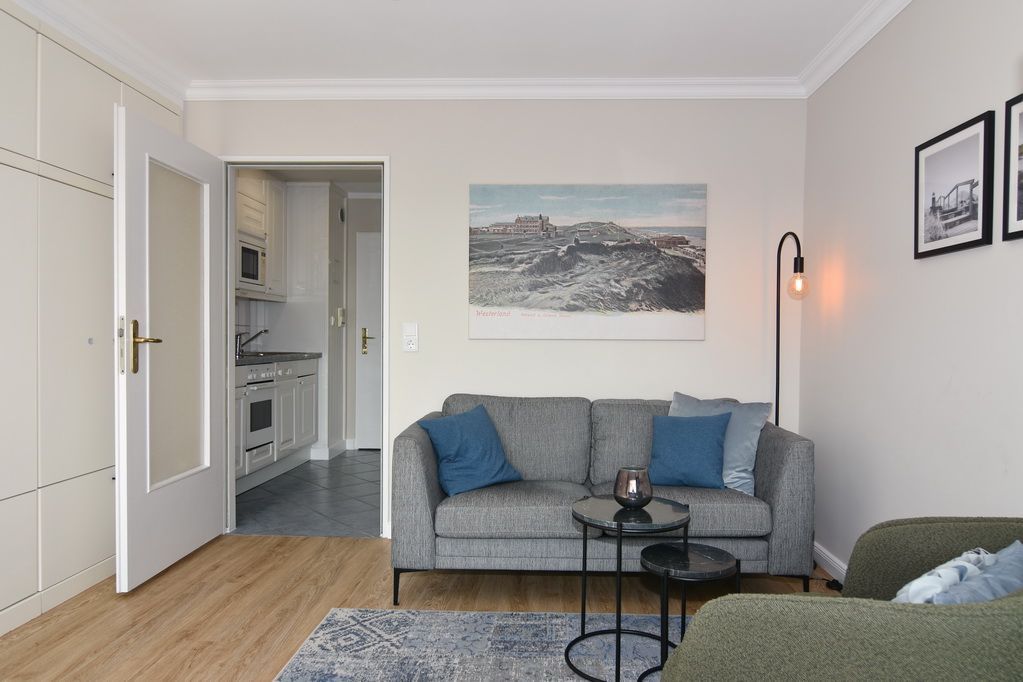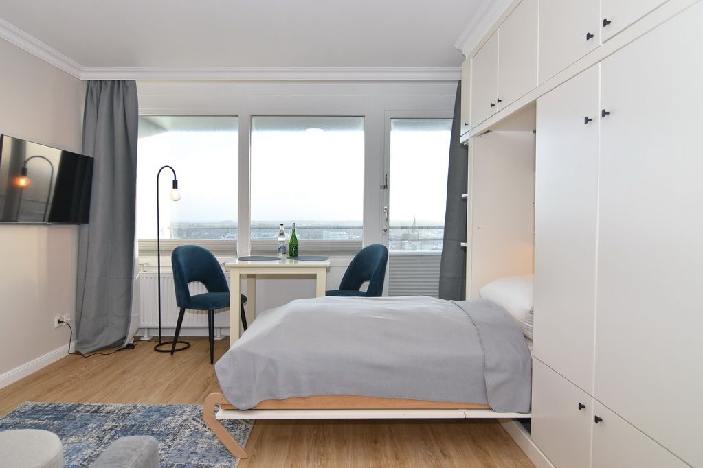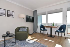Schönes, modernes 1-Zimmer-Apartment im 11. OG des Haus Metropol. Ca. 30 m² zur Landseite mit toller Sicht über die Insel bis zum Wattenmeer. Wohn-/ Schlafzimmer mit Einzelschrankbetten (2x85x200), Essplatz am Fenster, 2-Sitzer-Sofa, kleiner Sessel, Couchtisch, TV, Radio, WLAN (ohne Gewähr). Vollständige Küchenzeile im Flur mit Geschirrspüler, Ceranfeld, Backofen und Mikrowelle, Duschbad/WC. Großer Ostbalkon mit Balkonmöbeln und freiem Blick über die Insel. Rauchen und Tierhaltung ist nicht gestattet. Bettwäsche und Handtücher sind zur Anreise aufgezogen. Ein PKW-Stellplatz kann kostenpflichtig zugebucht werden.