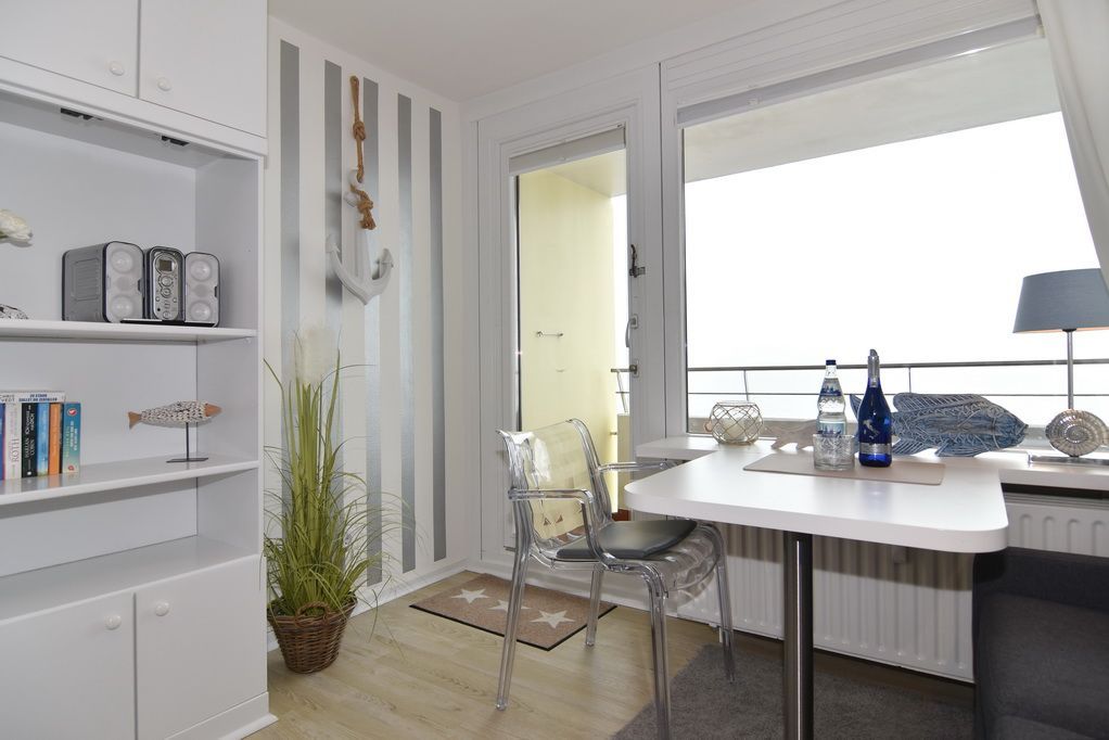 Nichtraucher-Whg.! 1 Zimmer-Ferienwohnung, 12. OG, ca. 25 m², Neues Kurzentrum, Haus Metropol Wohn-/ Schlafraum mit 2 Einzelschrankbetten (2x90x190), Zwei-Sitzer-Sofa, Sessel, abklappbarer Esstisch an der Seite, Kabel-TV, Radio, WLAN (ohne Gewähr), Westbalkon mit herrlichem Meeresblick, Küchenzeile im Flurbereich mit Mikrowelle (Hauptschalter Ceranfeld oben rechts), Duschbad/WC. Tierhaltung ist nicht gestattet. Bettwäsche und Handtücher sind zur Anreise aufgezogen. Ein PKW-Stellplatz kann kostenpflichtig zugebucht werden.
