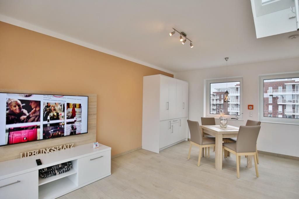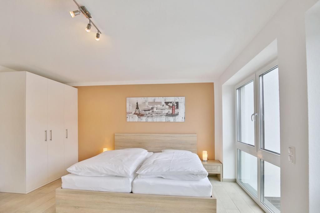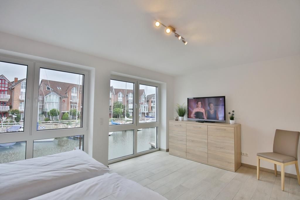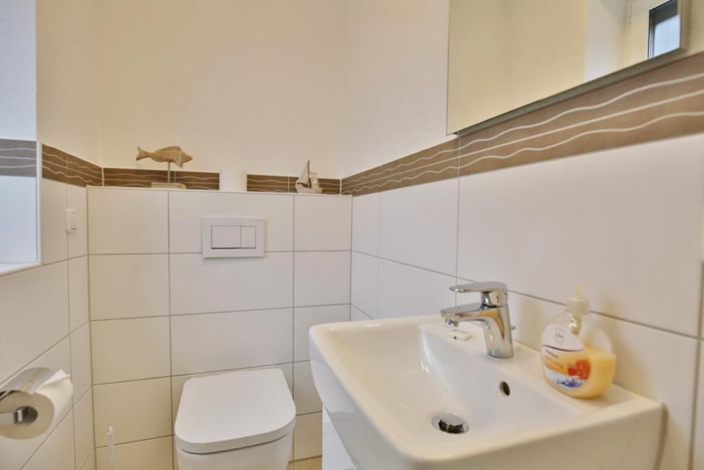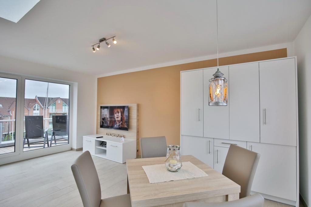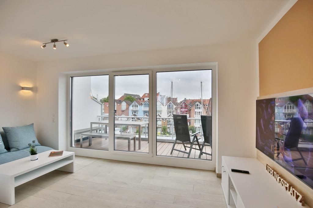 Modernster Neubau für bis zu 6 Pers. auf 4 Etagen mit höchstem Komfort. 2 Wohnzimmer, 3xBalkon/Terrasse, 3 Schlafzimmer mit Doppelbetten, 5 x LCD-TV bis 65, Bluray 4K-Player, alle Fenster mit elektrischen Außenrollläden, Fußbodenheizung, W-LAN, offene Küchenzeile (Backofen, Geschirrspüler, Nespresso Maschine etc.), große Terrasse (west) mit Blick in die Marina, Gäste/WC. 1. Etage: Großes Schlafzimmer mit Doppelbett mit TV, Du/WC mit Waschmaschine/Trockner & 1 Balkon (ost). 2. Etage: Zwei Schlafzimmer (Doppelbetten) & TV, Badewanne/Dusche/WC. 3. Etage: Lounge mit großer Dachterrasse (west), TV und kleiner Küchenzeile & Nespressomaschine. Fahrradschuppen (eBike Lademöglichkeit), 1 PKW-Stellplatz am Haus.