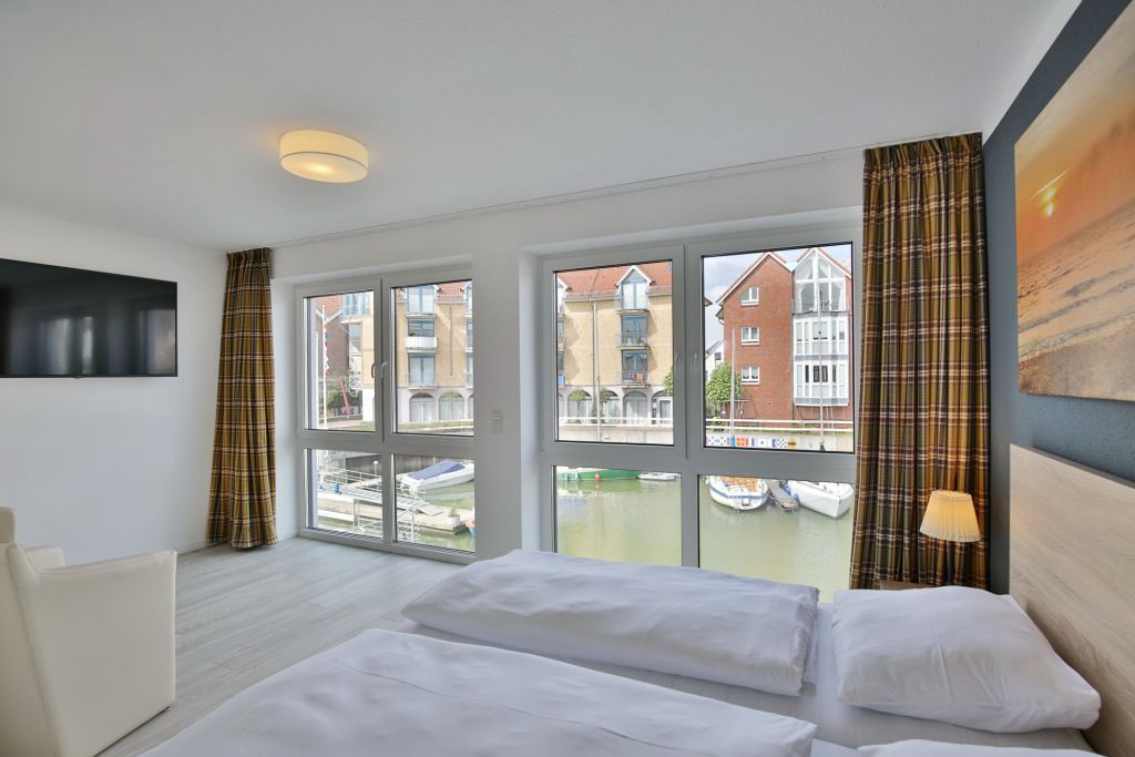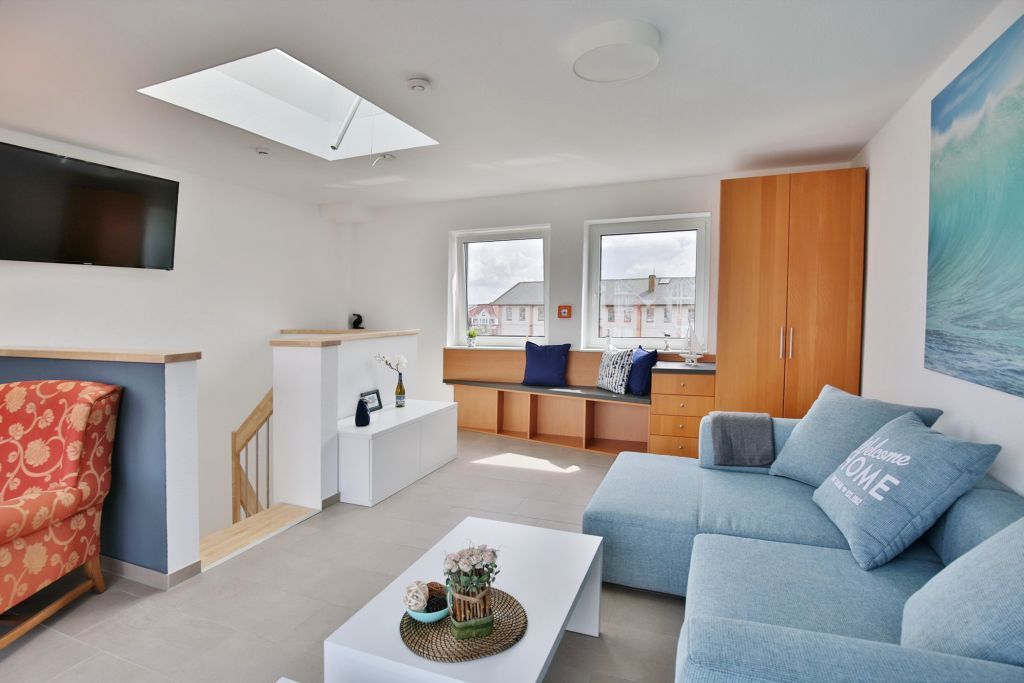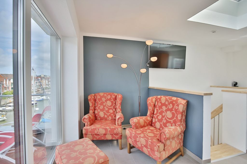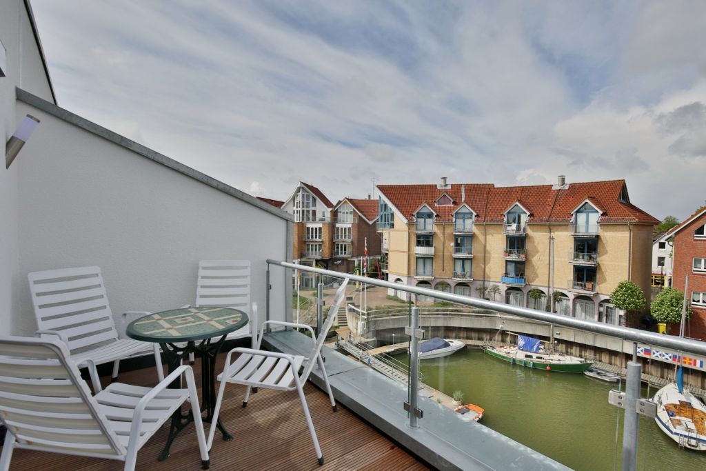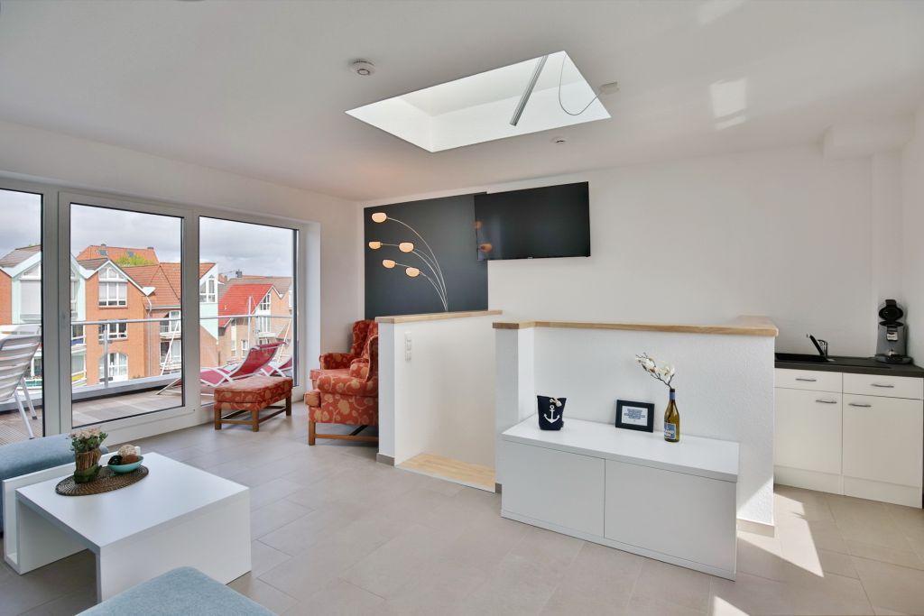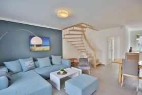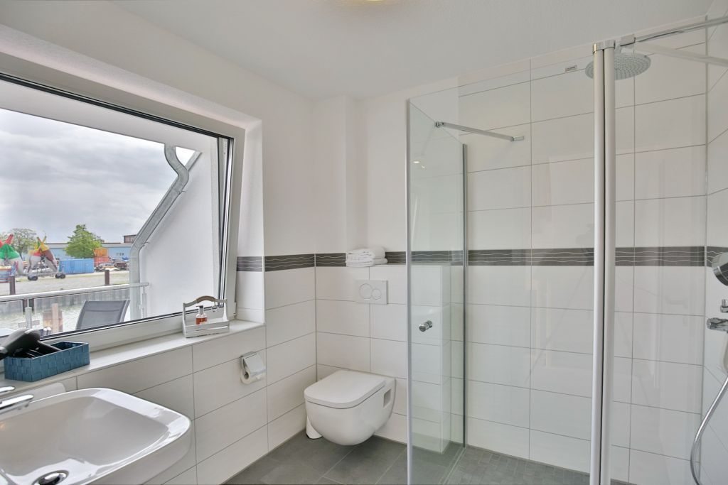 Moderner Luxusneubau auf 4 Etagen für bis zu 6 Personen direkt im Yachthafen. EG: Großzügiges Wohnzimmer mit TV, offener Küche in Vollausstattung, Gäste-WC. 1.OG: 1 Schlafzimmer mit Doppelbett und TV, Bad mit Dusche/WC und großer Sauna zur freien Nutzung, Balkon (ost). 2.OG: 2 Schlafzimmer je mit Doppelbett, Bad mit Badewanne/Dusche/WC, Waschmaschine und Trockner im Abstellraum. 3.OG: Tolle Lounge mit TV, Leseecke, Kühlschrank, Spüle und Pad-Kaffeemaschine. Fußbodenheizung im gesamten Haus, Schlafräume mit elektrischen Außenrollläden, Kostenfreies W-Lan, Fahrradschuppen mit eBike-Ladestation, einen KFZ-Stellplatz direkt vorm Haus.
